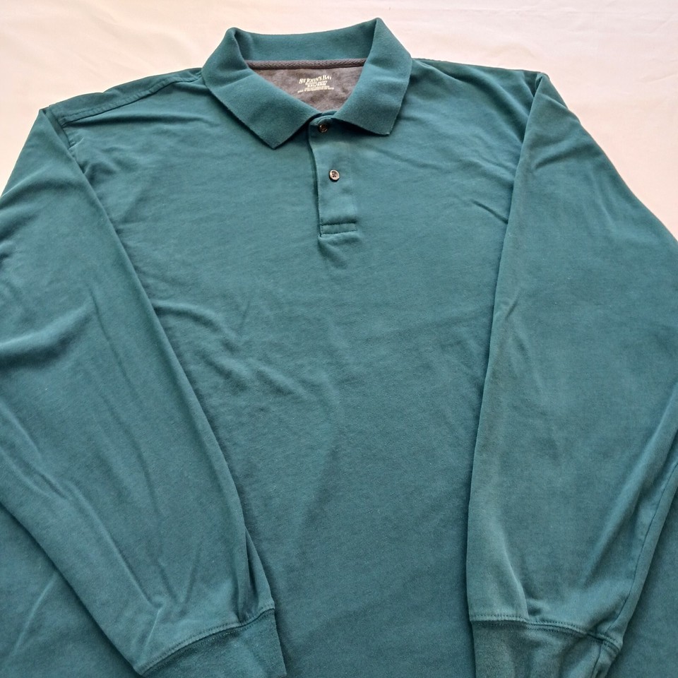 St. John's Bay Sueded Jersey Men's Green Cotton Collar Shirt is a pre-owned basic tee with a solid pattern. It has long sleeves, a collared neckline, and a regular fit. The shirt is made of machine-washable cotton jersey fabric and is available in size 2XL. The shirt is manufactured in Vietnam and is suitable for regular use.