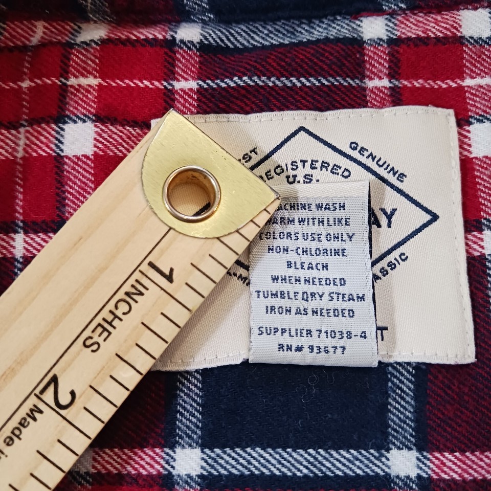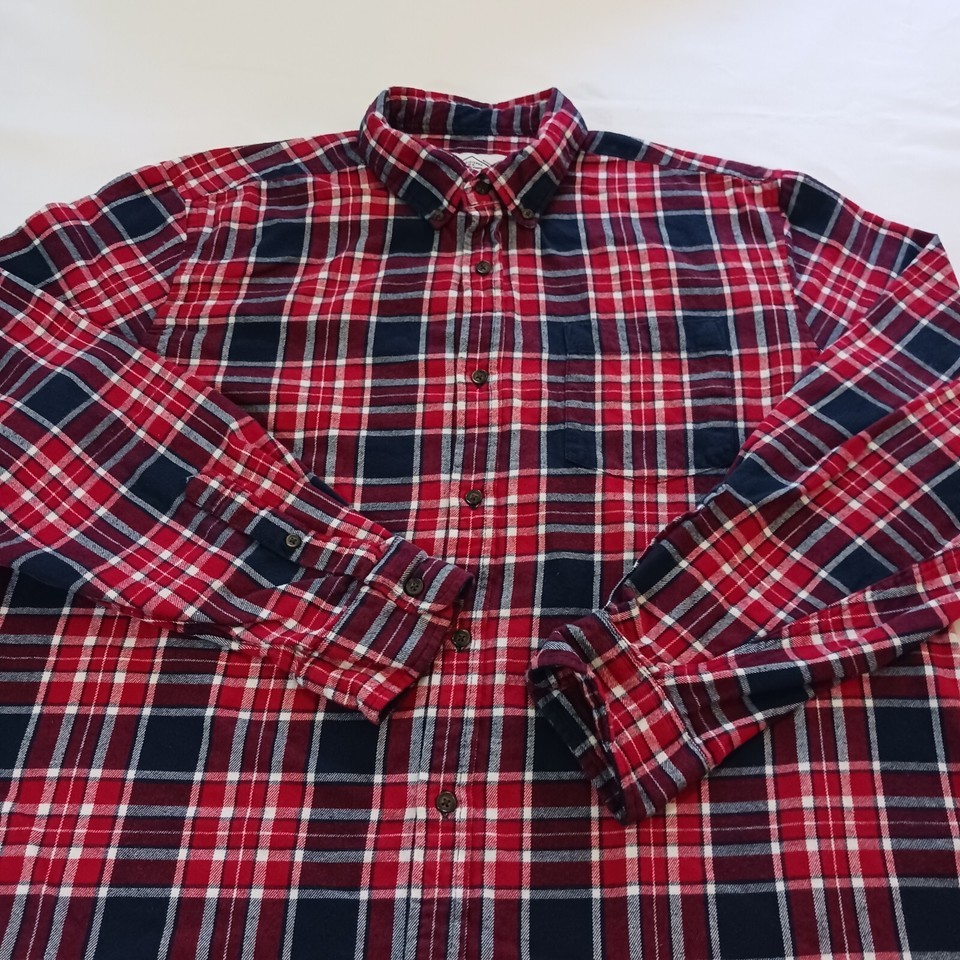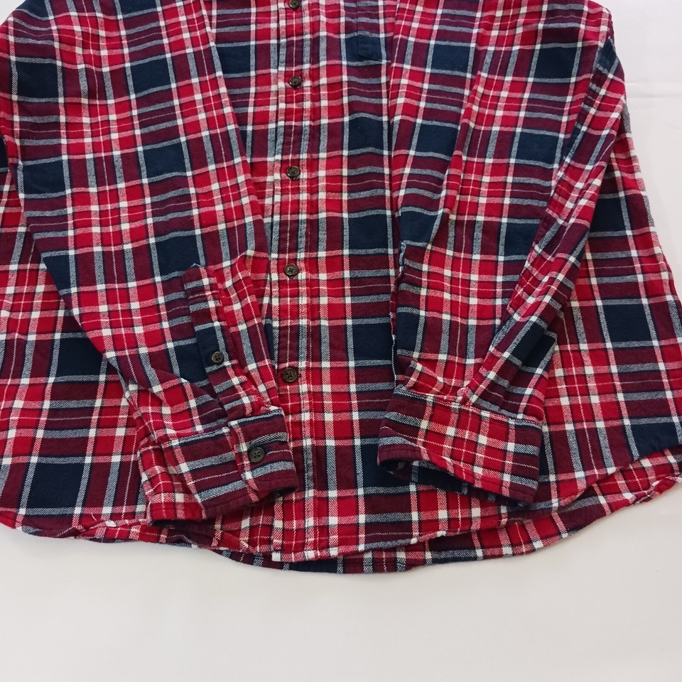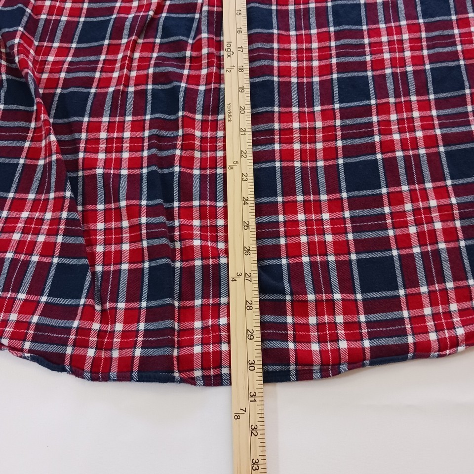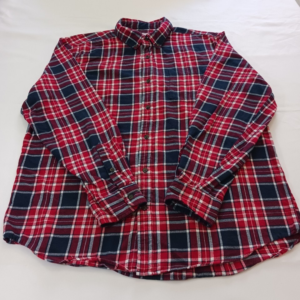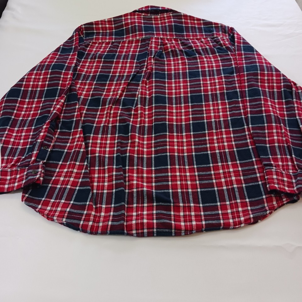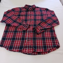 St. John's Bay Super Soft Button-Down Collar Flannel Shirt is a men's casual button-down shirt made of cotton flannel fabric with a red/blue plaid pattern. It features a button-down collar, long sleeves, and a regular fit. The shirt has a button front closure and is machine washable. The brand is St. John's Bay, and the size is XL. The shirt is part of the Super Soft product line and was made in Nicaragua.