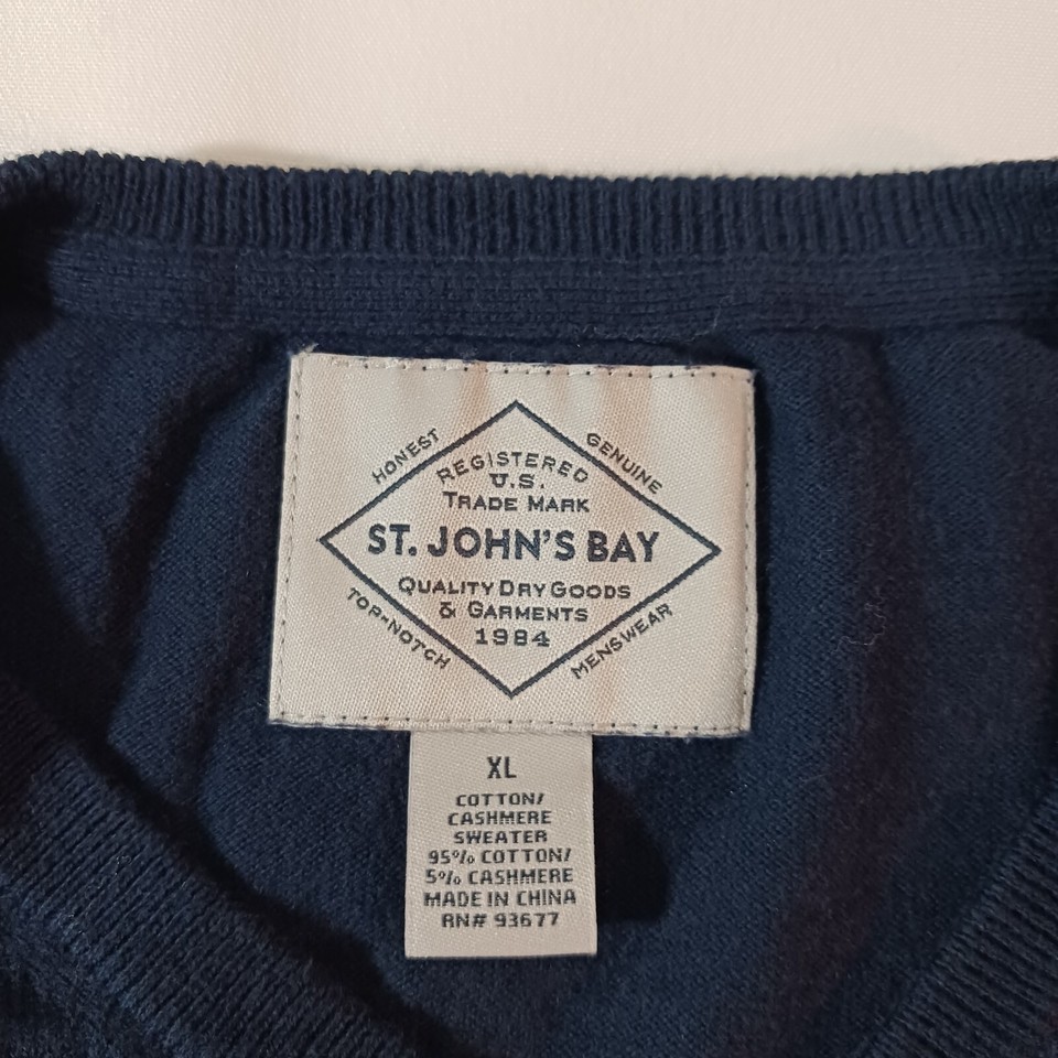 • St John's Bay V-Neck Men's Blue Cotton Cashmere Blend Pullover Sweater Size XL image 1