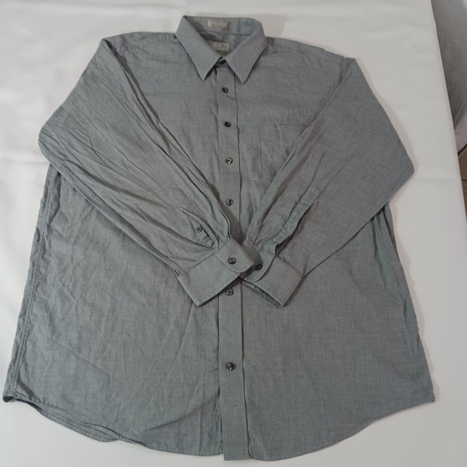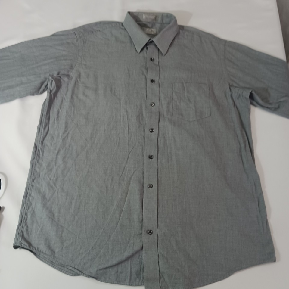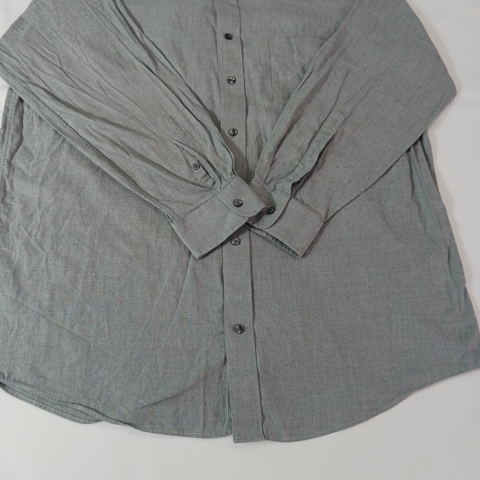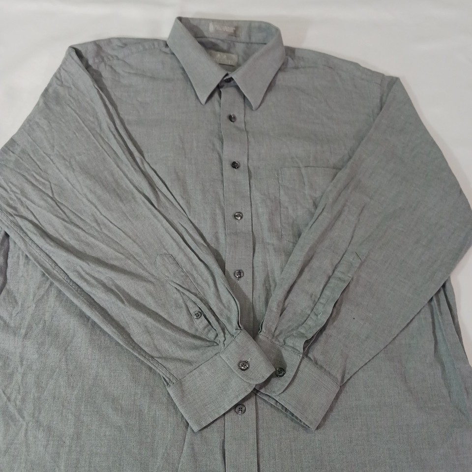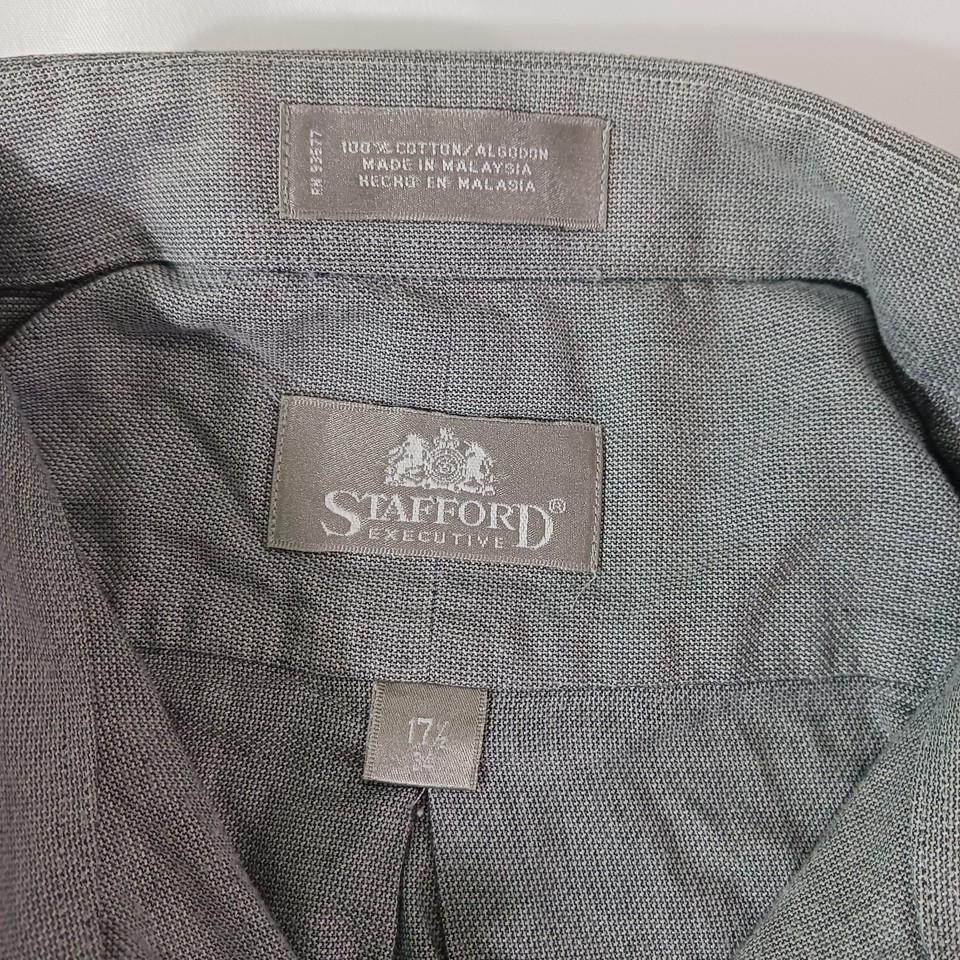 Crafted for the discerning gentleman, the Stafford Executive Men's Gray Cotton Long Sleeve Button-Up Shirt is a versatile addition to any wardrobe. Tailored to a regular fit, this size 17.5 shirt features a classic collared neckline and convenient button closure, perfect for both casual and professional settings. Its solid gray color offers endless styling possibilities, making it an essential basic for any occasion.