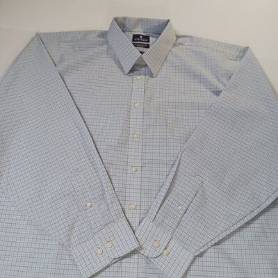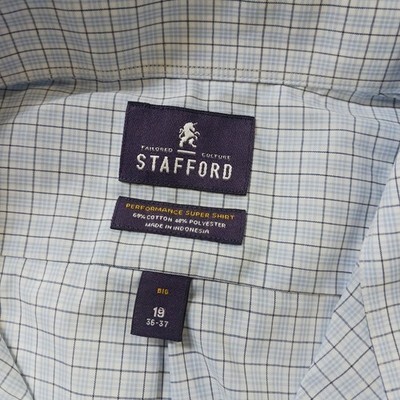 The Stafford RN#93677 Men's White Plaid Button-Up Long Sleeve Shirt in size Big 19 (36-37) is a versatile and stylish addition to any man's wardrobe. Made from a blend of polyester and cotton, this woven shirt features a classic collared neckline, button closure, and a spread collar style. It is suitable for various occasions such as workwear, business, casual outings, parties, or travel. The shirt is easy to care for as it is machine washable and features non-iron properties. With its athletic fit and all-season design, this shirt is a practical and comfortable choice for the modern man.