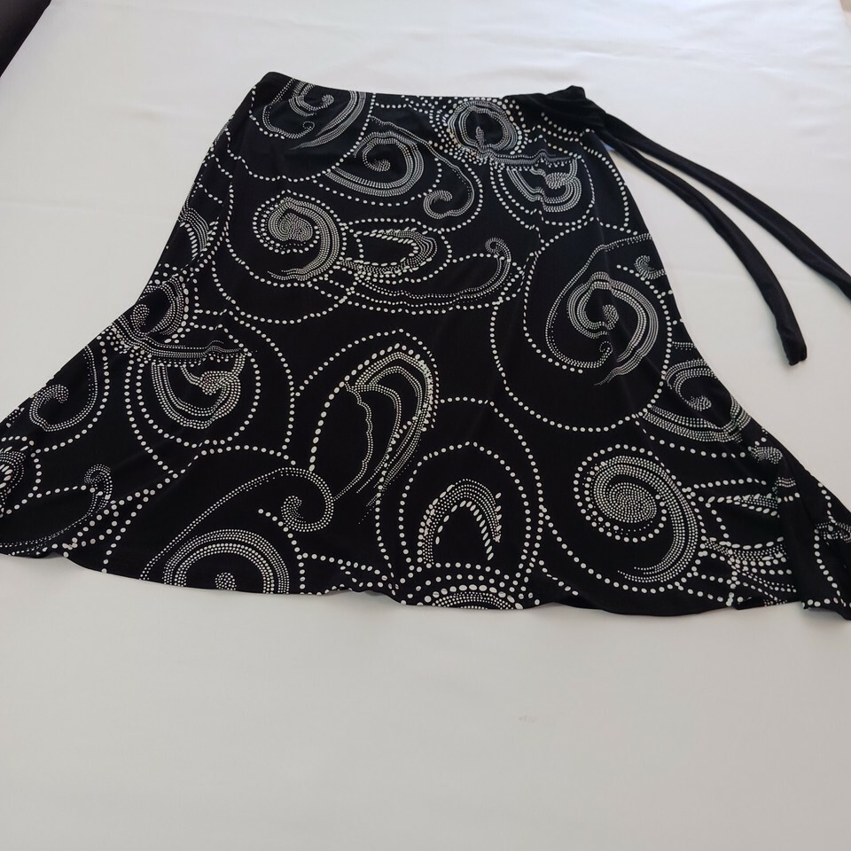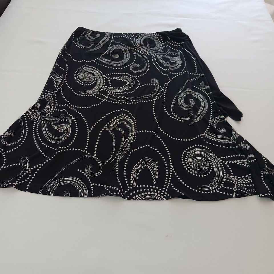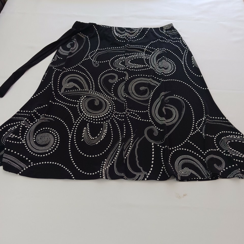The black skirt is accented with a leopard print, adding a touch of fun to your outfit. The mid-rise skirt is perfect for any season, whether it's winter, summer, fall, or spring. This skirt is a size XL, and is suitable for regular size women. Made in the United States, this skirt is a must-have addition to your wardrobe!