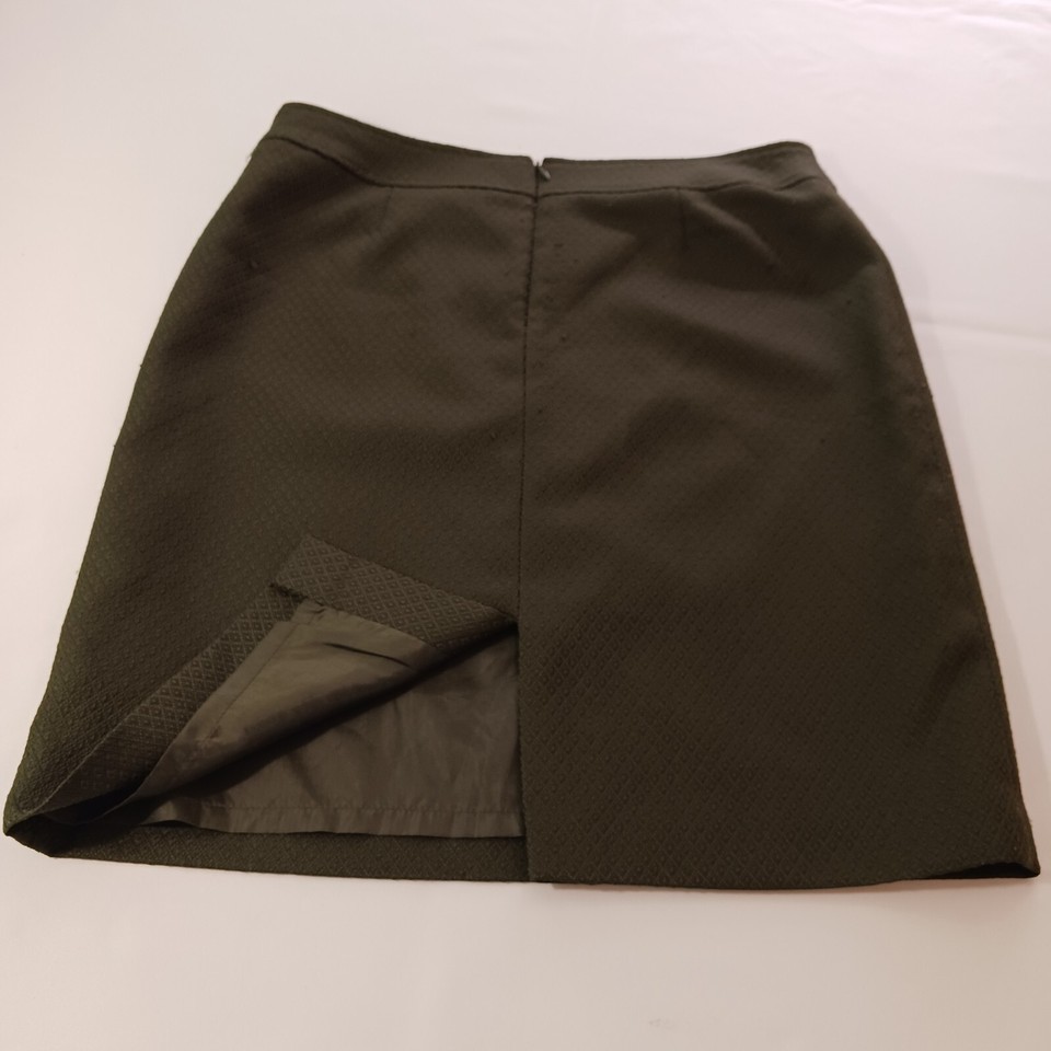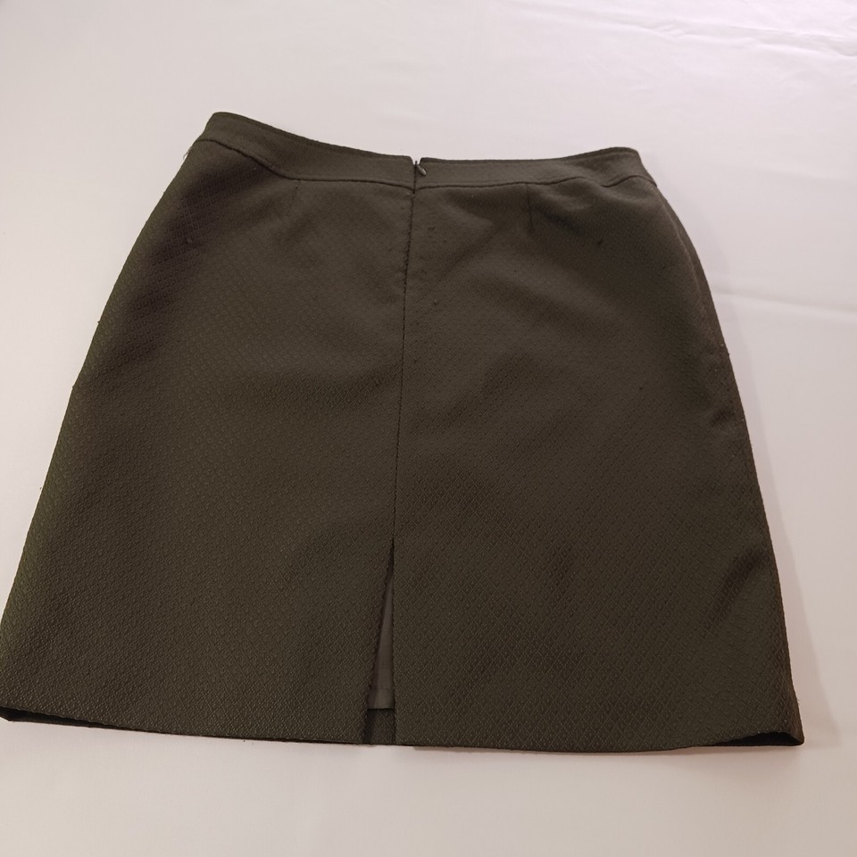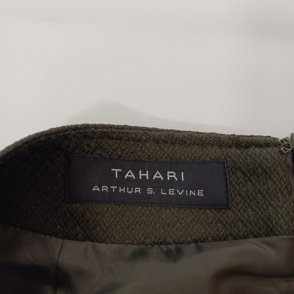 This Tahari by Arthur S Levine women's skirt is perfect for workwear and business occasions. The solid green skirt has a back zip and slit accents, adding a touch of style to your outfit. Made of polyester, the skirt is comfortable and durable, making it suitable for all seasons.