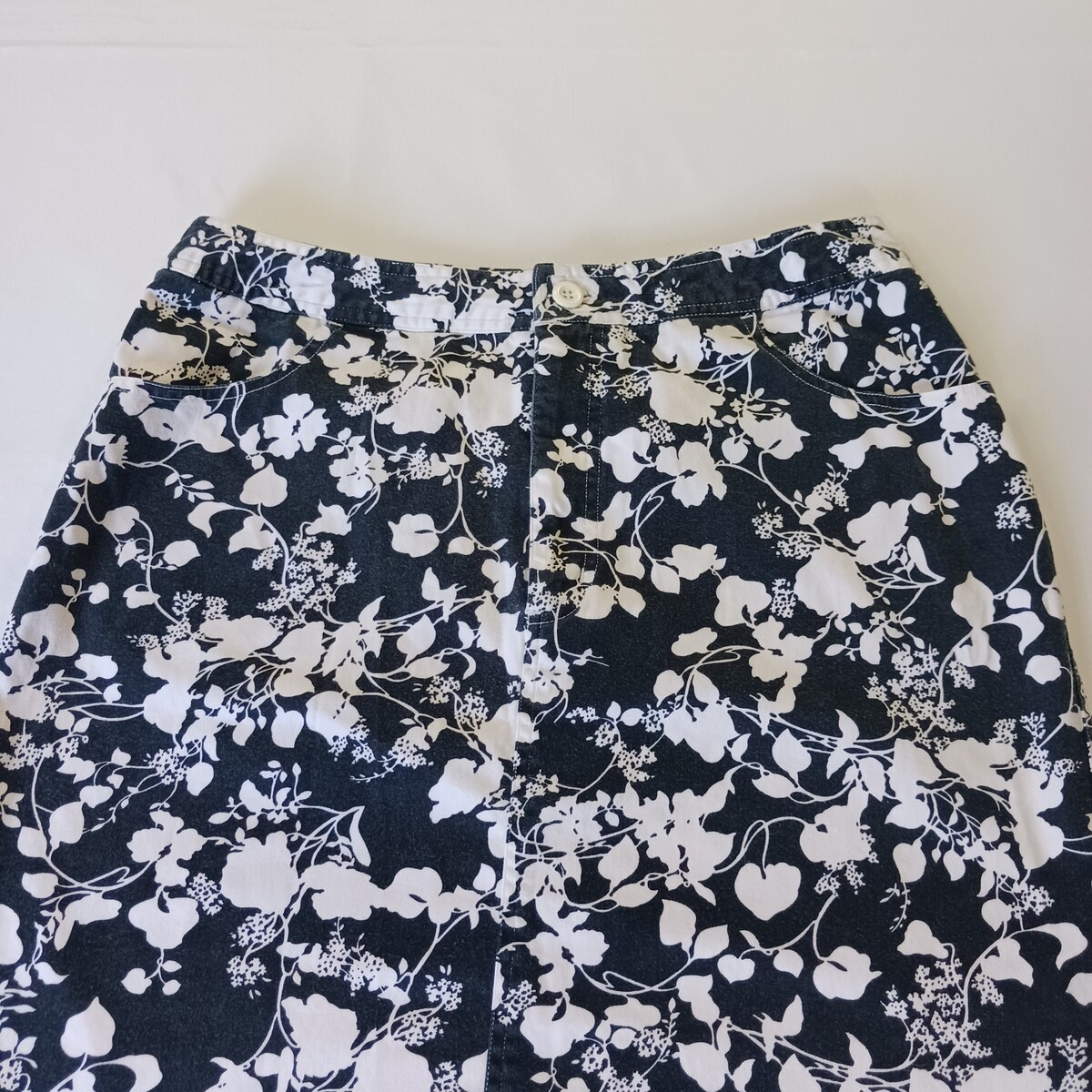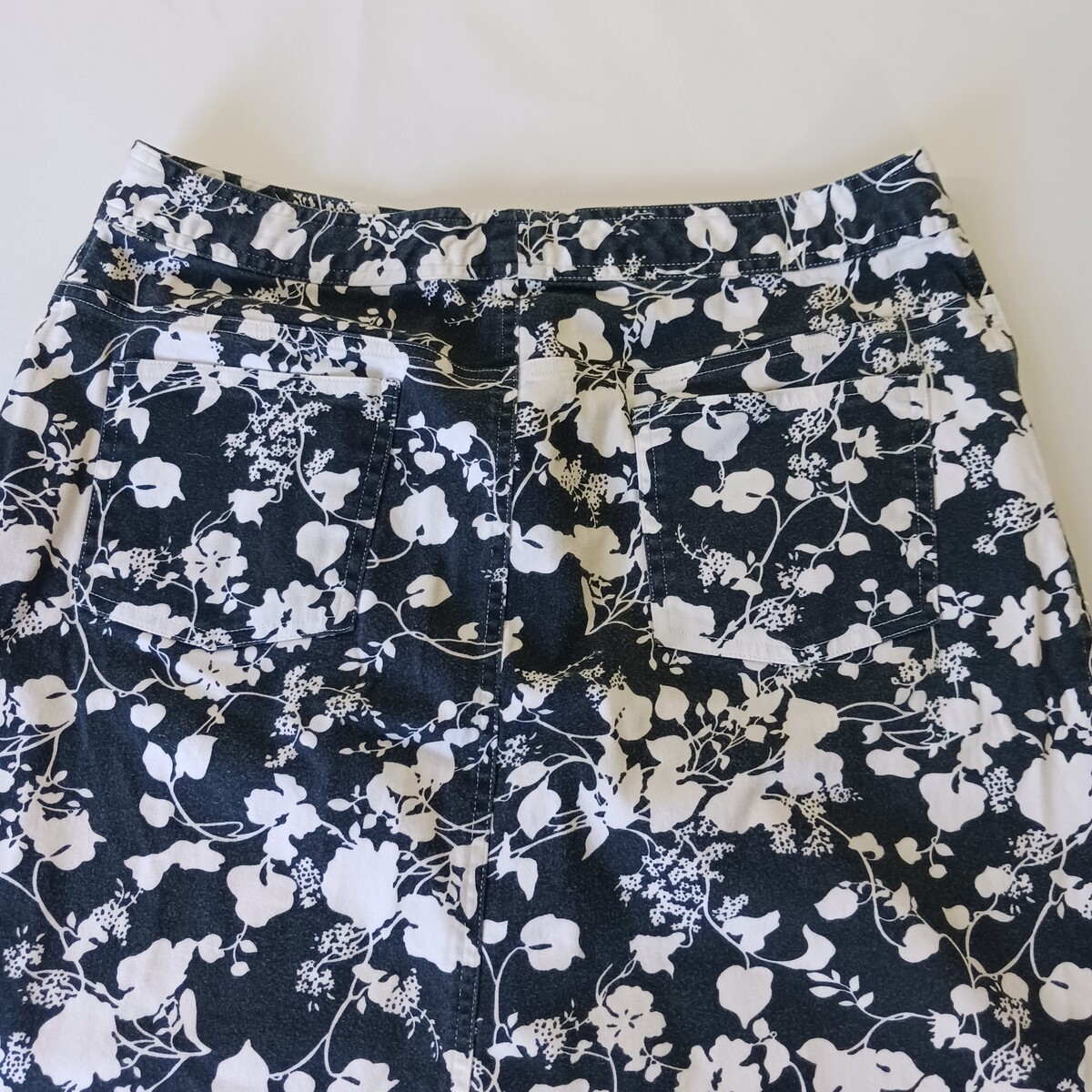 • Tape Measure D2ABMF93T Women’s Black/White Floral Stretch Skirt Size 14 Waist 30 image 10