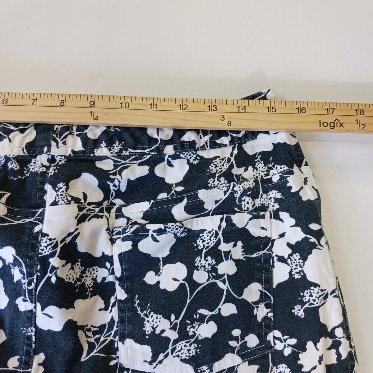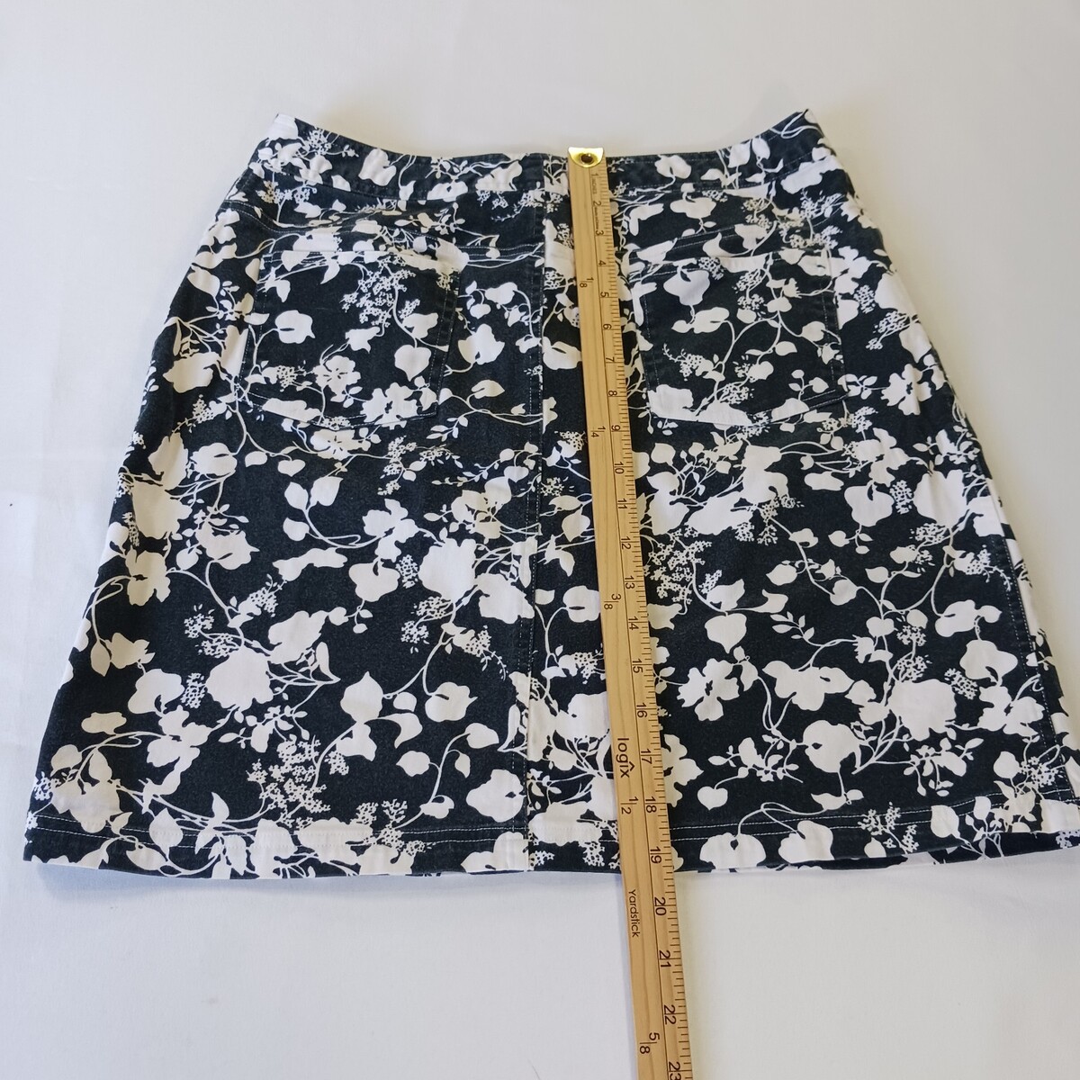 • Tape Measure D2ABMF93T Women’s Black/White Floral Stretch Skirt Size 14 Waist 30 image 13
