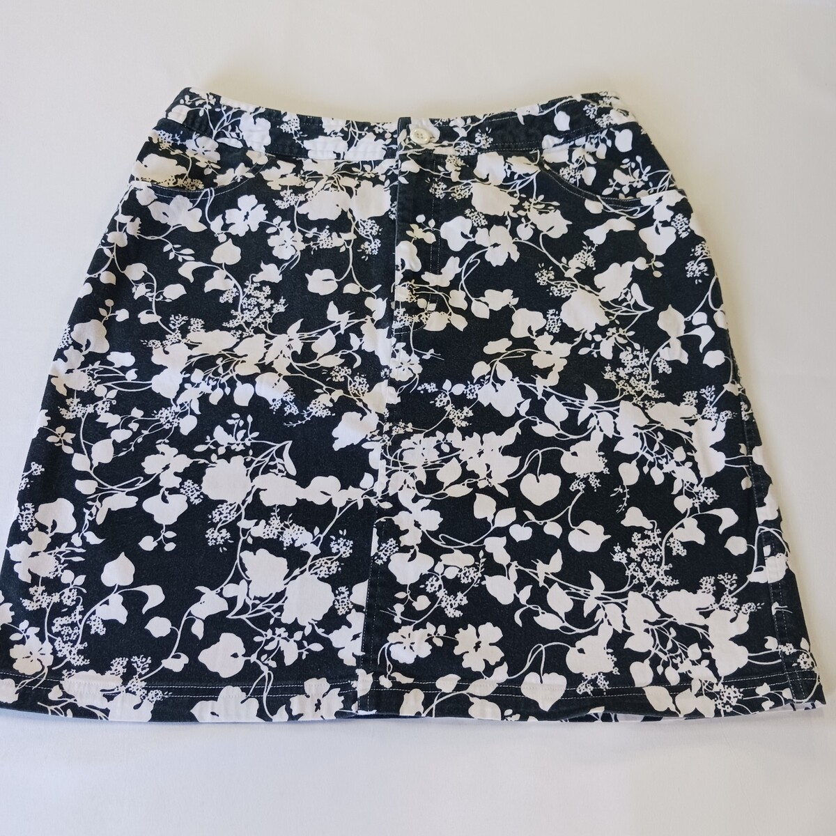 • Tape Measure D2ABMF93T Women’s Black/White Floral Stretch Skirt Size 14 Waist 30 image 1