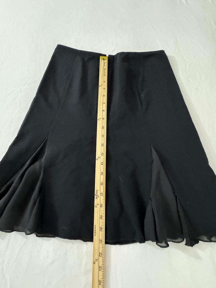 The Tape Measure TZMU0654 Women's Rear Zip Black Godet Skirt in size 6 is a stylish and versatile piece perfect for various occasions. Made from a blend of polyester and rayon, this skirt features a solid black color, a zip closure, and a godet style that adds a touch of elegance. With a length of 21 inches, this skirt is ideal for the summer and spring seasons. The brand TapeMeasure is known for quality and attention to detail, making this skirt a great addition to any woman's wardrobe for both casual and workwear looks.