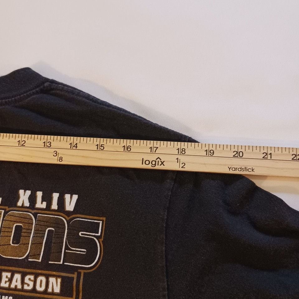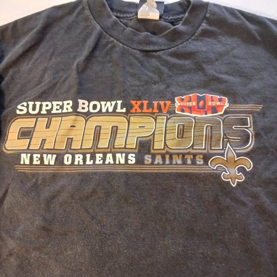Show your support for the New Orleans Saints with this NFL Super Bowl XLIV Champion t-shirt. Featuring the team name and logo, this black shirt is perfect for any NFL fan. Designed specifically for men in size medium, this t-shirt is made of high-quality materials that will ensure its longevity. The shirt is a must-have for any sports memorabilia collector and is perfect for any occasion. Whether you are attending a game or just want to show your support, this t-shirt is a great addition to any wardrobe.