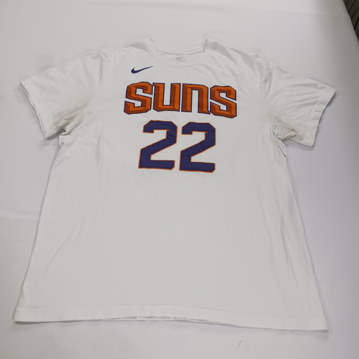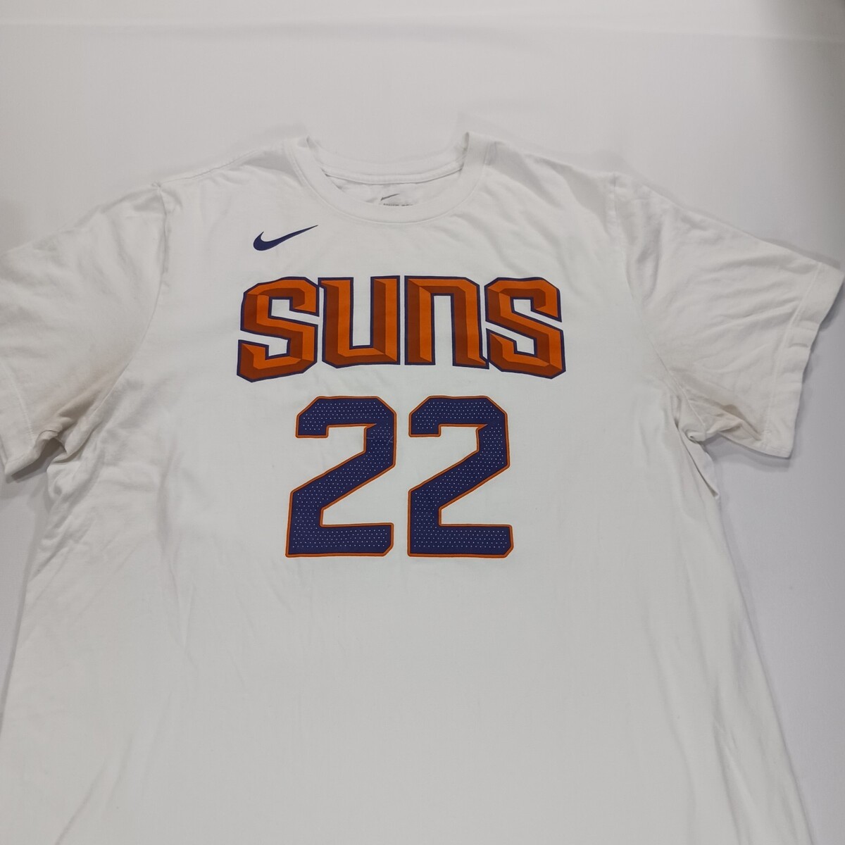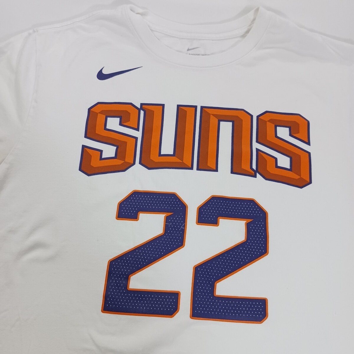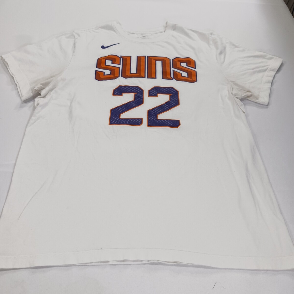 The Nike Tee NBA Deandre Ayton #22 Phoenix Suns Men's White T-Shirt in size XL is an officially licensed product featuring the Phoenix Suns player Deandre Ayton. Made by Nike, this shirt is perfect for basketball fans looking to show support for their favorite team. The white color and gender-neutral design make it suitable for men who are fans of the National Basketball Association and the Phoenix Suns. Made in Nicaragua, this shirt is a must-have for any basketball enthusiast's wardrobe.