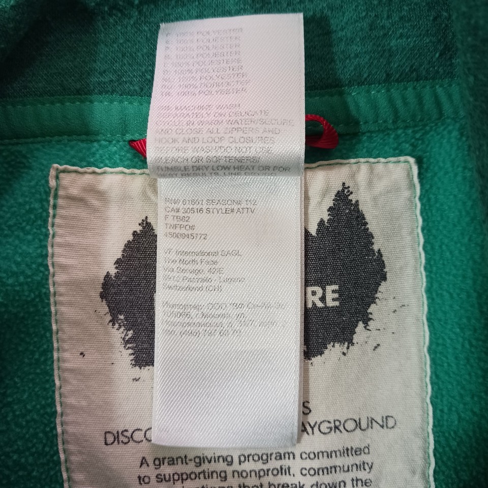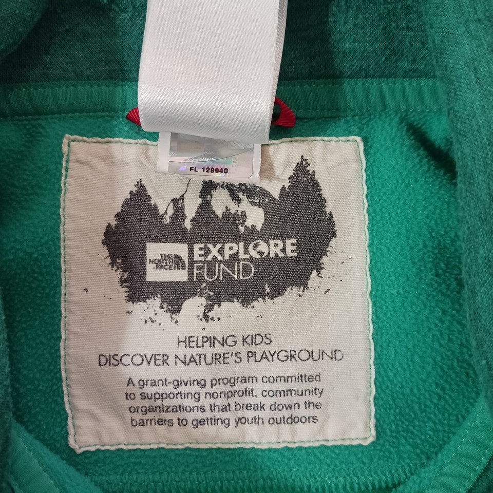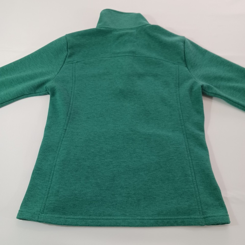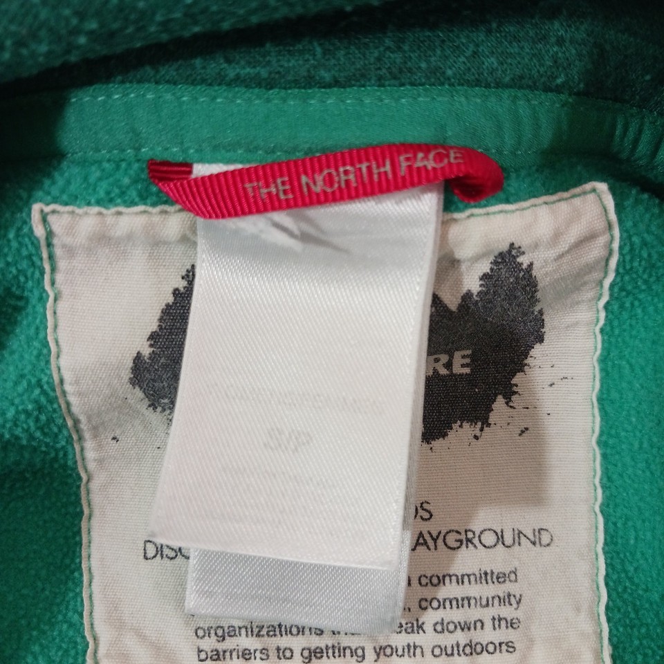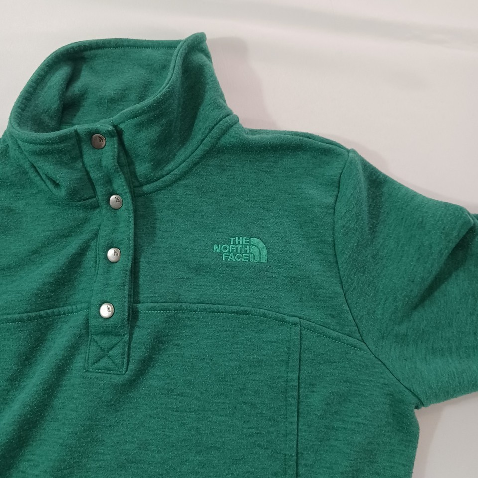 Elevate your activewear collection with this stylish green pullover sweatshirt from The North Face. Designed with a solid pattern and long sleeves, this fleece sweatshirt features a 1/4 snap closure for easy wear. The chest size is 36 inches, and it comes in a regular size type for women.