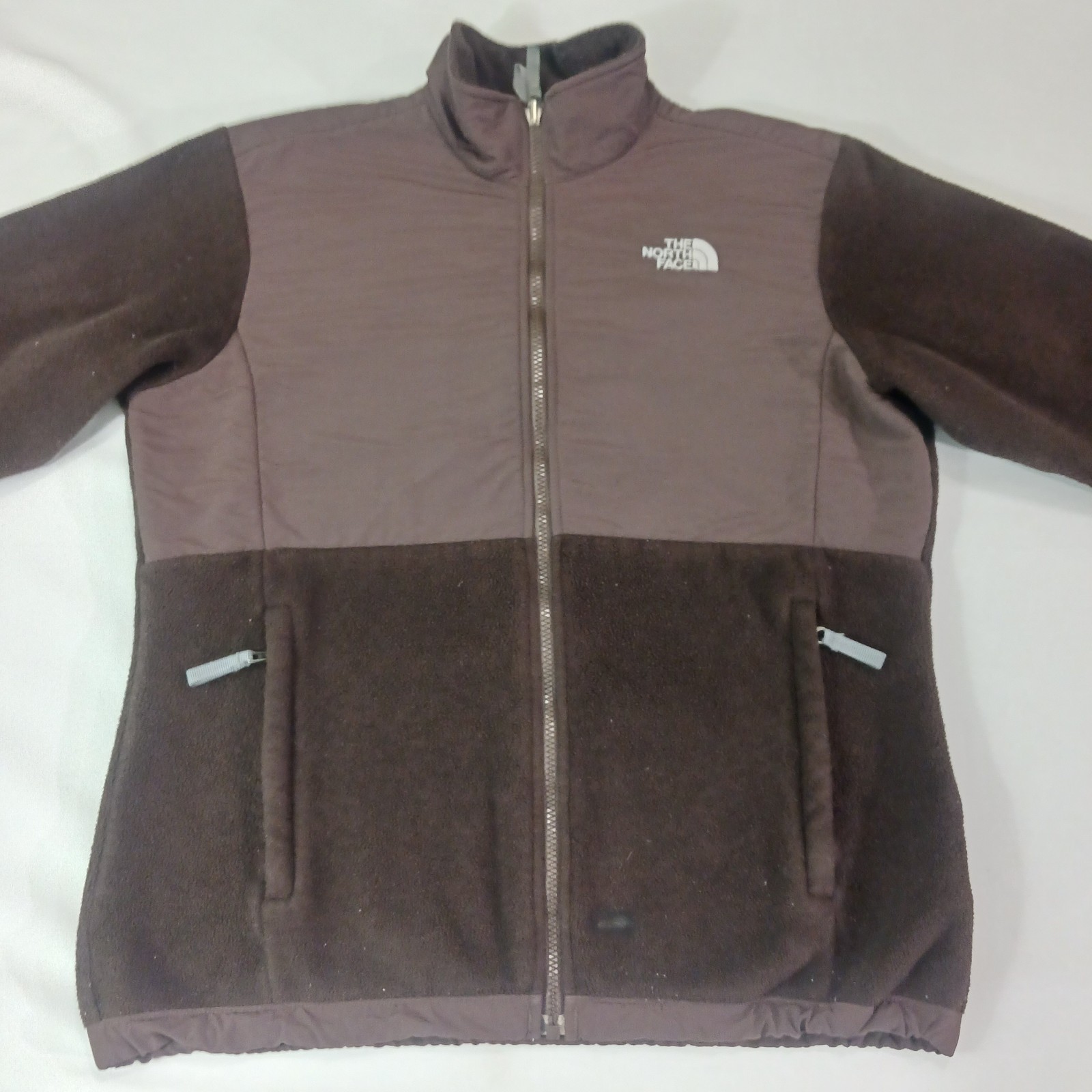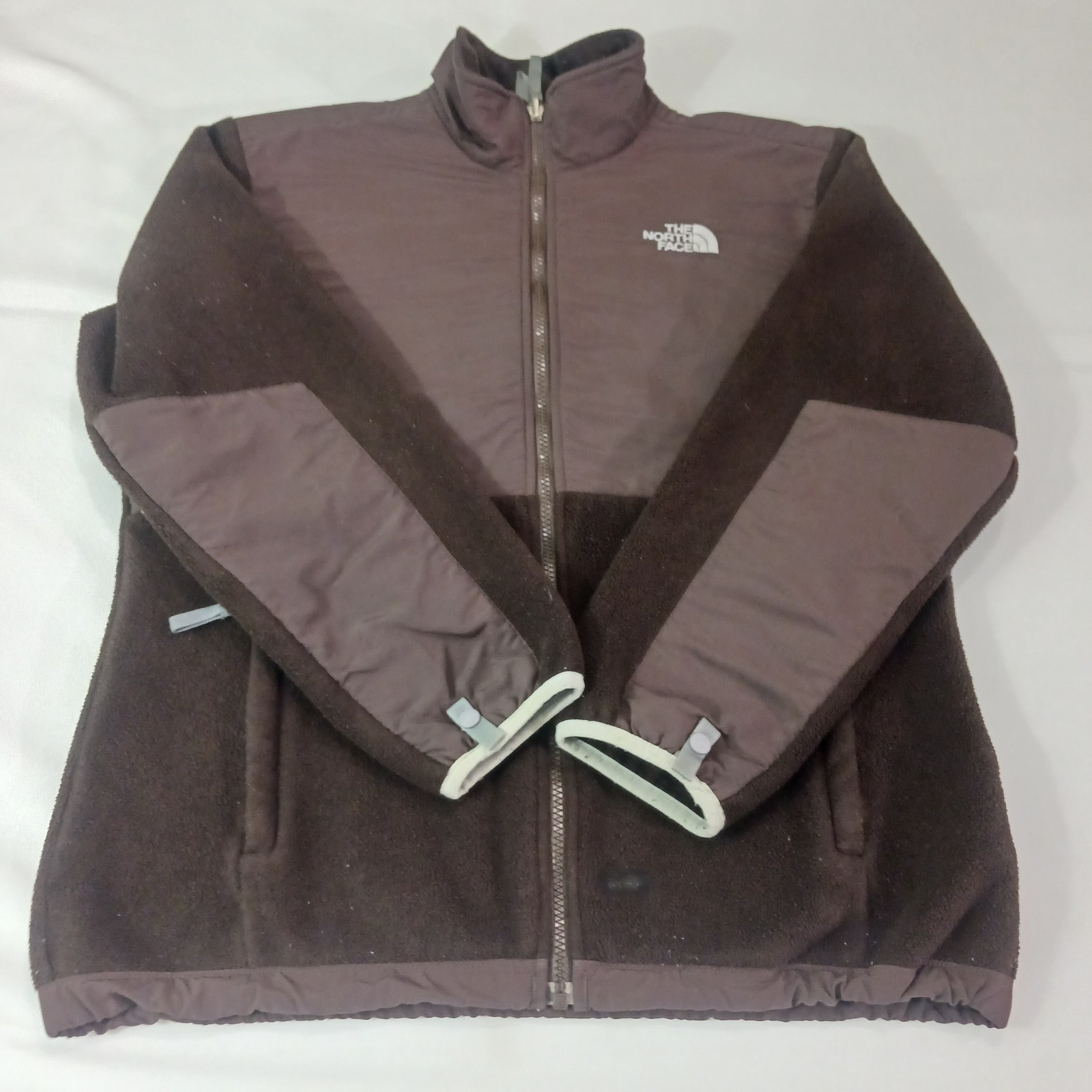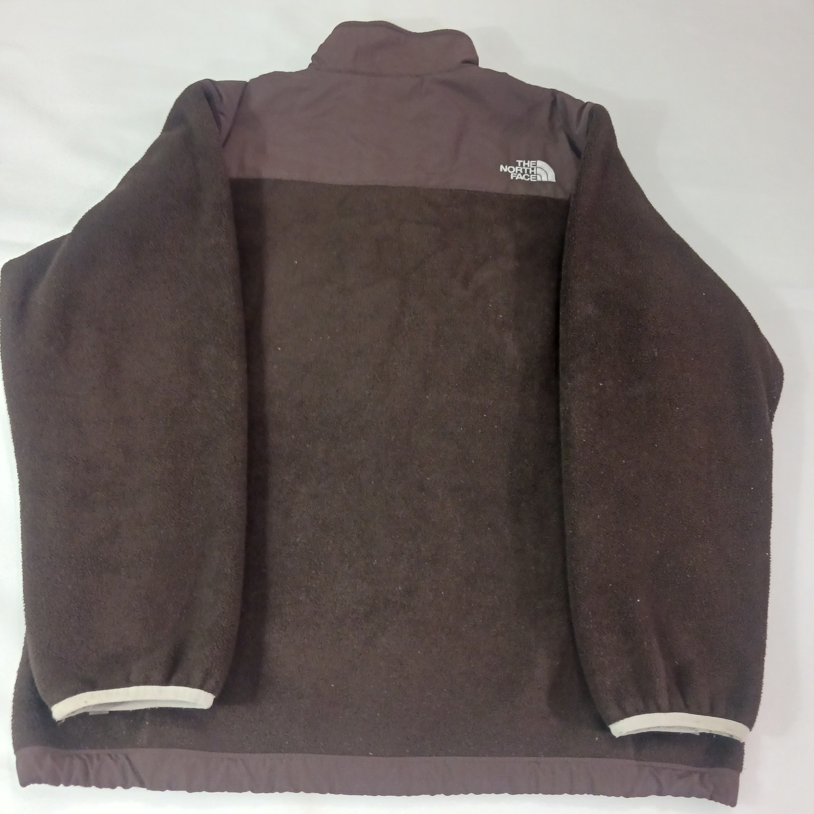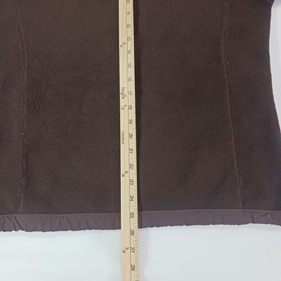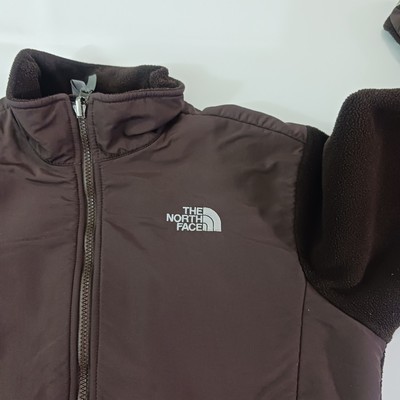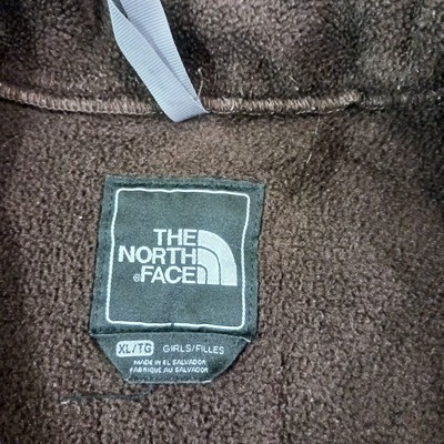 The North Face Brown Denali Full Zip Fleece Jacket AC9Q Polartec Girls Size XL is a warm and comfortable jacket made of polyester. It features a full zip closure, long sleeves, and a solid brown color. The jacket is embroidered with the logo of The North Face and has a classic outdoor theme.