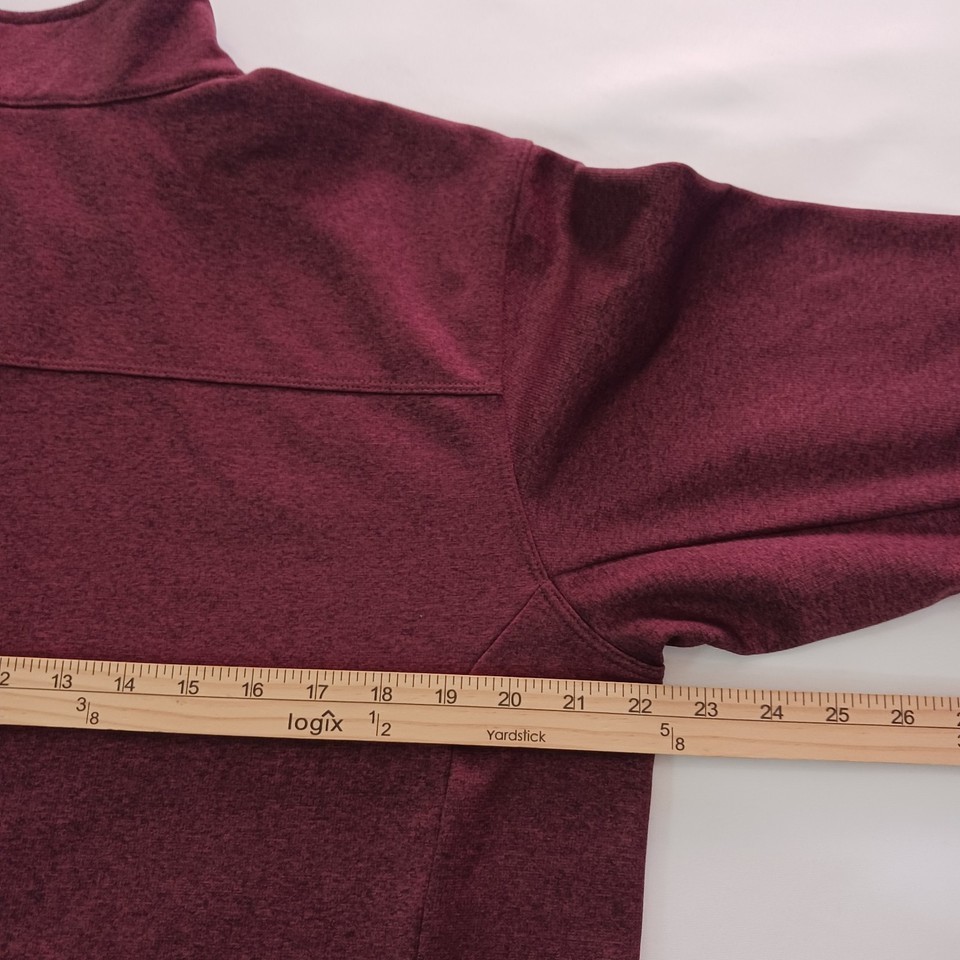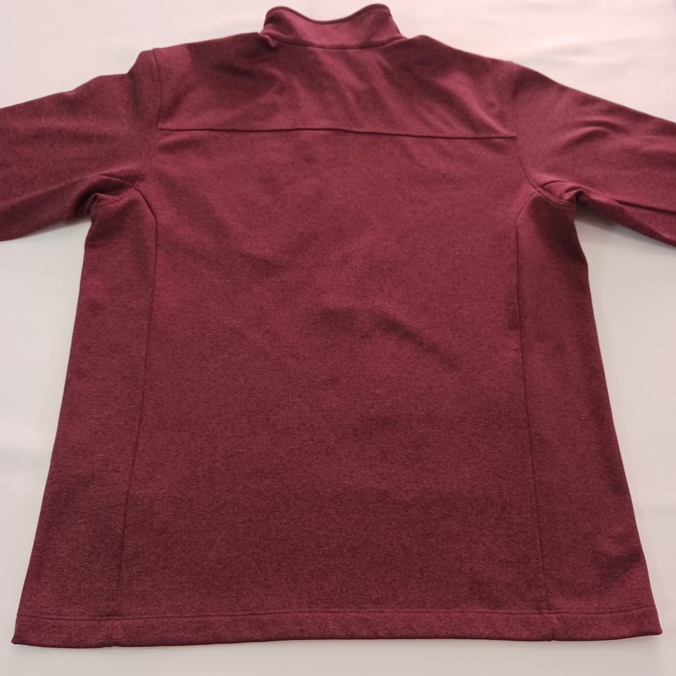 Elevate your outdoor wardrobe with The North Face Men's Red Long Sleeve Pullover Sweatshirt. Designed with a convenient 1/2 zip closure, this solid red fleece sweatshirt is perfect for activities such as walking and hiking. The polyester material and fleece fabric type provide warmth and comfort in any outdoor setting.