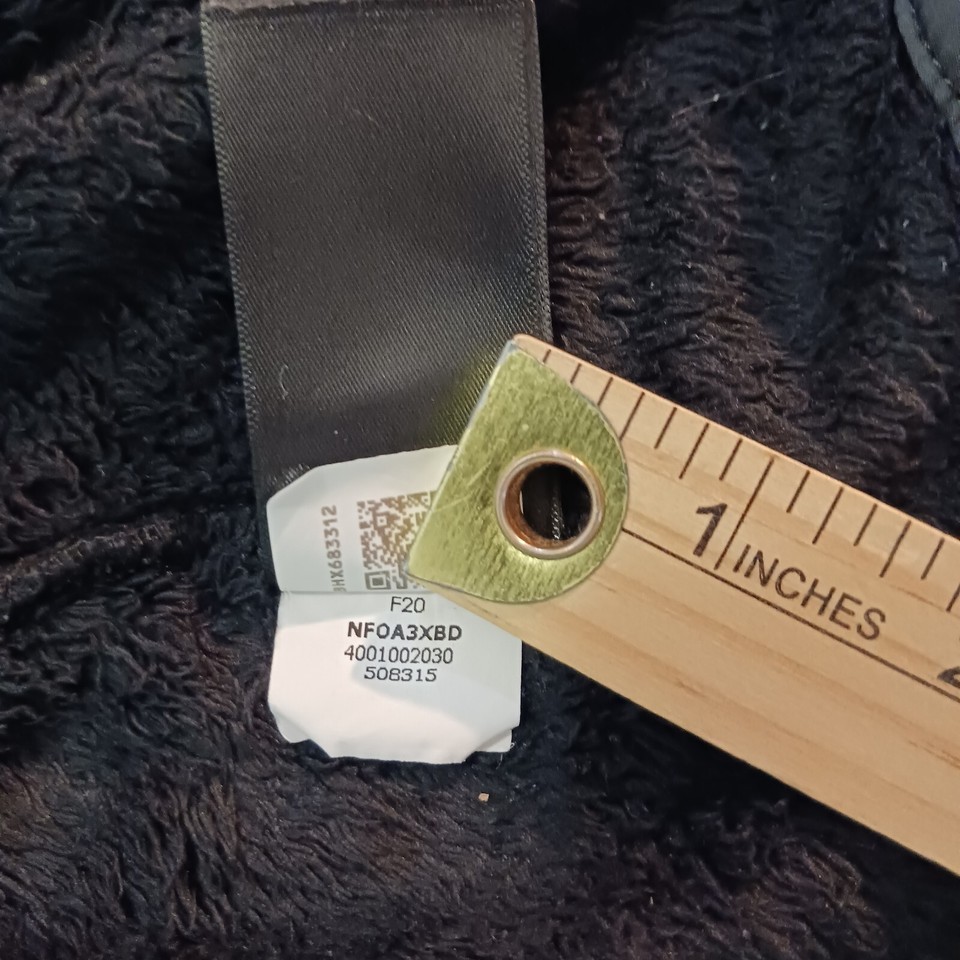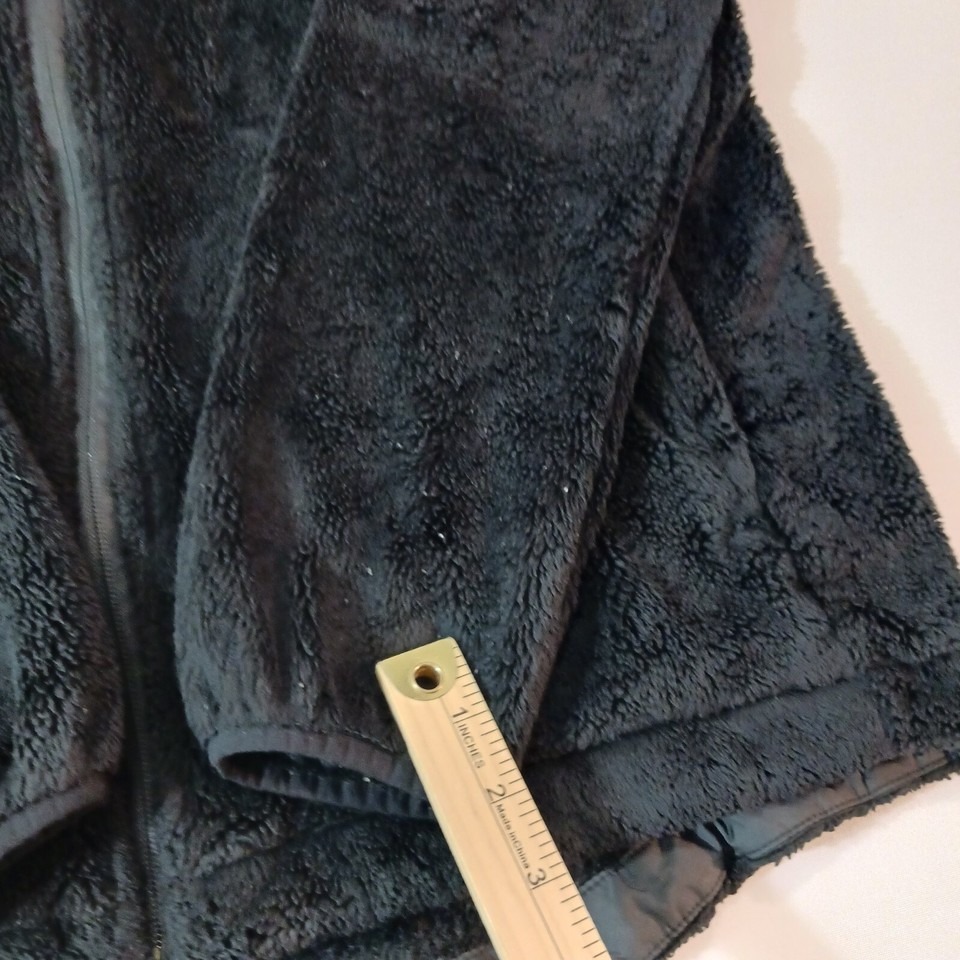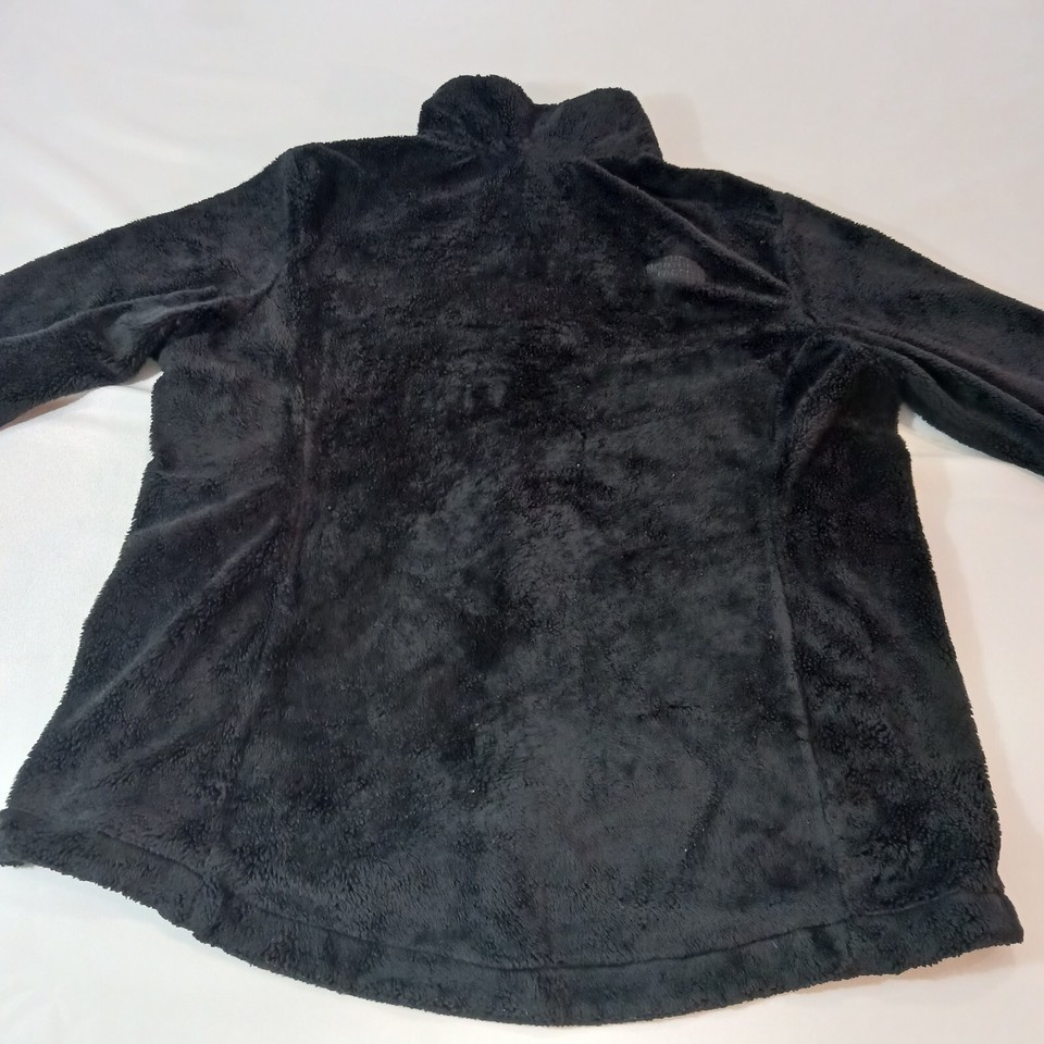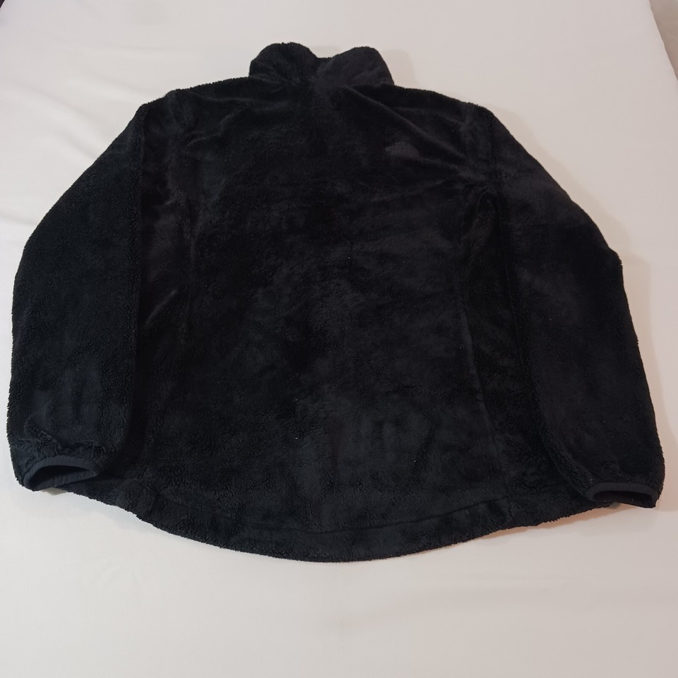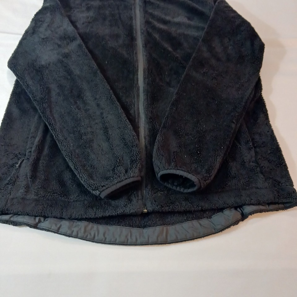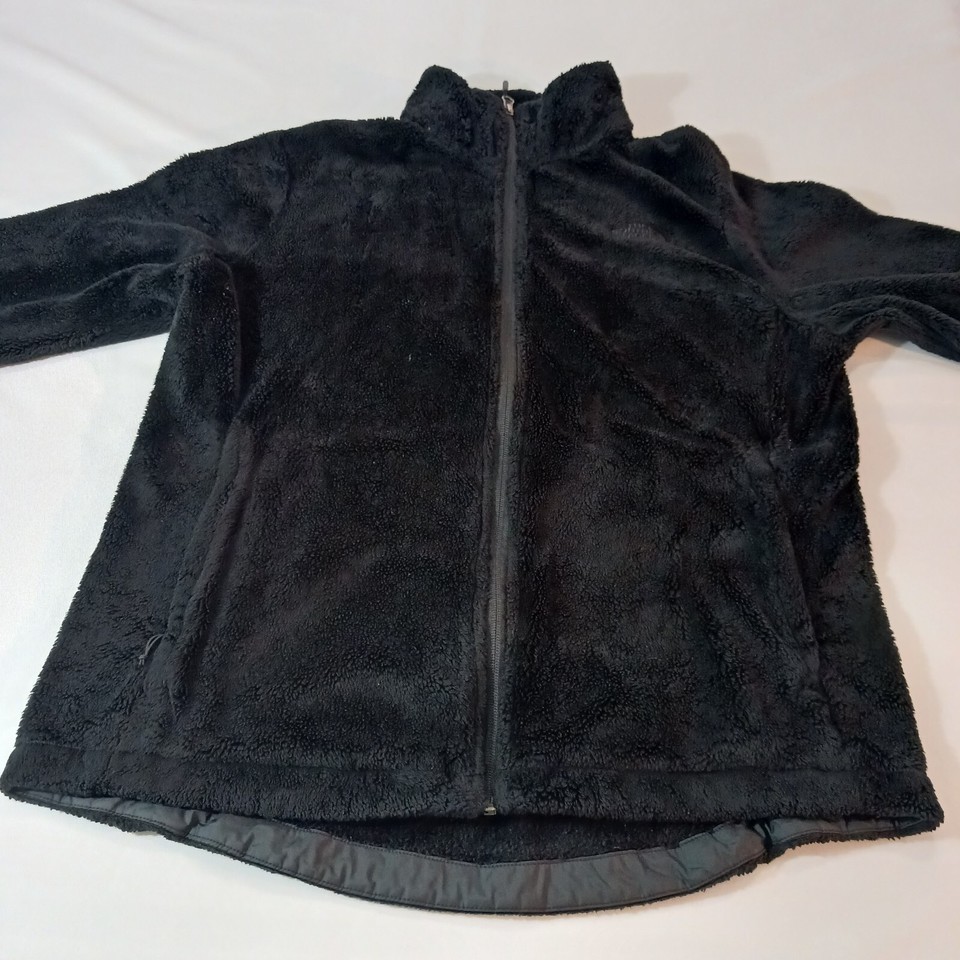 This black fleece jacket from The North Face is a must-have for any outdoor activity. With a full zip closure and collared neckline, it provides both warmth and style. The jacket is made of fuzzy polyester insulation material and lined with polyester, making it comfortable and machine washable.