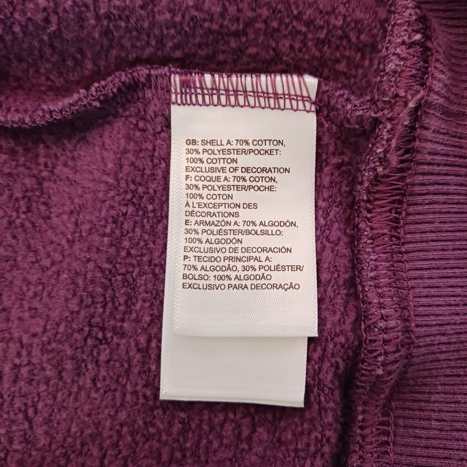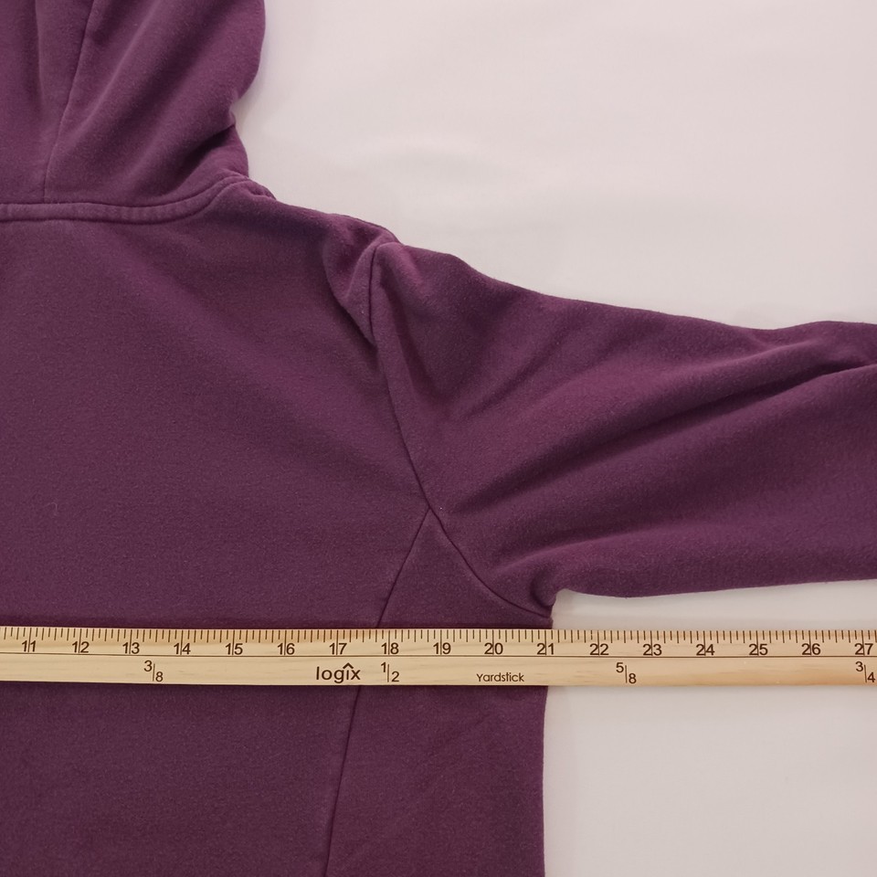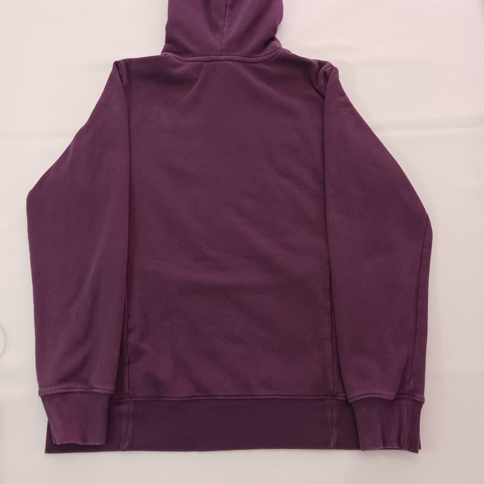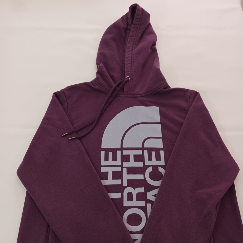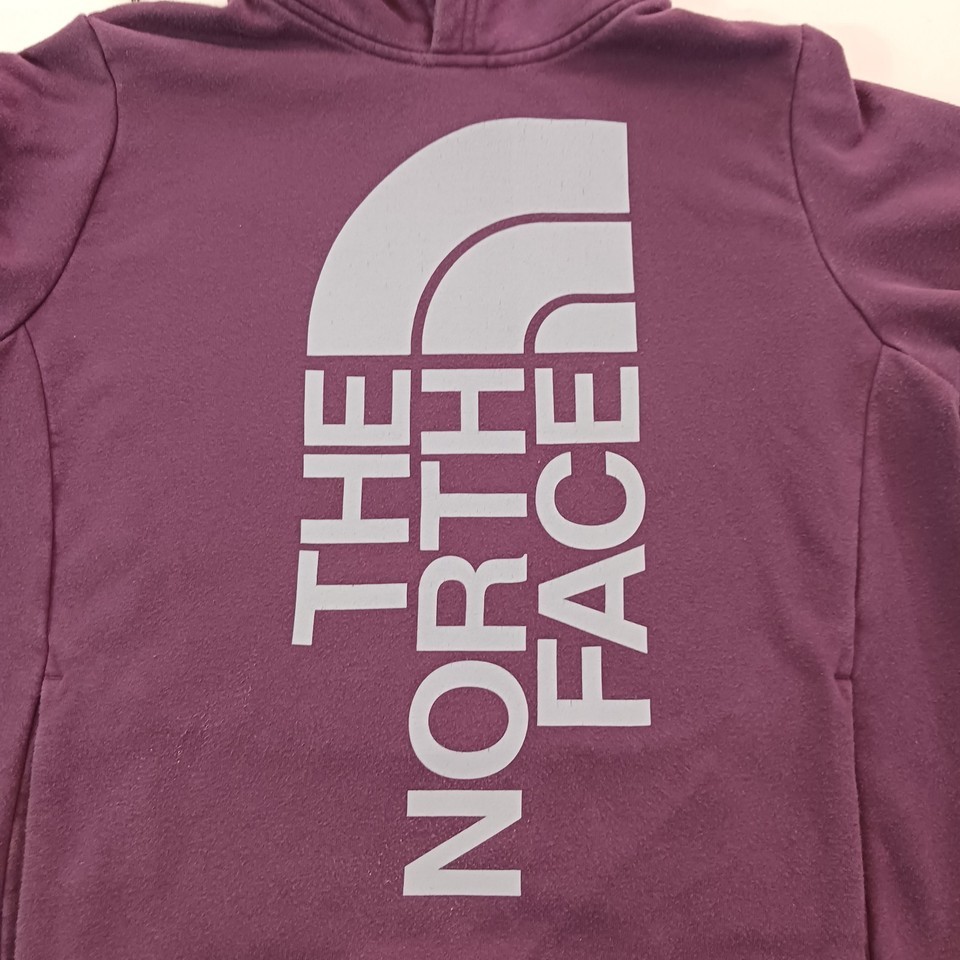 The North Face NF0A471T Women's Purple Trivert Pullover Hoodie Sweatshirt in size M is a stylish and functional piece of activewear for women. Made from a blended fabric of polyester and cotton, the hoodie features a high neckline with a drawstring closure for a customized fit. It has a hood, pockets, and breathable material, making it perfect for outdoor activities in the winter, fall, or spring seasons. The solid purple color and logo accents add a fashionable touch, while the raglan sleeves provide a comfortable fit. Ideal for walking or hiking, this hoodie is a versatile and practical addition to any wardrobe.