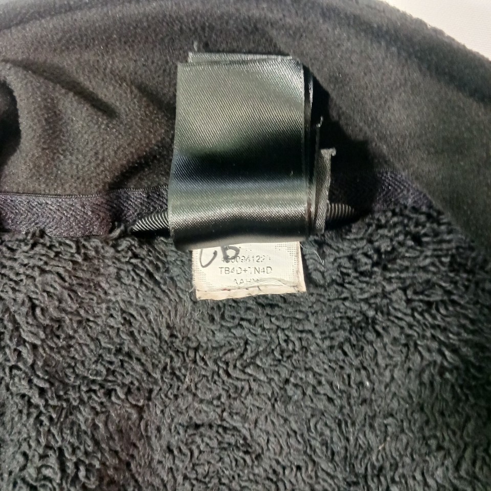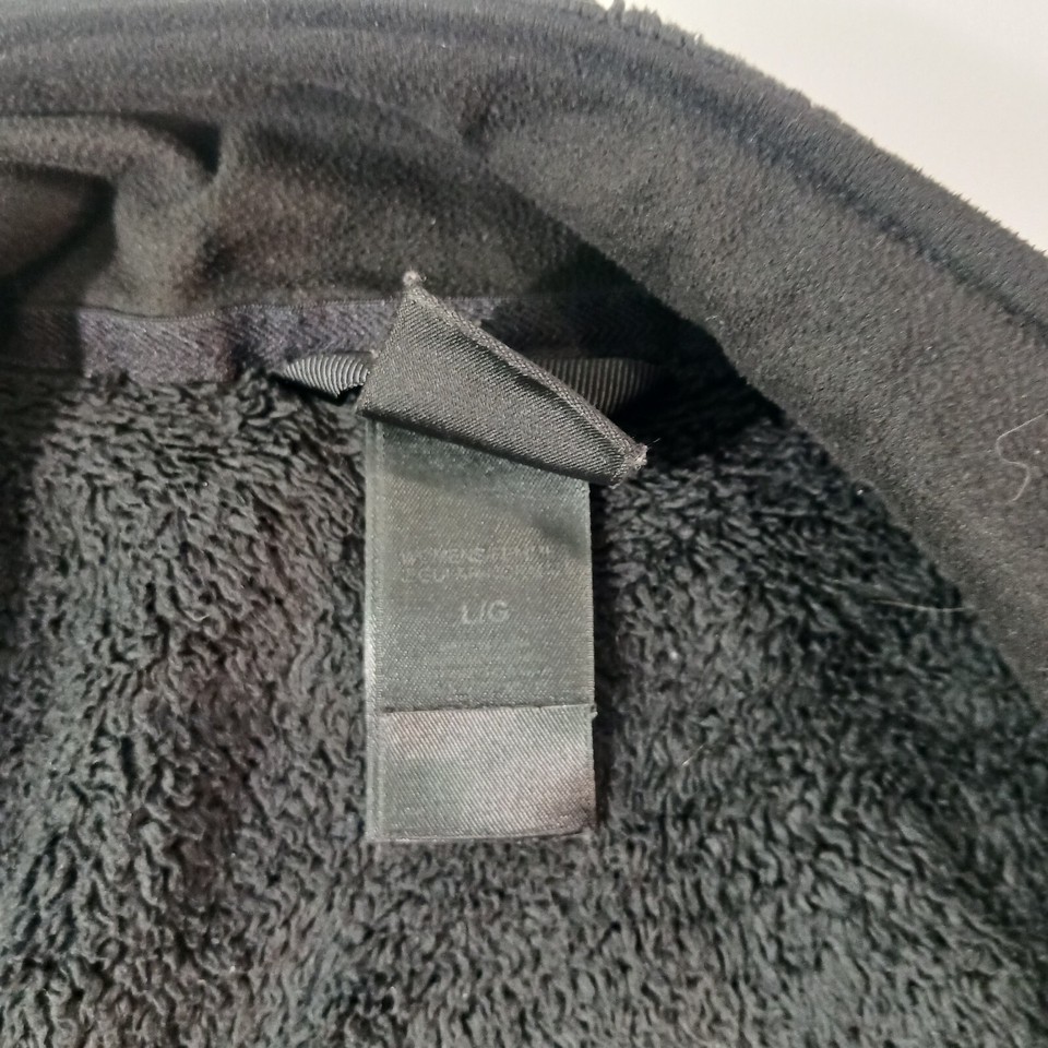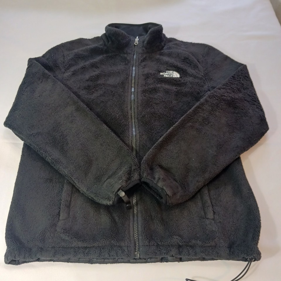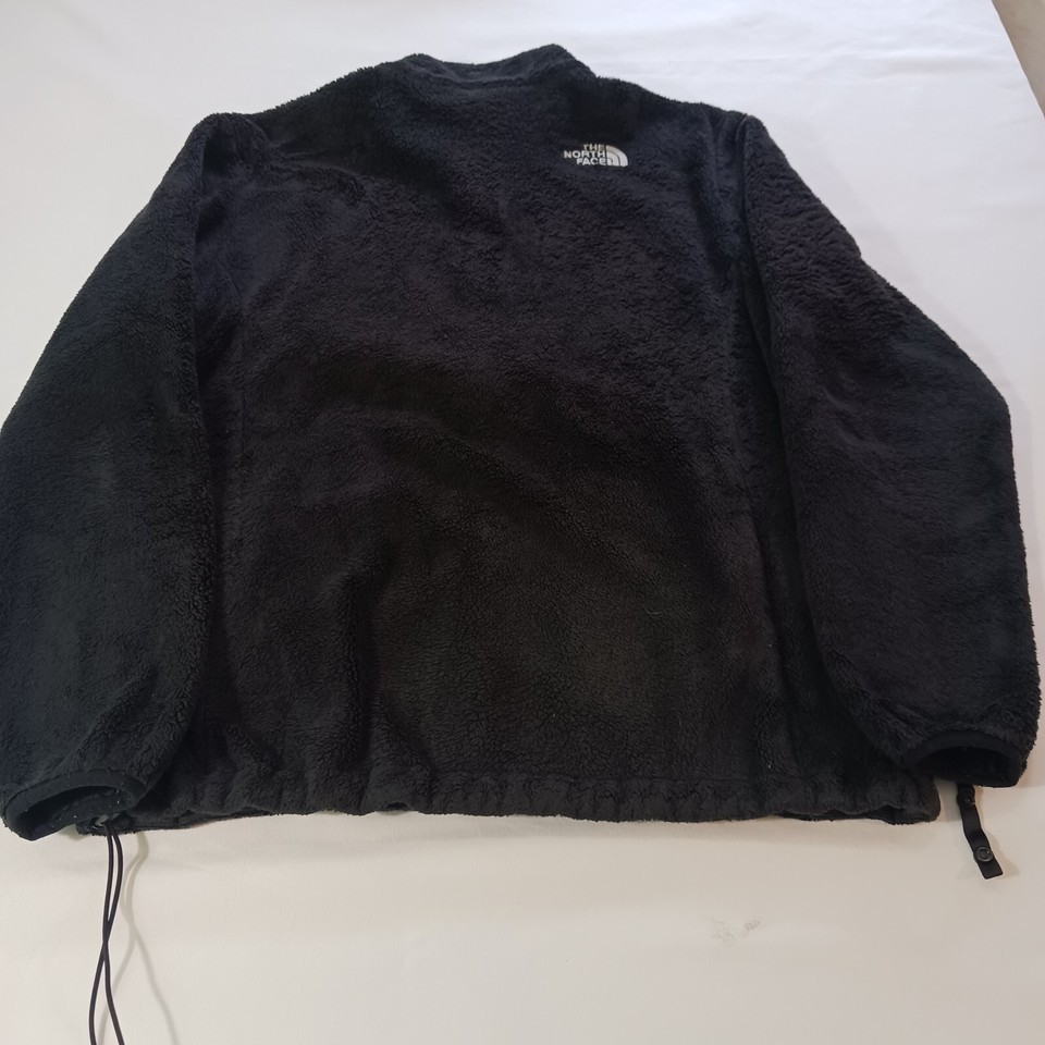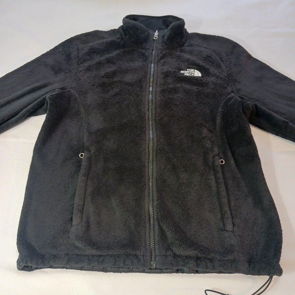 Stay warm and stylish with this black fleece jacket from The North Face. It features a full zip closure and long sleeves for the colder seasons of fall, winter, and spring. The jacket is made of polyester and has a regular fit, with a size of L. The exterior color is white, and the jacket has a basic style with pockets for added convenience.