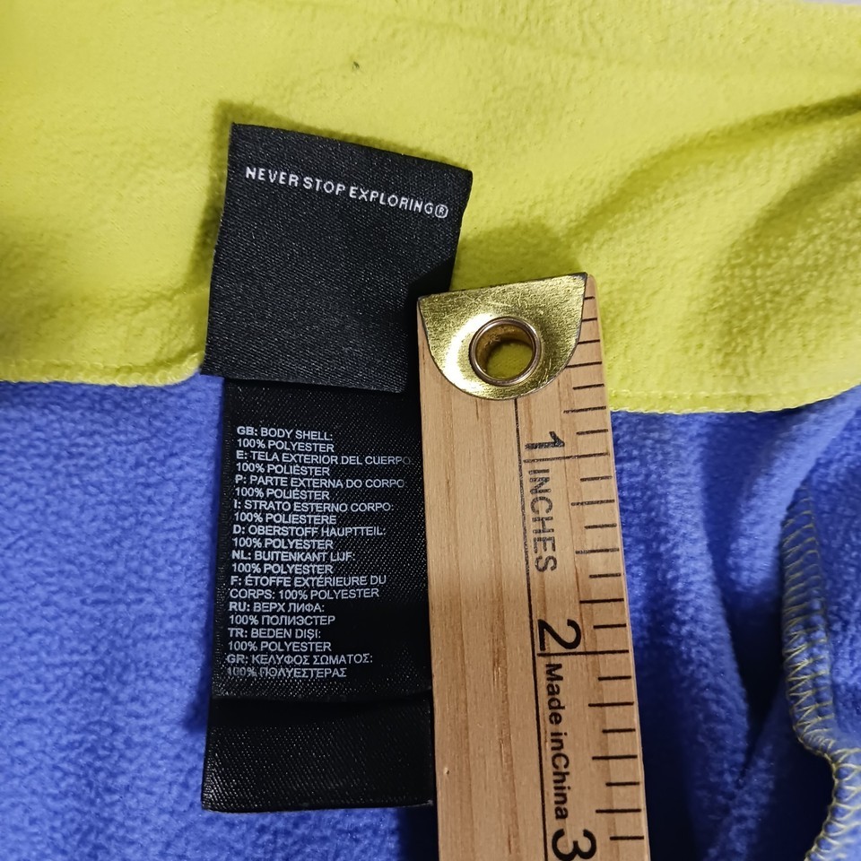 The North Face Youth Girl's XL Purple 1/4 Zip Pullover Fleece Sweatshirt is a stylish and warm outerwear option for girls. Made with 100% polyester fleece, this sweatshirt features a solid purple color with a 1/4 zip closure for easy wear. Perfect for casual occasions in the winter and fall seasons, this classic fit sweatshirt is machine washable for easy care. The North Face brand ensures quality and durability, making it a reliable choice for outdoor activities.