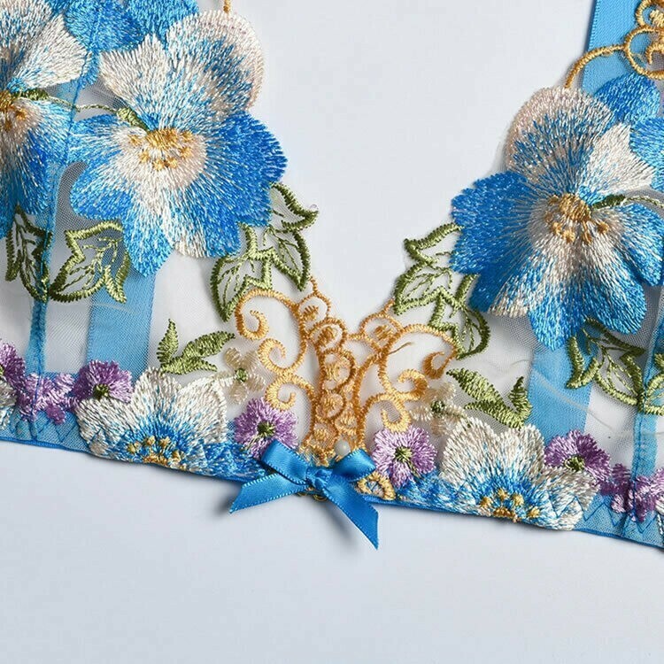 Get hearts racing in this lingerie set doll. Featuring a triangle bra with a tie fastening and matching lace up thongs, both in a blue lace material, we are obsessed. Just add a satin robe to complete the look.