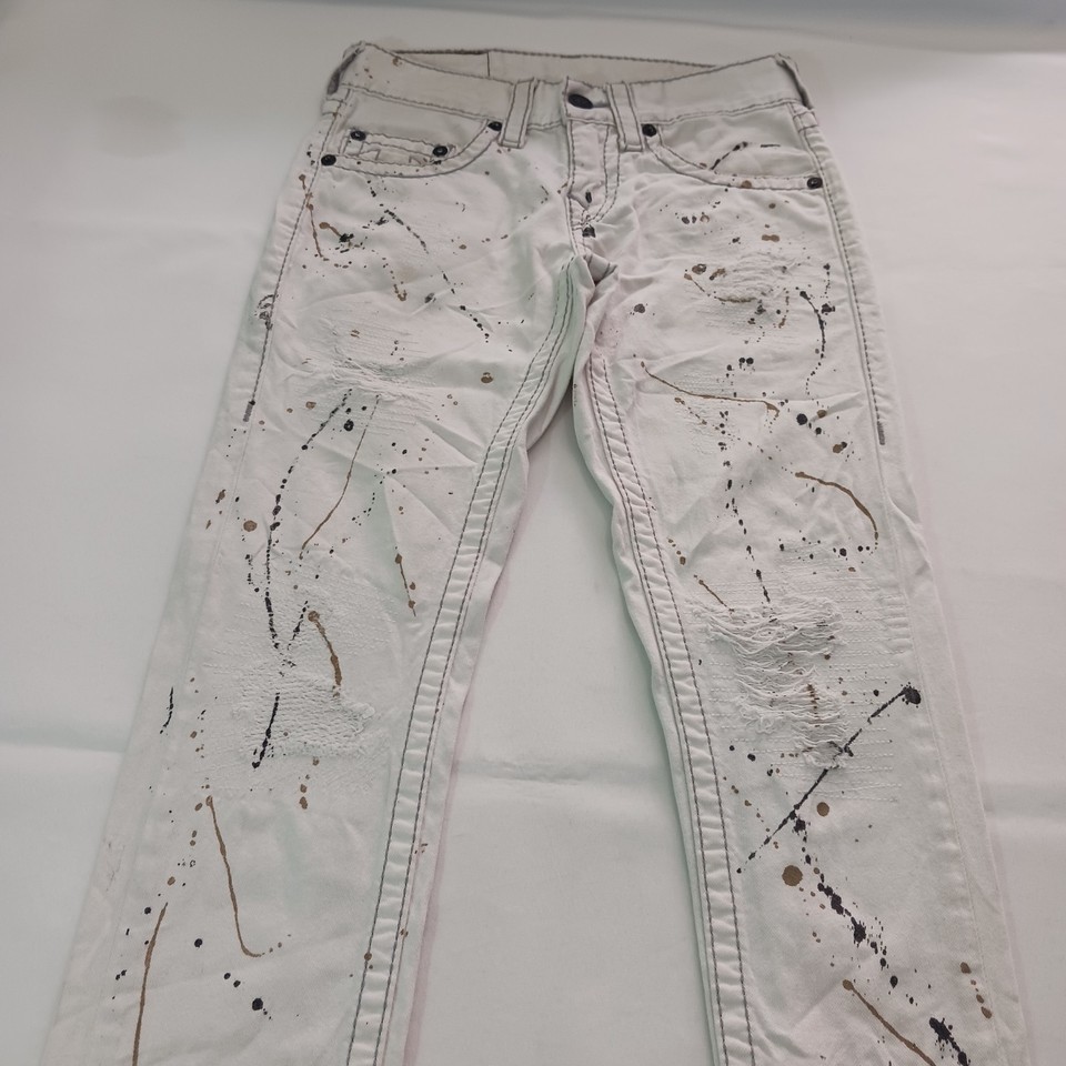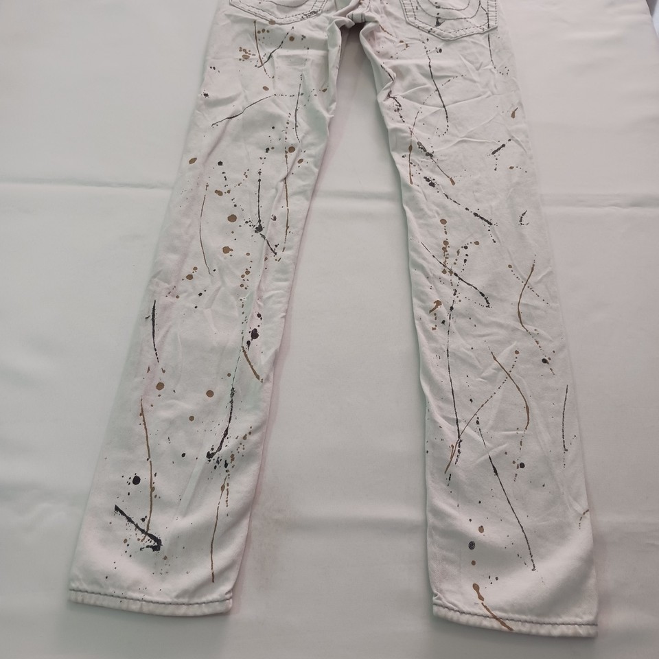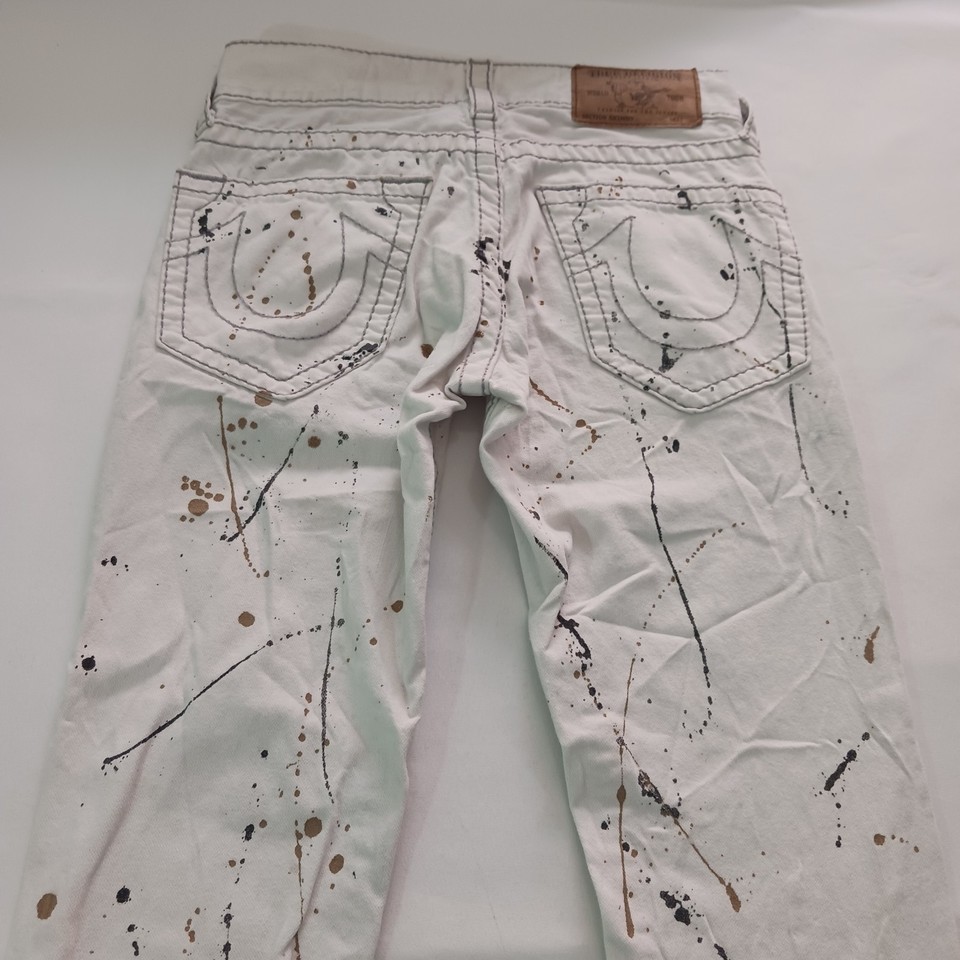 • True Religion MOZJ60ESB Women's 27 White Cotton Skinny Jeans With Paint Design image 1
