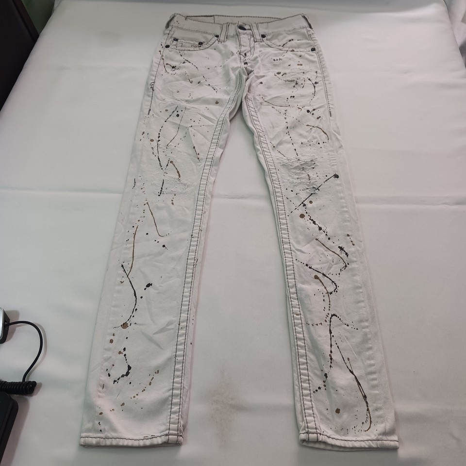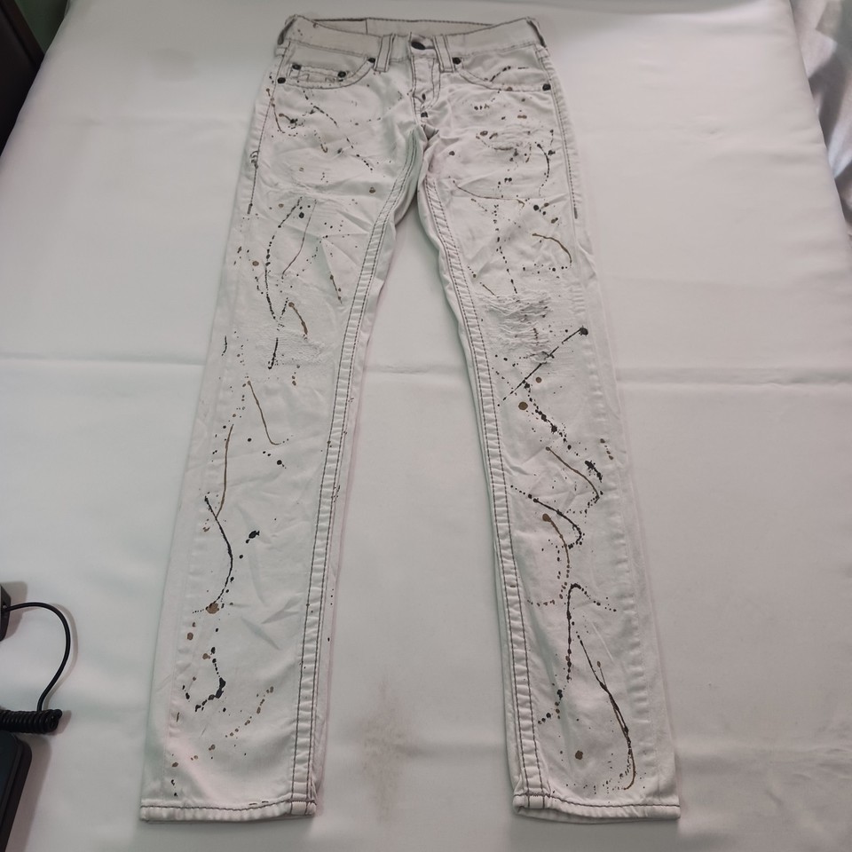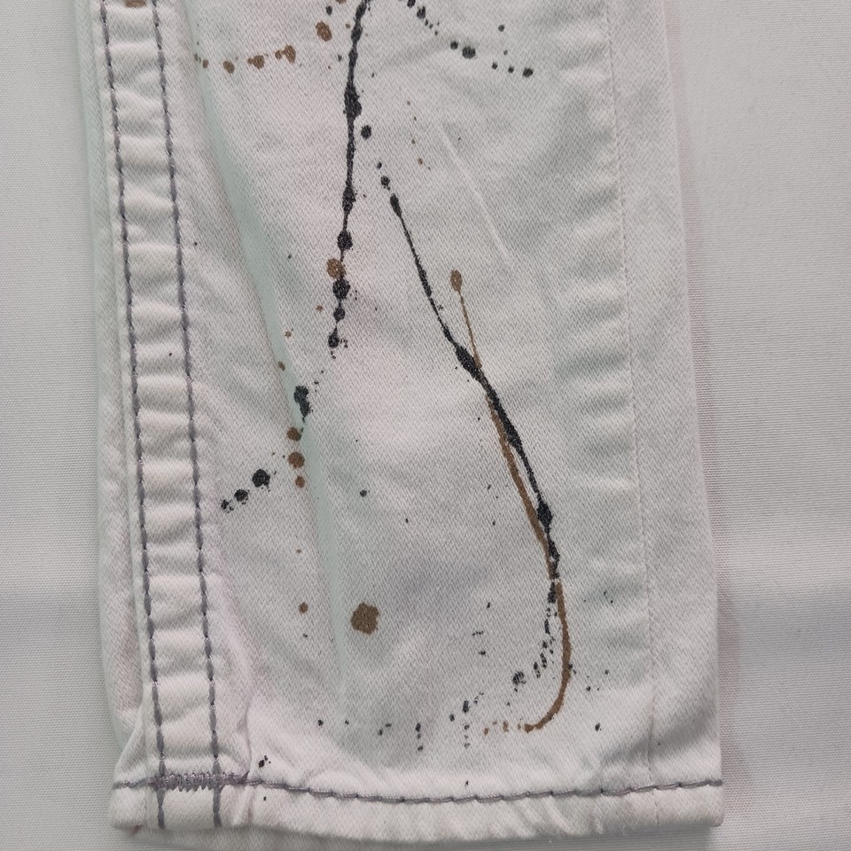 True Religion MOZJ60ESB Women's 27 White Cotton Skinny Jeans With Paint Design