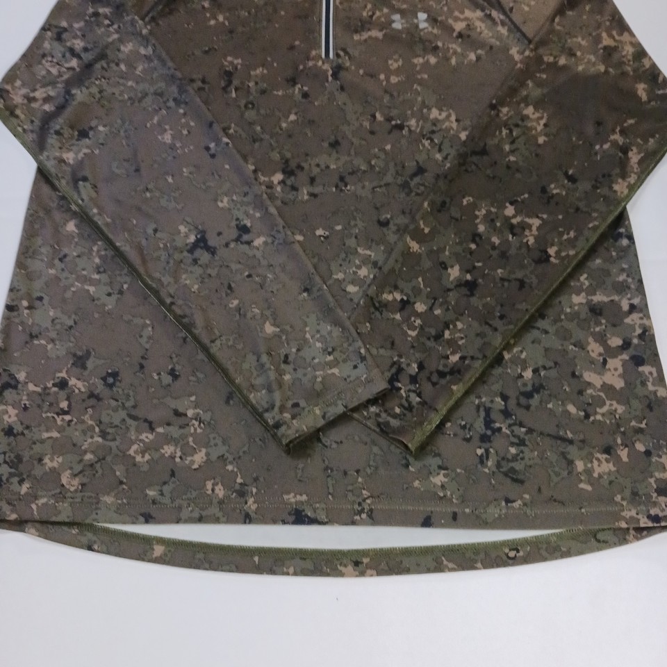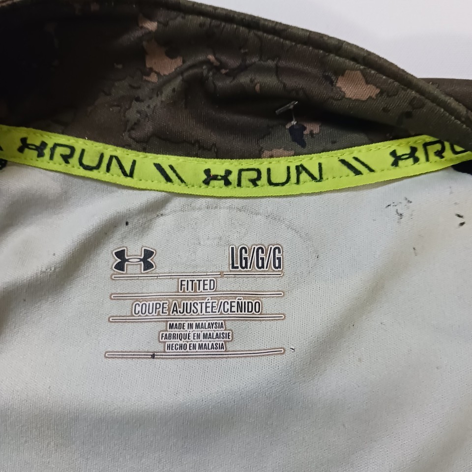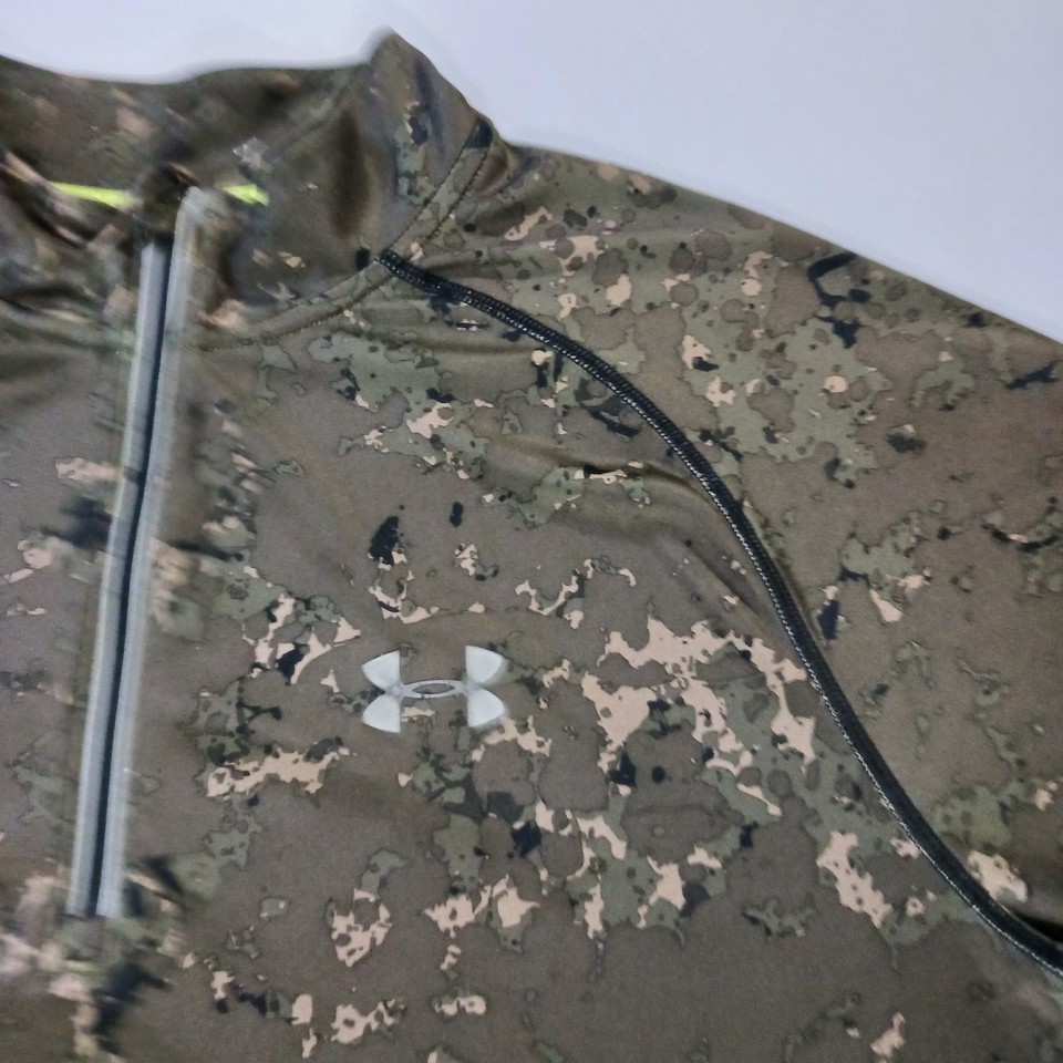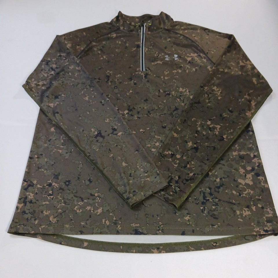 The Under Armour Fitted Men's 1/4 Zip Green Long Sleeve Pullover T-Shirt in size Large is a high-quality and stylish piece of clothing for men. Made with 93% Polyester and 7% Elastane, this shirt is perfect for the winter, fall, and spring seasons. The long sleeves and fitted design ensure both comfort and a flattering look, while the green color adds a pop of color to any outfit. Perfect for workouts or casual wear, this Under Armour shirt is a versatile addition to any man's wardrobe.