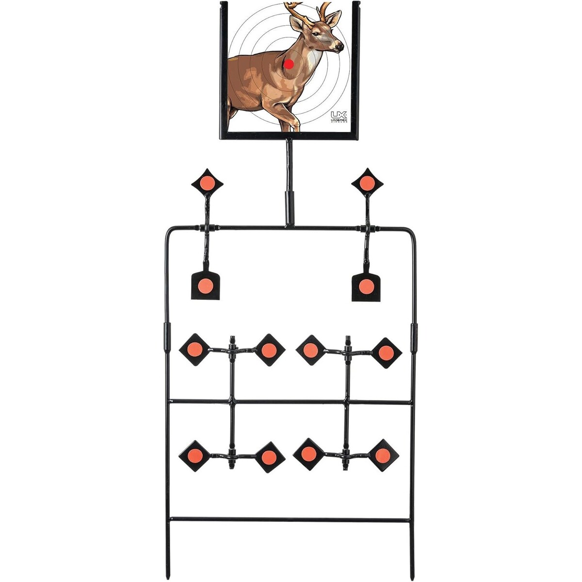 Elevate your airgun practice with the Umarex Multi-Shot Target System, featuring a fixed paper target bracket and six dual spinners (two vertical, four horizontal) for dynamic shooting. With sturdy steel ground stakes, easy setup, and 80 included paper targets, this airgun target is ideal for competitive fun and skill-building. Refill paper targets available. Umarex Multi-Shot Target System, airgun target, airgun shooting target, spinning target, paper target system, airgun practice, airgun competition, steel spinner target, .177 caliber target, .22 caliber target, backyard shooting, airgun training, target practice, refill paper targets, durable airgun target.