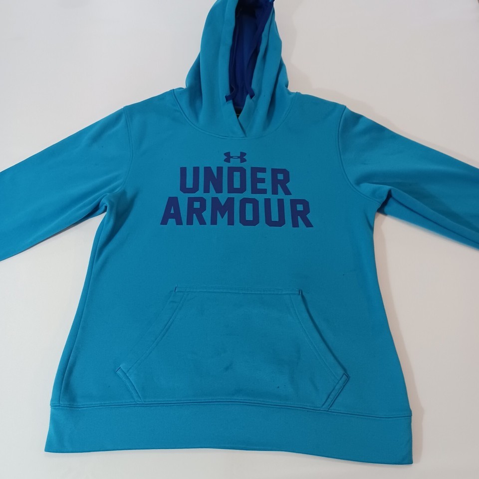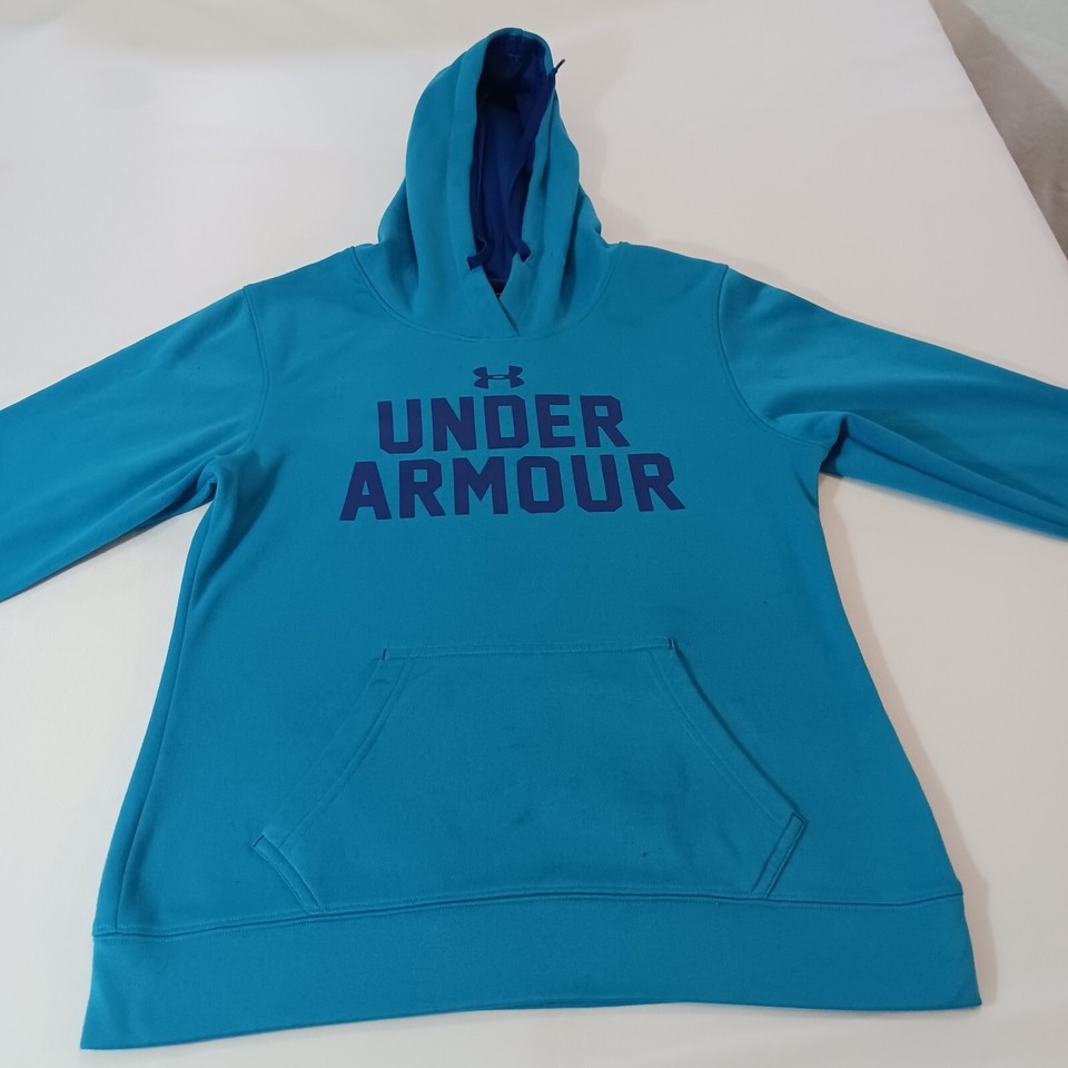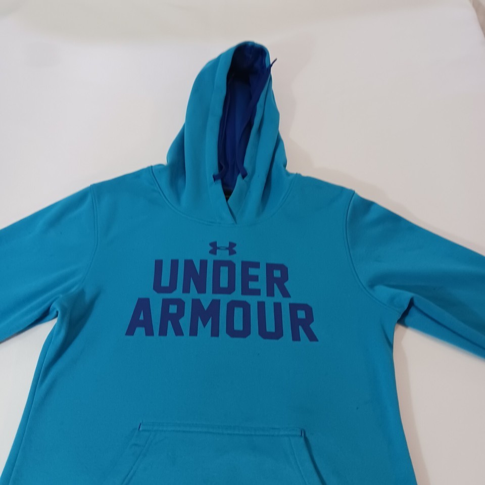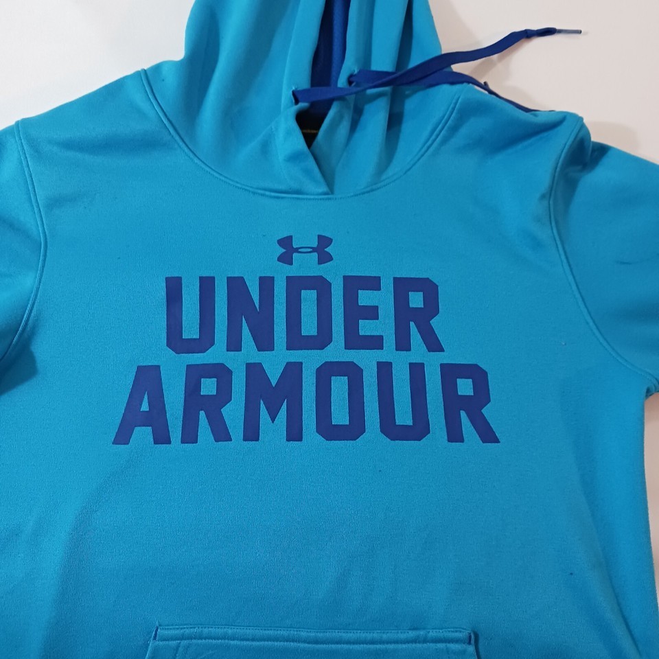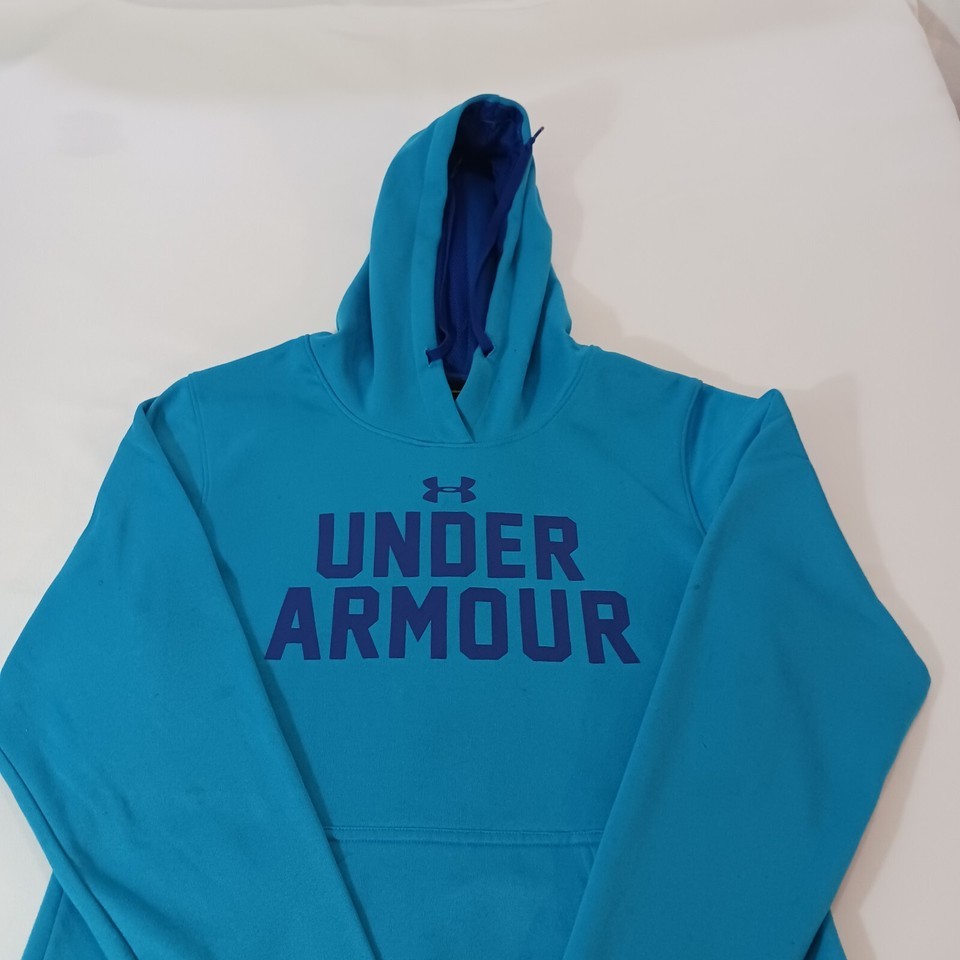 This Under Armour sweatshirt is a must-have for any wardrobe. The blue cotton blend material is comfortable and durable, making it perfect for any occasion. The drawstring closure and hooded design add a touch of style to this pullover sweatshirt, which is suitable for men in size small. The solid pattern and long sleeves make it a versatile addition to any activewear collection. This sweatshirt is not only fashionable but also functional, making it a great choice for anyone who wants to look and feel good.