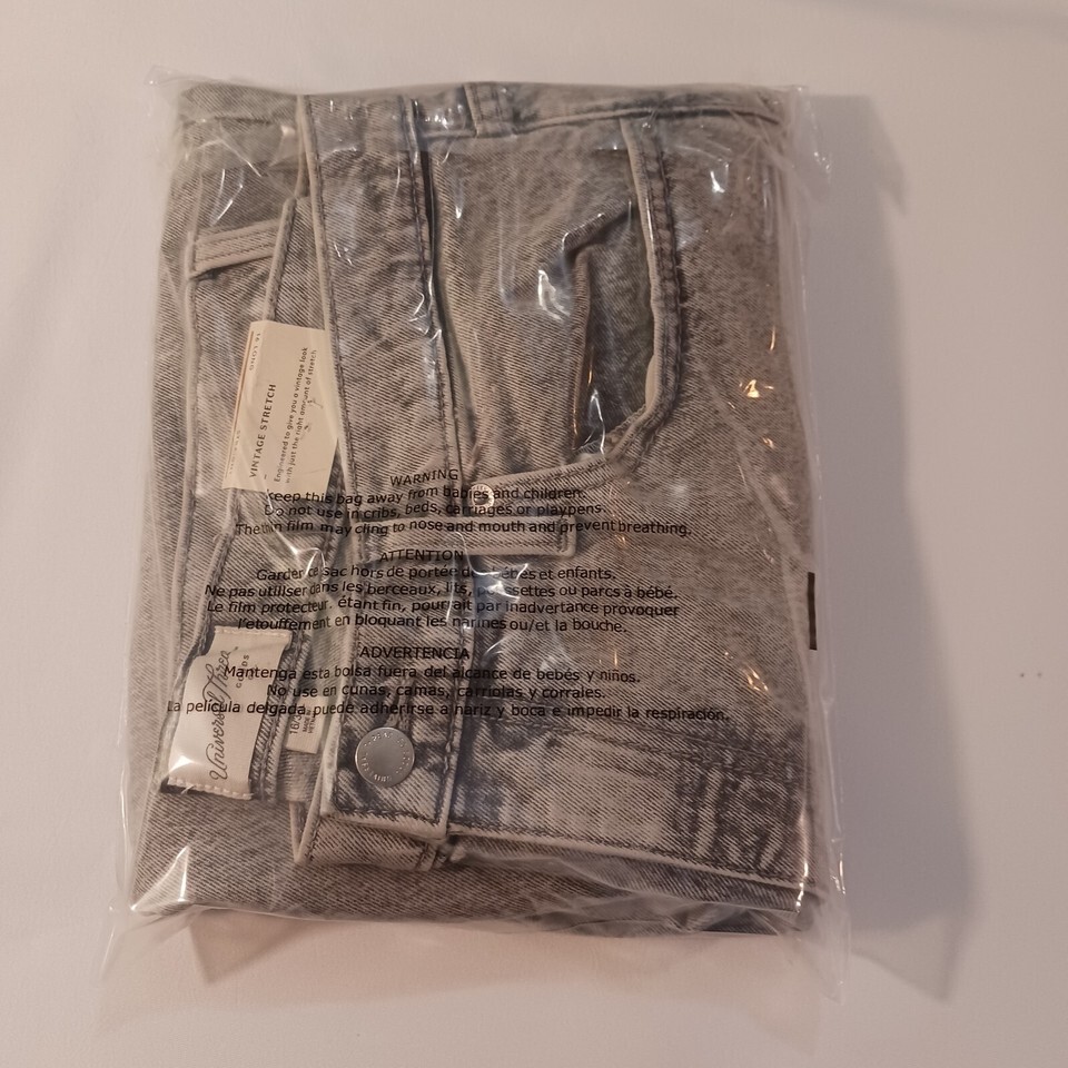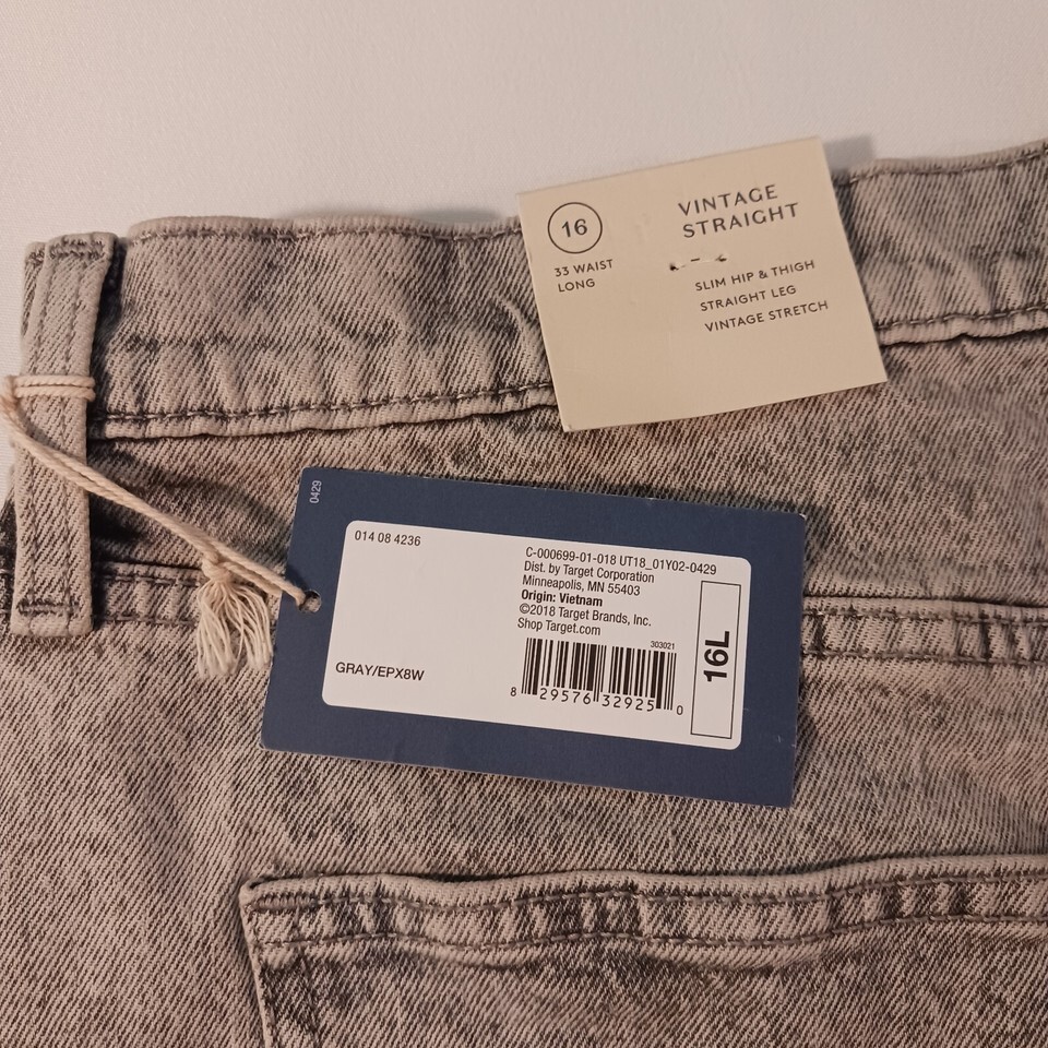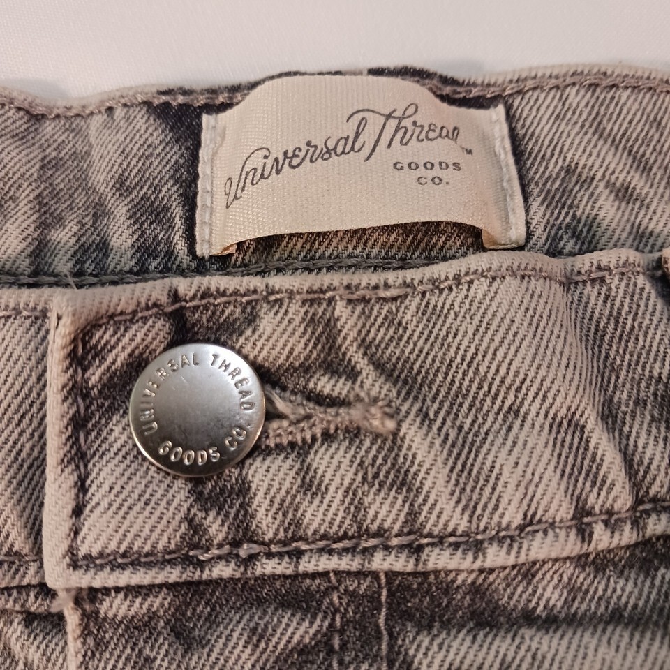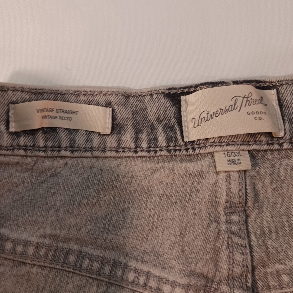 Upgrade your wardrobe with these stylish vintage stretch jeans from Universal Thread. Designed for plus size women, these slim hip and thigh straight leg jeans in faded gray color are perfect for any occasion. With a zip and button closure, these jeans feature spandex and cotton material for a comfortable stretch fit.