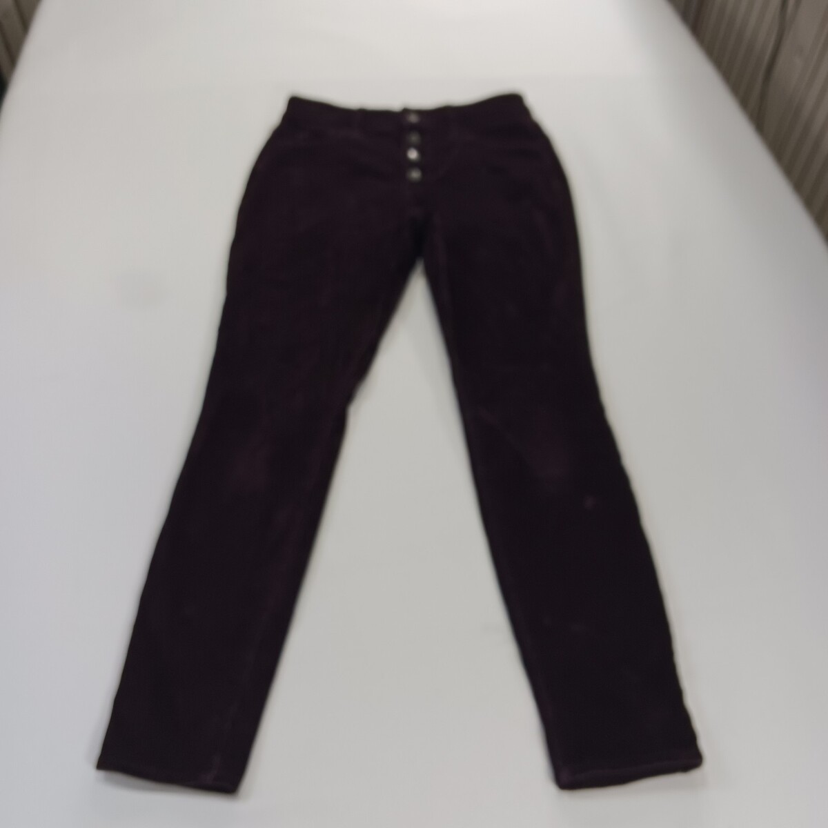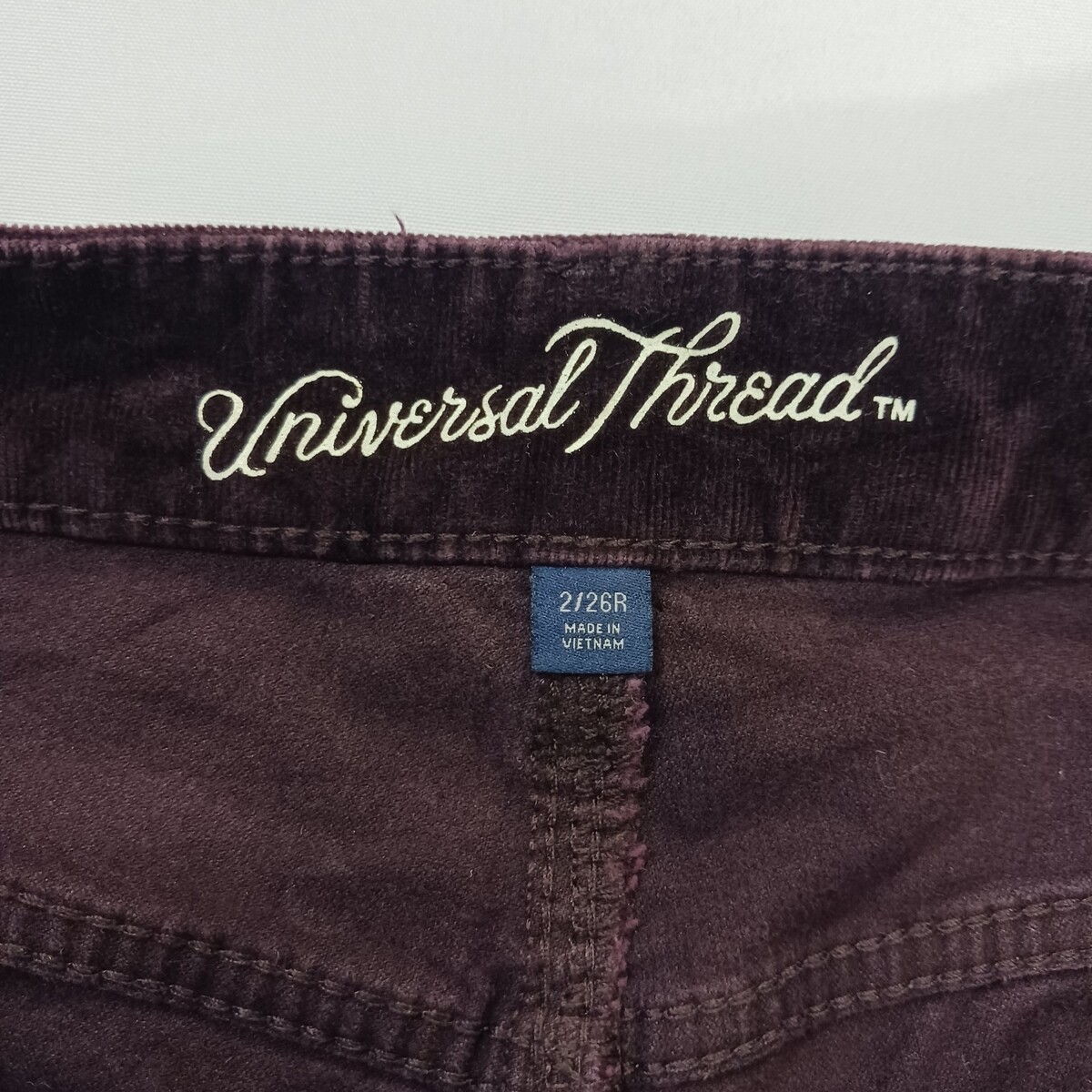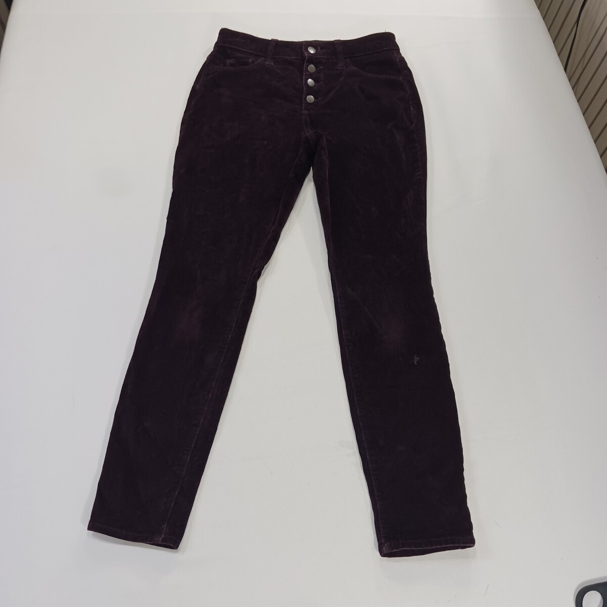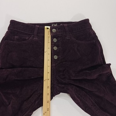 The Universal Thread Women's Wine High-Rise Skinny Corduroy Button Fly Pants in size 2/26R (26×28) offer a stylish and versatile addition to any woman's wardrobe. These pants feature a solid dark burgundy color, a button closure, and a regular fit with a skinny leg style. Made from corduroy fabric, these pants have a waist size of 26 inches and an inseam of 28 inches, making them a perfect fit for a variety of occasions. With the brand's reputation for quality and style, these pants are sure to become a go-to item for any fashion-forward woman.