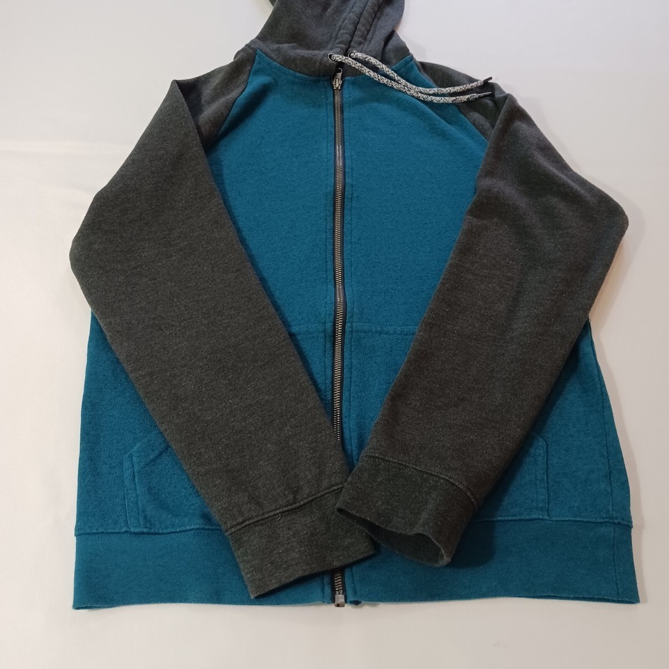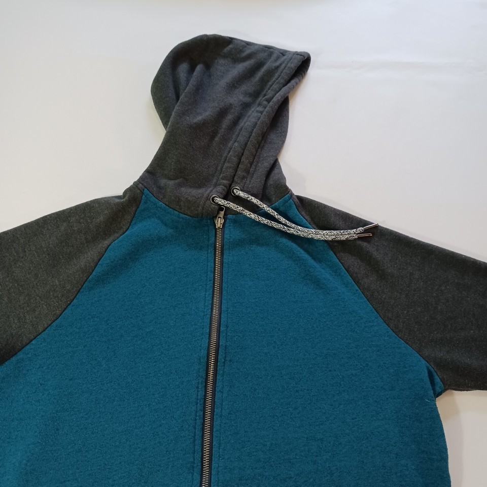Introducing the Urban Pipeline Ultimate Hoodie for men in a stylish teal and gray color combination. This full zip sweatshirt is made from a comfortable blend of polyester and cotton fabric with a sweatshirt texture. It features a hooded design, long sleeves, and a zip closure for easy wear.