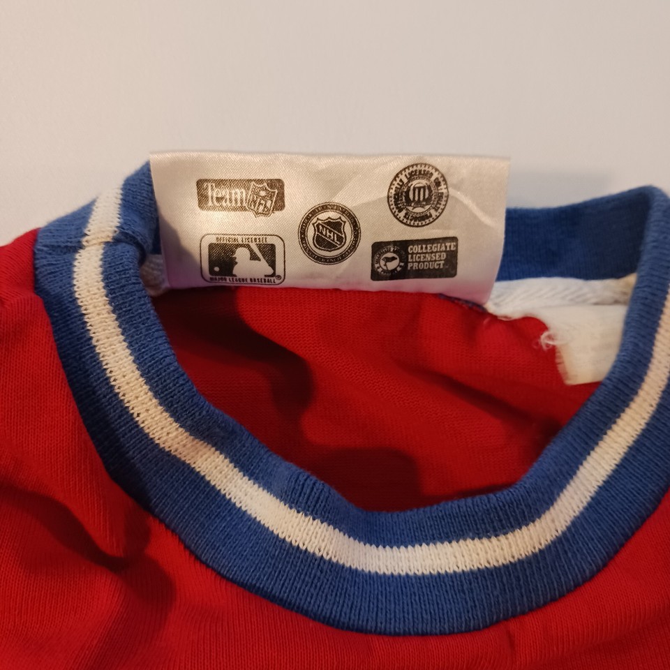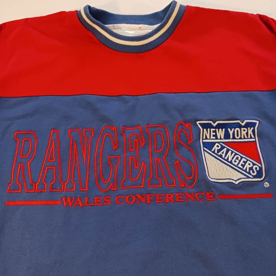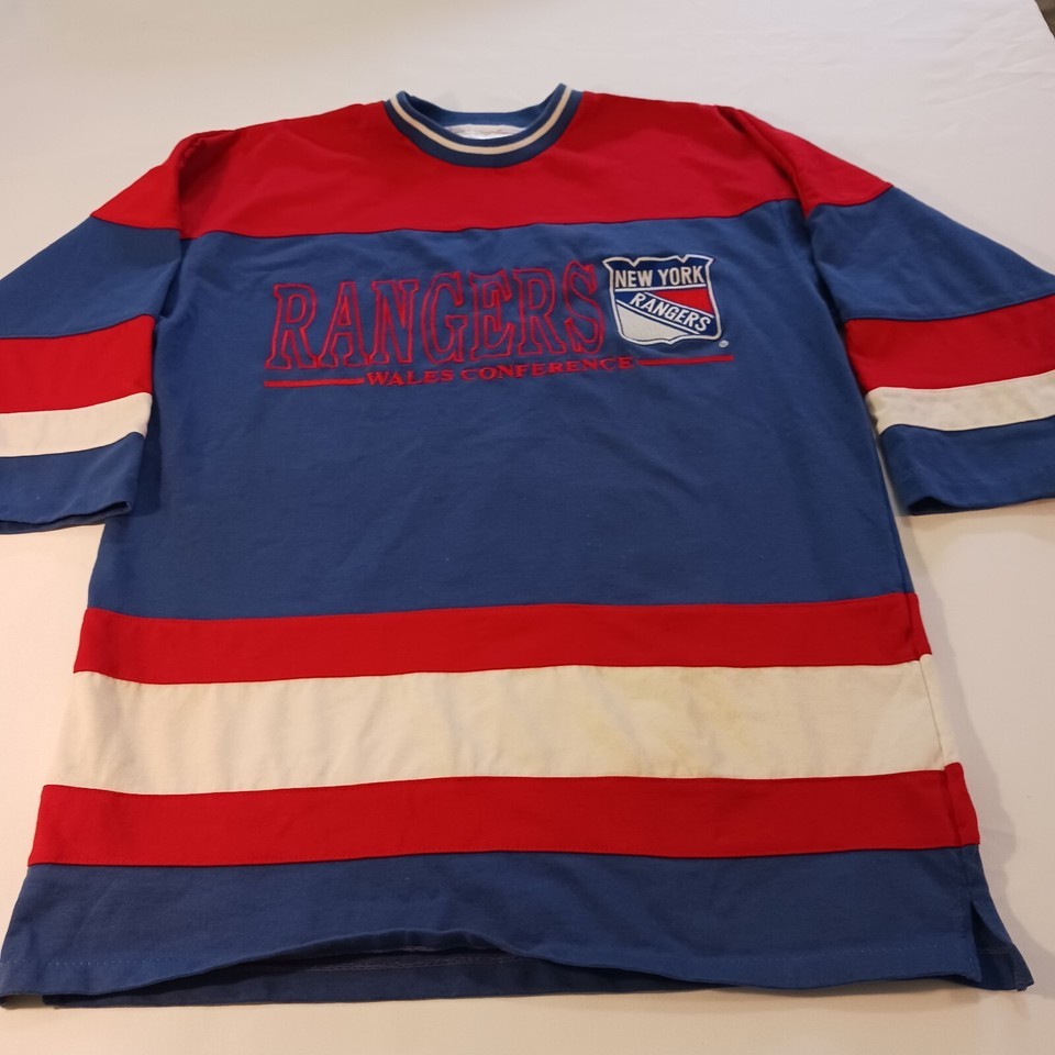 Show off your love for the New York Rangers and the 90s with this vintage baseball shirt by College Concepts. The multicolor shirt features the team's logo and is perfect for any Rangers fan. The shirt is sized as a men's large and is a regular fit. The 90s theme is perfect for any throwback look and is sure to turn heads. Get your hands on this unique shirt today!