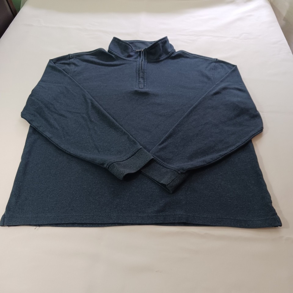 Van Heusen Flex Men Blue Cotton Blend 1/4 Zip Long Sleeve Pullover Sweatshirt XL