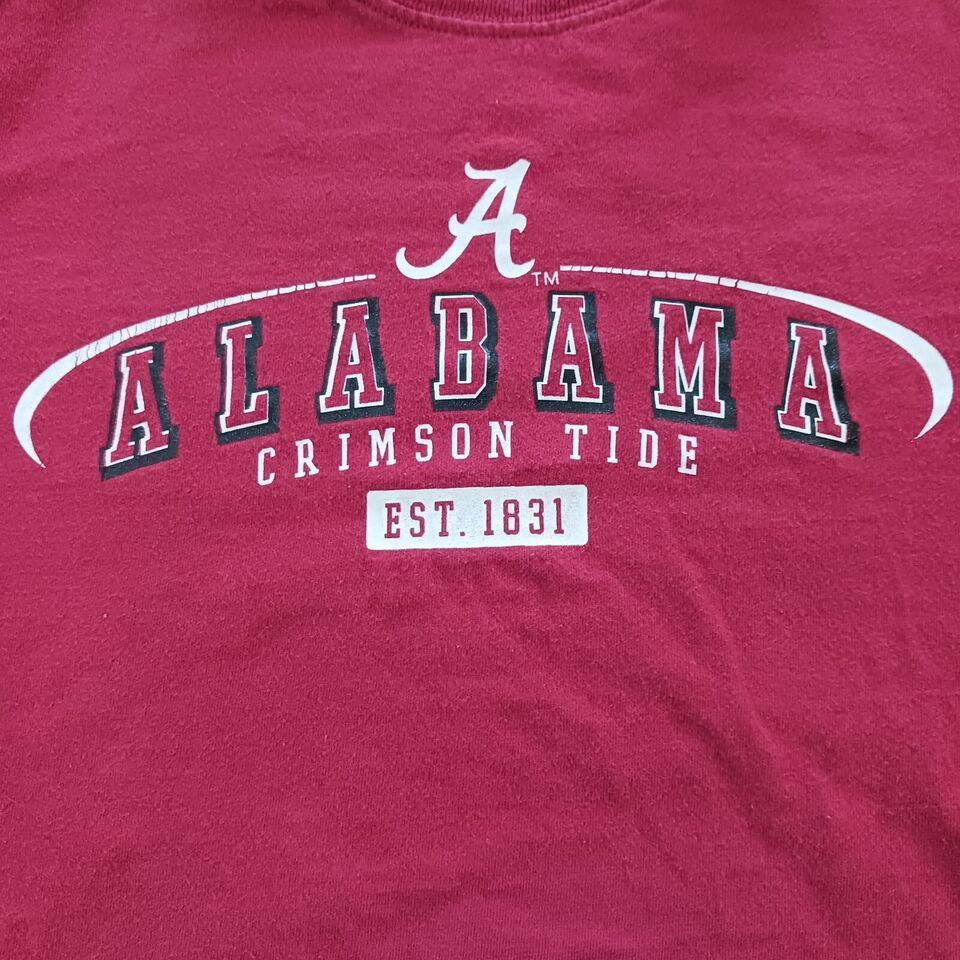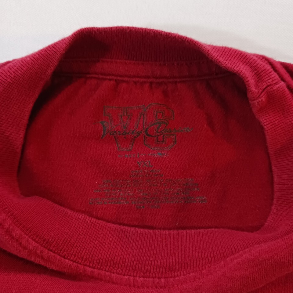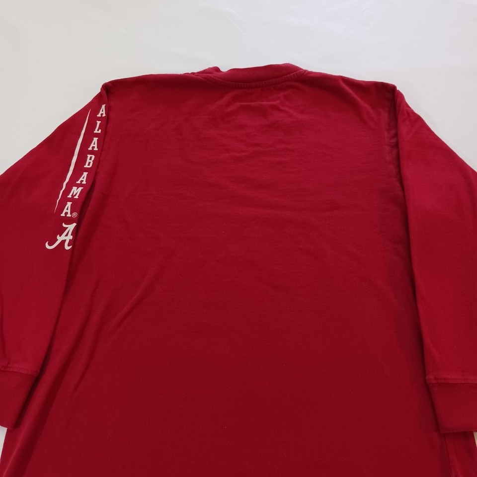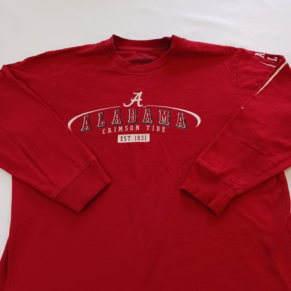 This is a red long sleeve shirt for youth men who support the Alabama Crimson Tide football team. The shirt is made by Varsity Classics and is in used condition. The size is YXL.