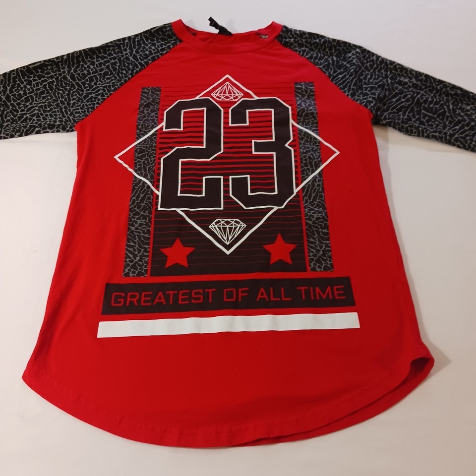 This Vibes #23 Greatest Of All Time Men's Red & Black Cotton Raglan T-Shirt in size M is a must-have for any fashion-forward man. The shirt features a solid pattern with 3/4 sleeves and a crew neck. It comes in a striking red and black color combination that is sure to turn heads.