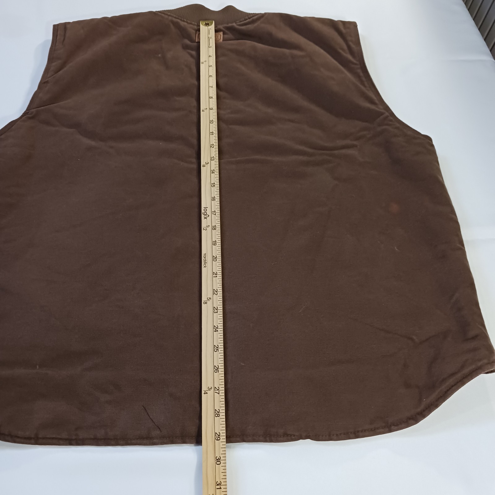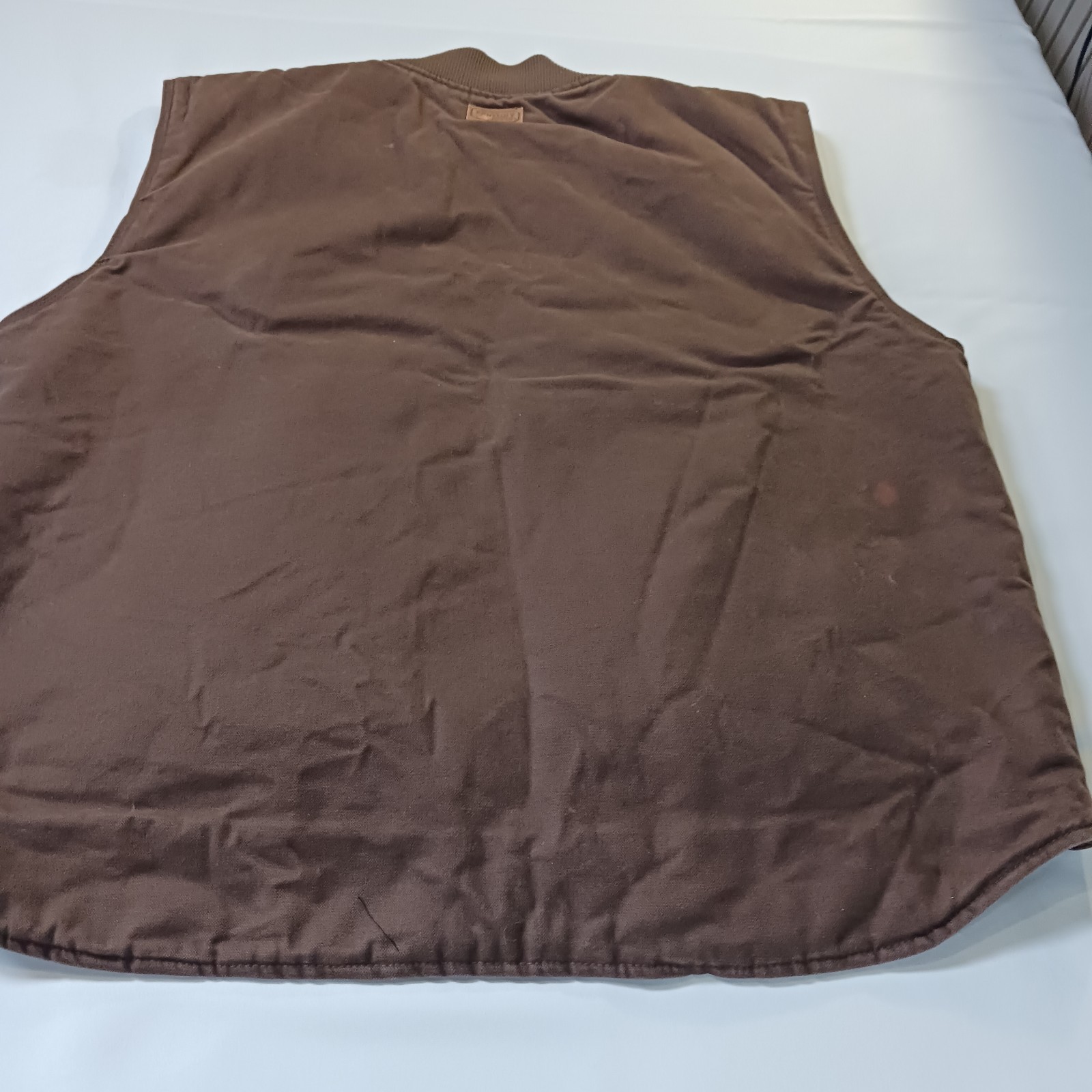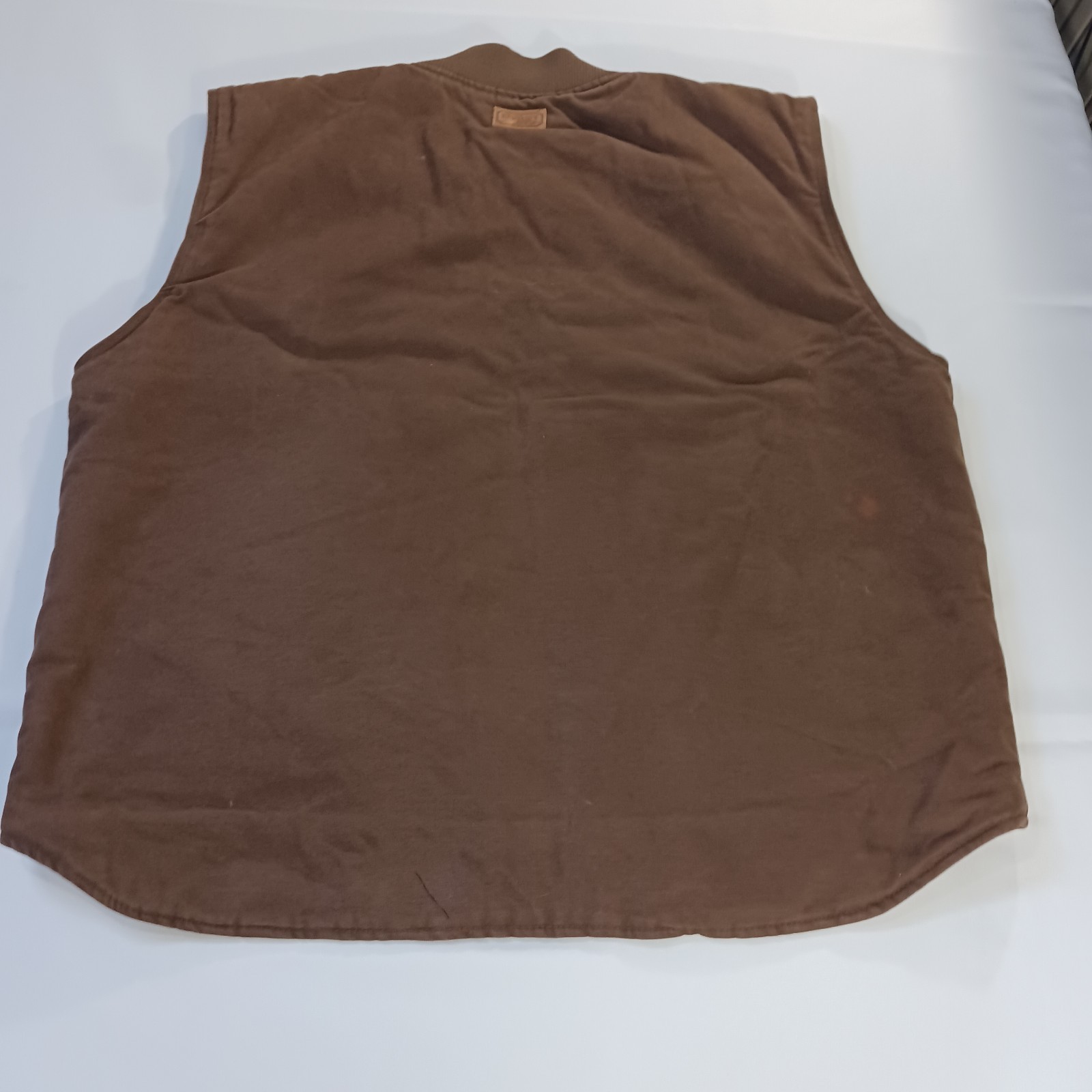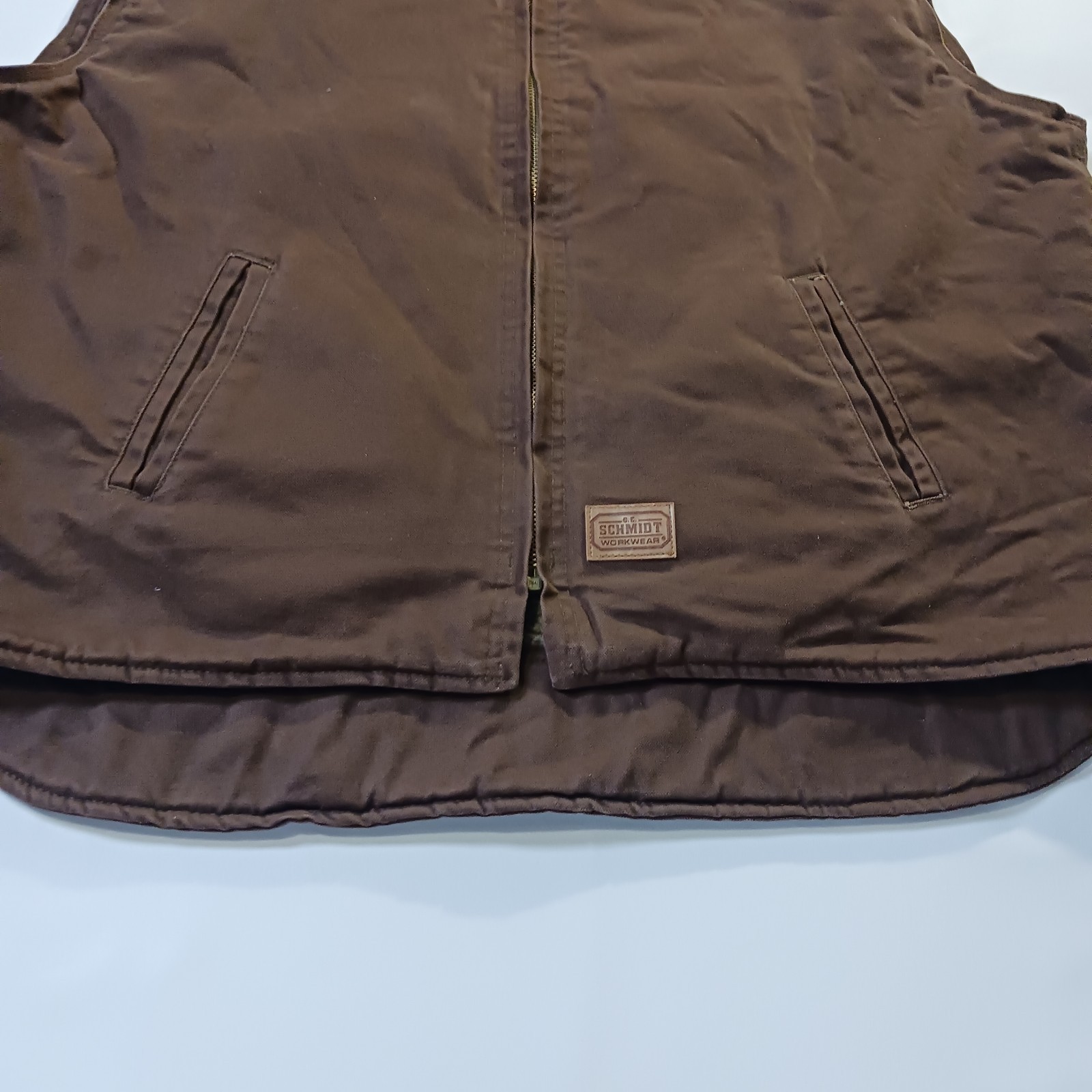 The Vintage C.E. Schmidt Workwear TV53BB Men's 2XLR Brown Cotton Blend Full Zip Vest is a classic piece of workwear with a twist of retro charm. Made from a durable cotton blend with a canvas fabric type, this vest features a spread collar, zip closure, and lined interior for added warmth. Perfect for outdoor activities like hunting, this bomber jacket style vest in a solid brown color is a versatile and stylish addition to any man's wardrobe. Machine washable and with a chest size of 56 inches, this vest is a timeless piece for the winter, fall, and spring seasons.