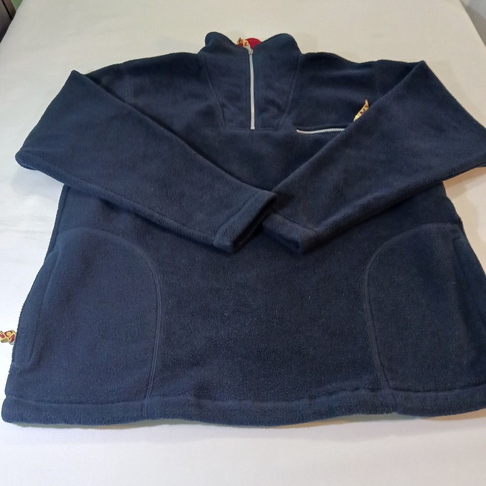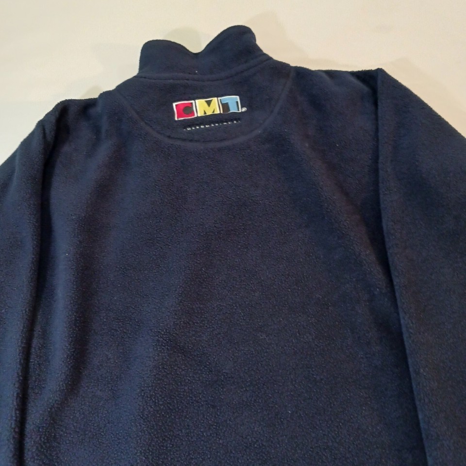 The Vintage CMT International Country Music Men's Blue Fleece Jacket Pullover is a stylish and warm overcoat for men. Made of polyester, it features a solid pattern and a zip closure. The jacket is designed with a music theme and is perfect for fans of country music. The jacket is available in XL size and is suitable for regular size type.