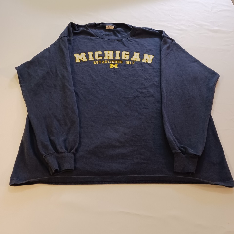 Vintage Delta Pro Weight University Of Michigan Men's Blue T-Shirt Long Sleeve L