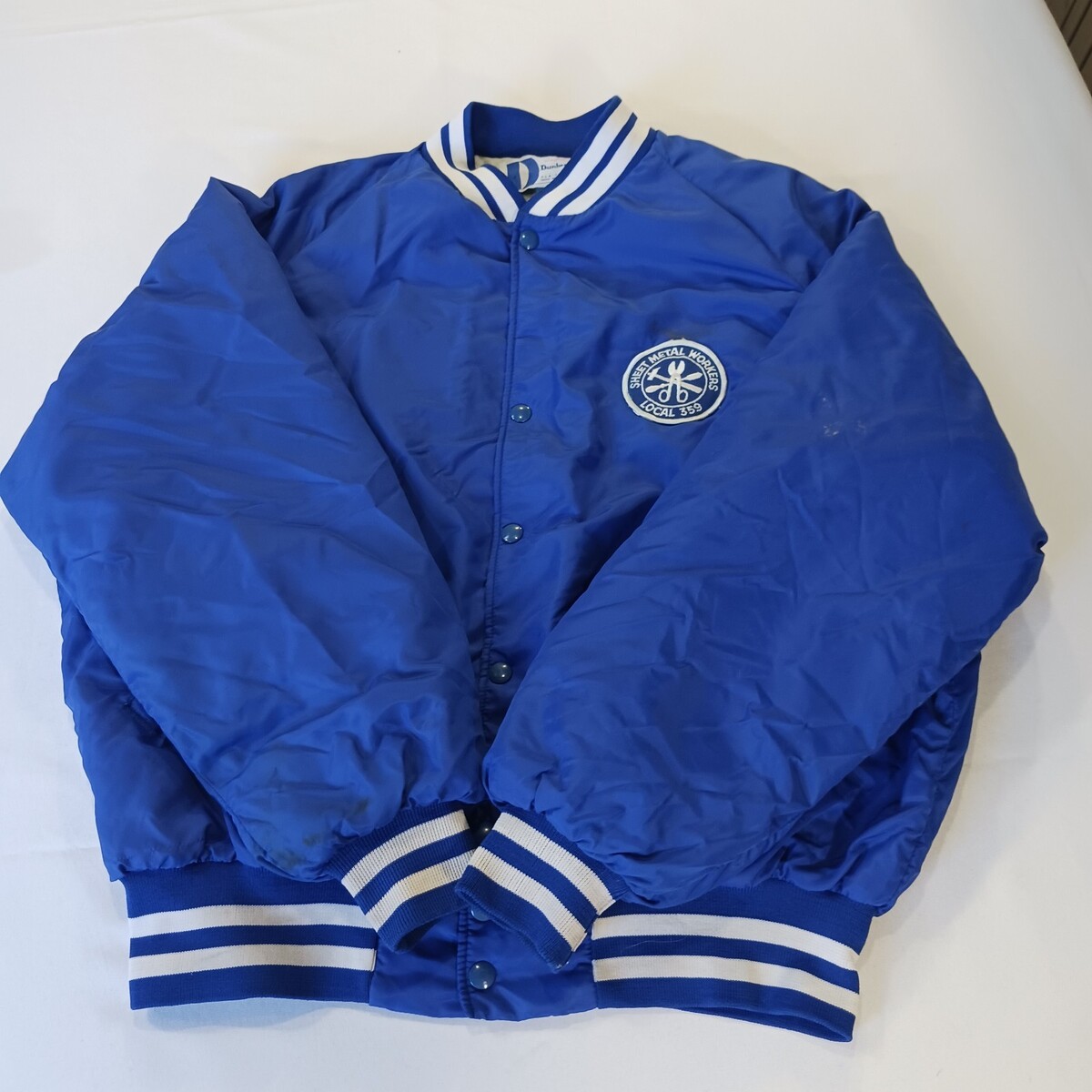 Vintage Dunbrooke Pla-Jac Jacket Men's XL Blue Satin Snap Front Made USA 90s