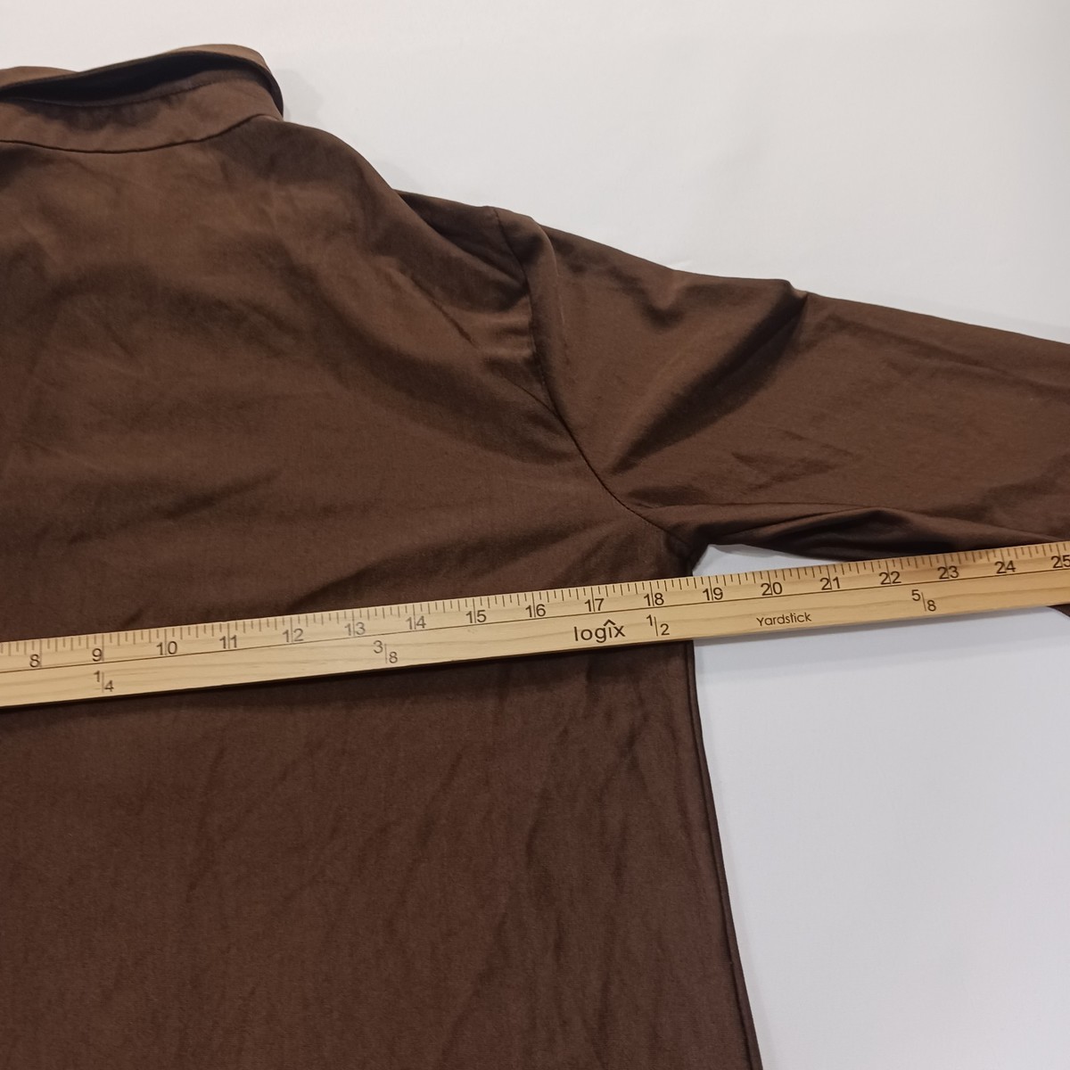 • Vintage LeeMar Women's Brown Qiana Nylon 1/4 Buttons Collar Blouse Chest 37" image 13