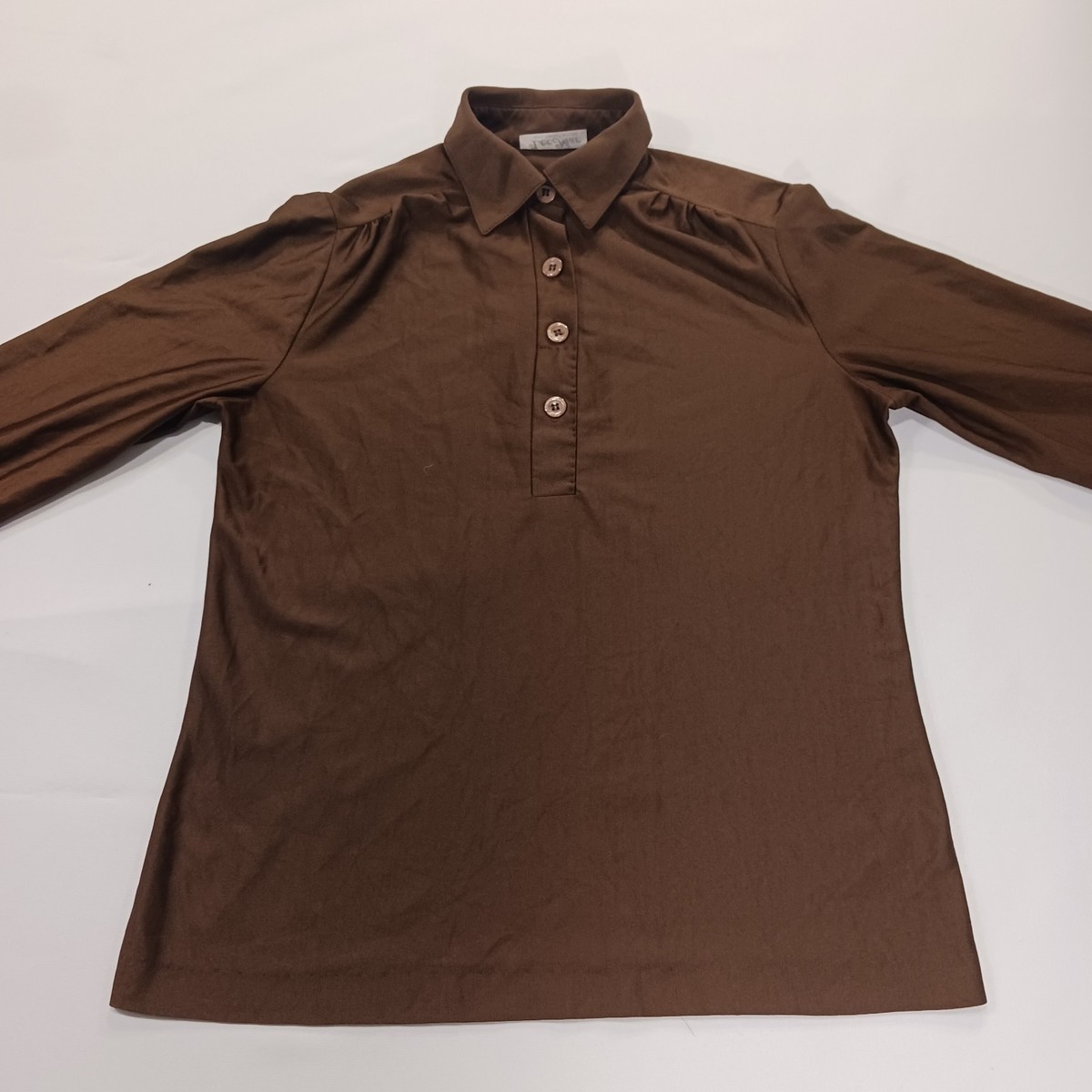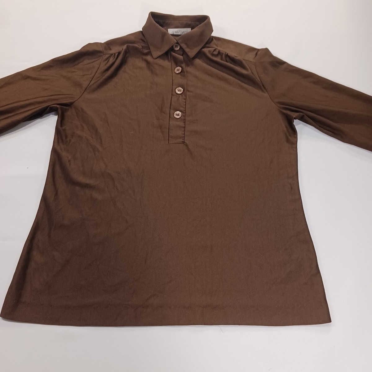 • Vintage LeeMar Women's Brown Qiana Nylon 1/4 Buttons Collar Blouse Chest 37" image 1