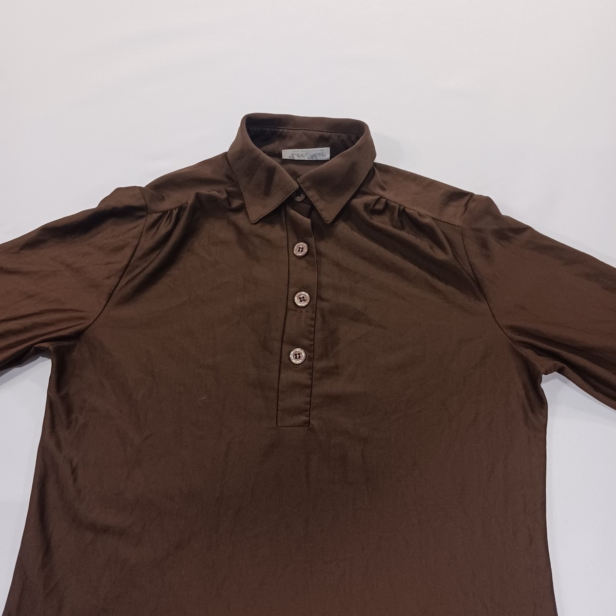 • Vintage LeeMar Women's Brown Qiana Nylon 1/4 Buttons Collar Blouse Chest 37" image 4