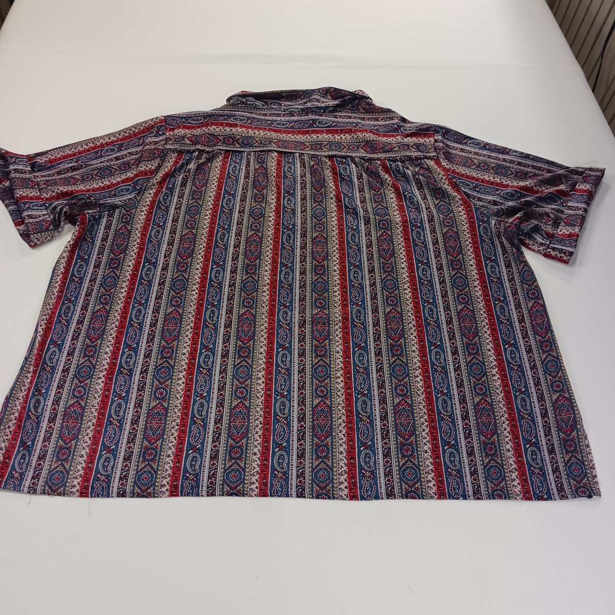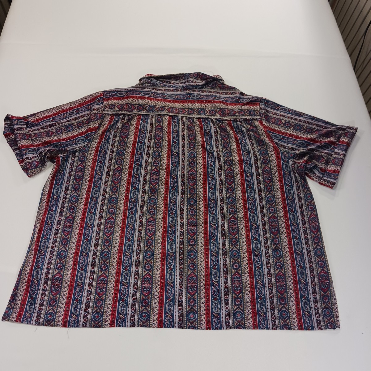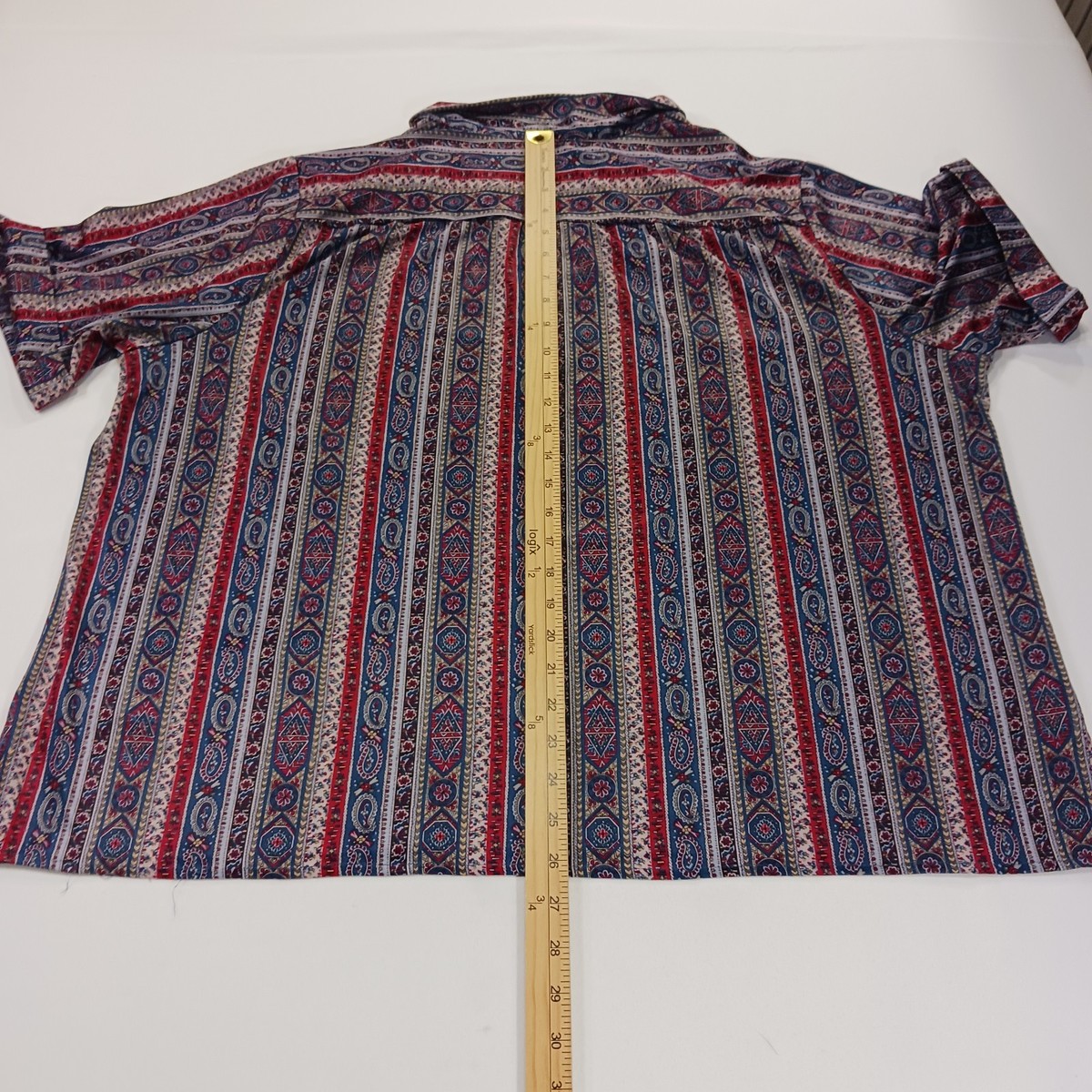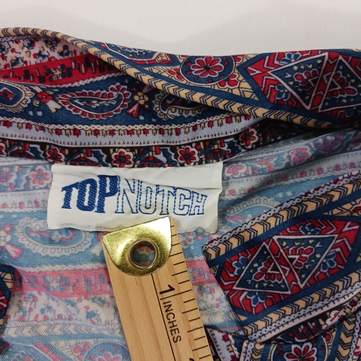This Vintage Paisley Blouse by Top Notch is a stylish and versatile addition to any woman's wardrobe. Featuring a classic collared neckline, long sleeves, and a pullover closure, this shirt is perfect for both casual and party occasions. The beautiful paisley pattern in a vibrant multicolor design adds a touch of retro charm to any outfit. Made from lightweight polyester fabric, this blouse is easy to care for and perfect for all seasons. With a vintage flair and a size that fits a chest measuring 54 inches, this Top Notch shirt offers a timeless style for any fashion-forward woman.