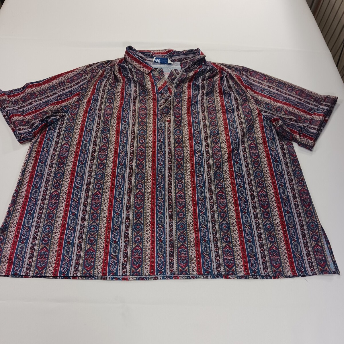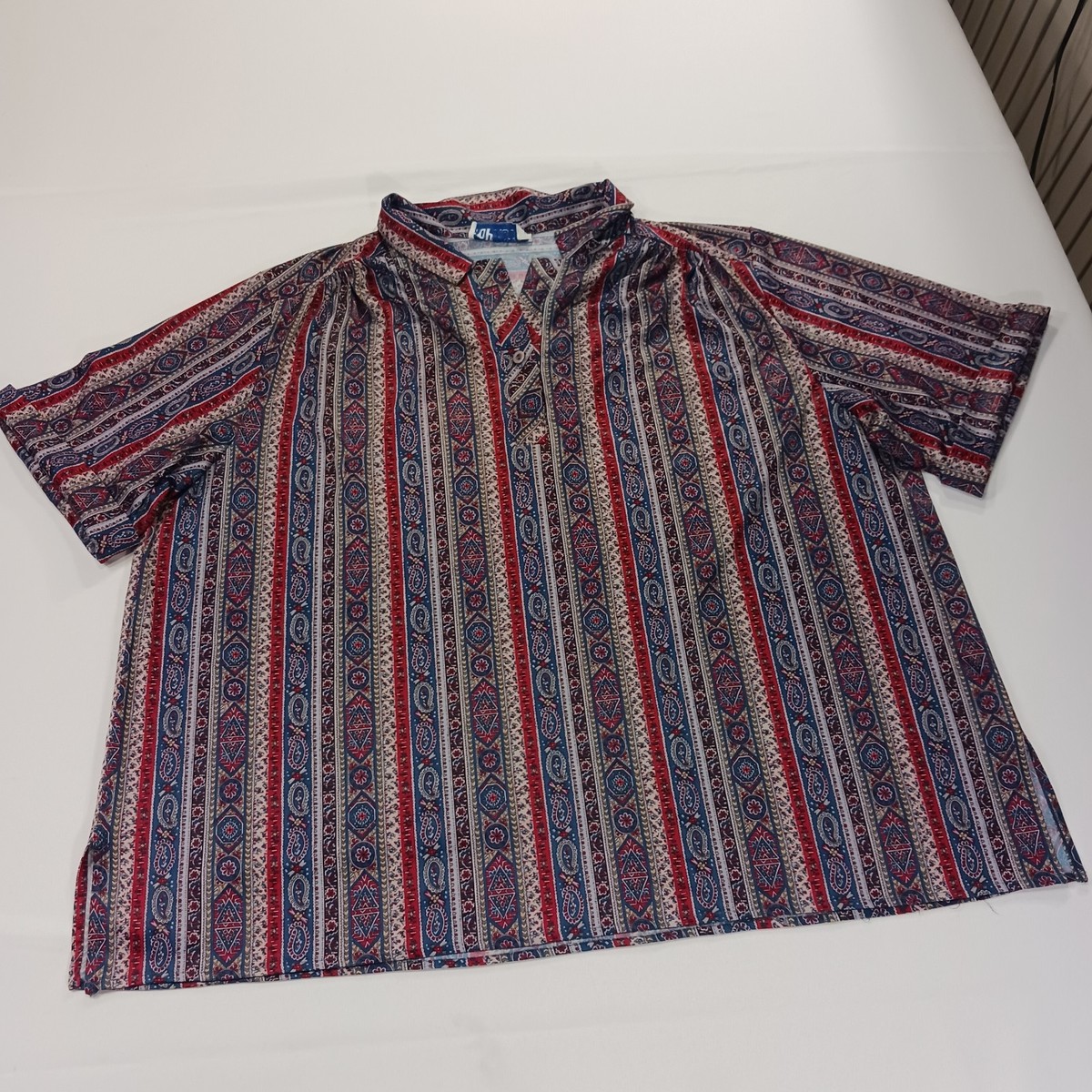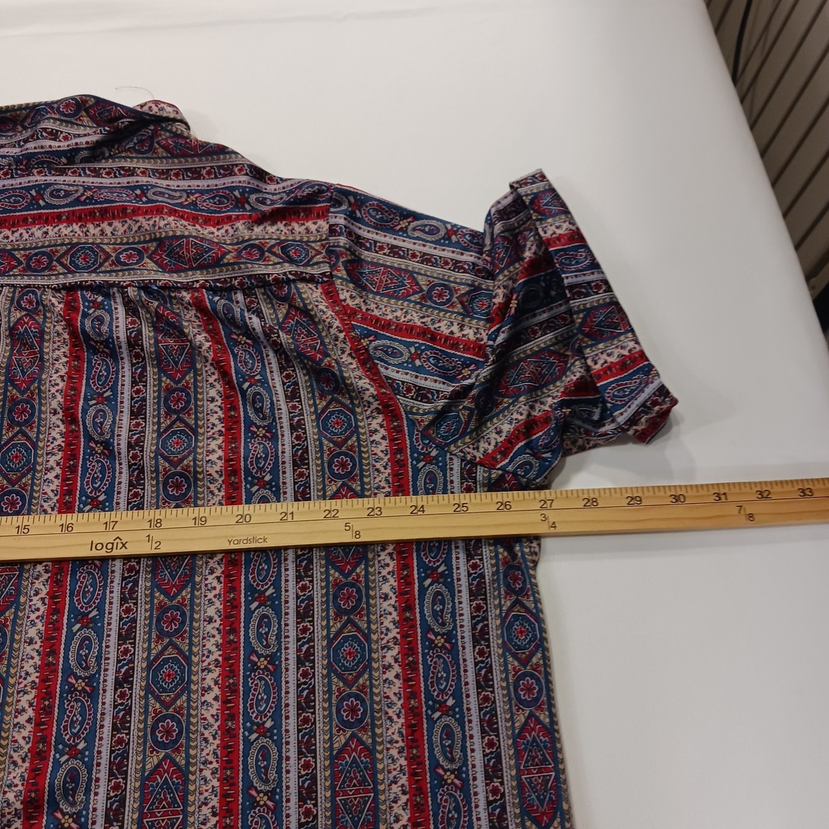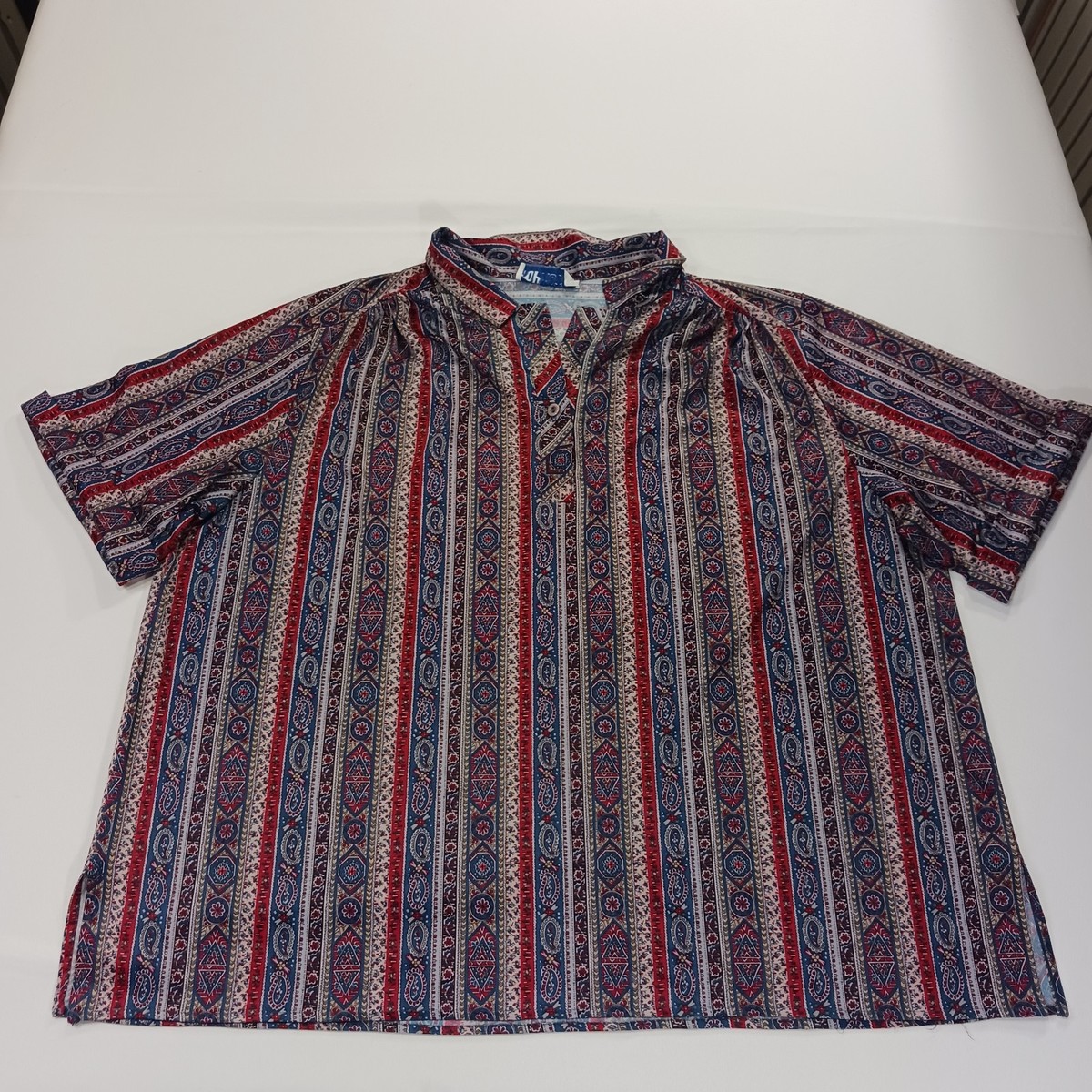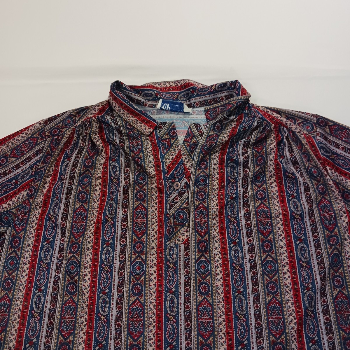 This Vintage Paisley Blouse by Top Notch is a stylish and versatile addition to any woman's wardrobe. Featuring a classic collared neckline, long sleeves, and a pullover closure, this shirt is perfect for both casual and party occasions. The beautiful paisley pattern in a vibrant multicolor design adds a touch of retro charm to any outfit. Made from lightweight polyester fabric, this blouse is easy to care for and perfect for all seasons. With a vintage flair and a size that fits a chest measuring 54 inches, this Top Notch shirt offers a timeless style for any fashion-forward woman.