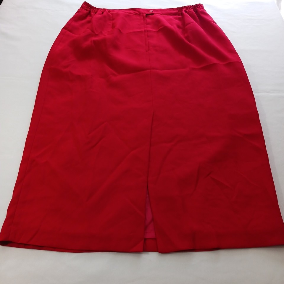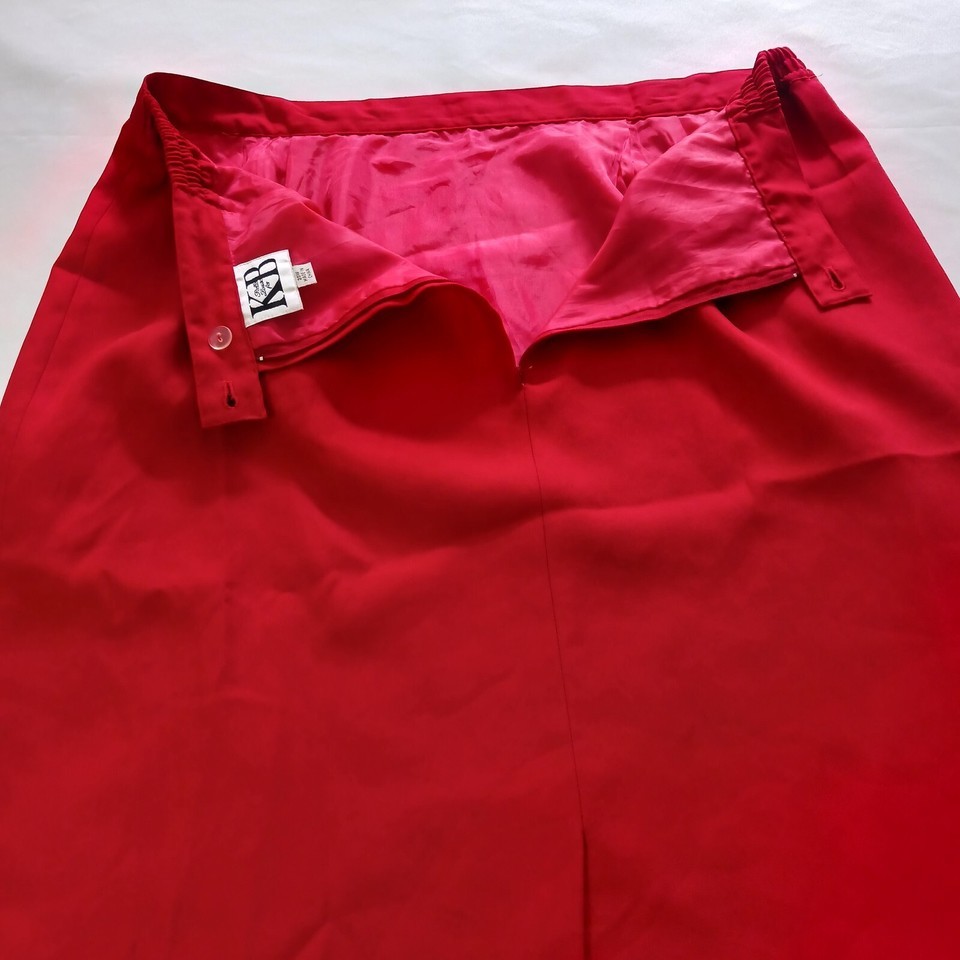 Elevate your wardrobe with this stunning vintage red maxi pencil skirt from Stella Louise for KB. This skirt boasts a solid pattern and is made of 100% polyester material, ensuring a comfortable and durable wear. The skirt features a zip closure and slit for easy movement, making it perfect for any occasion.