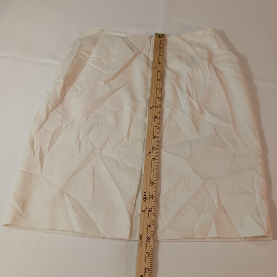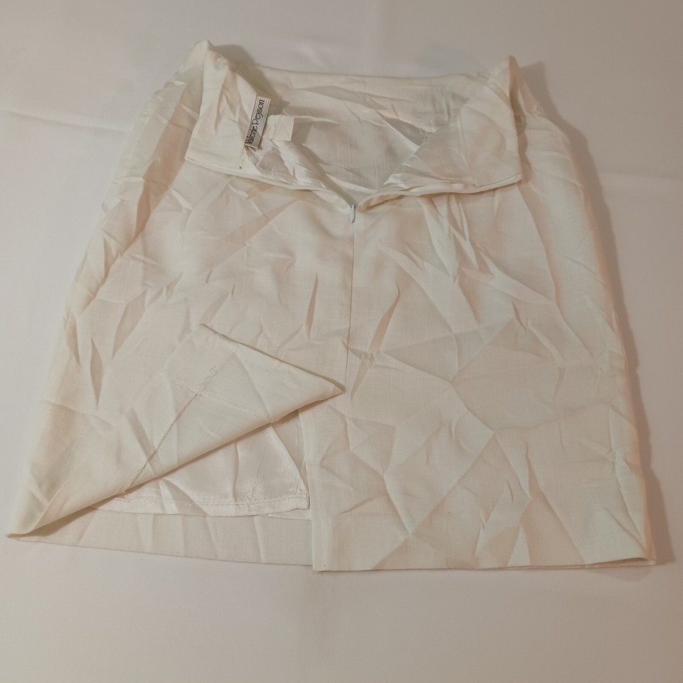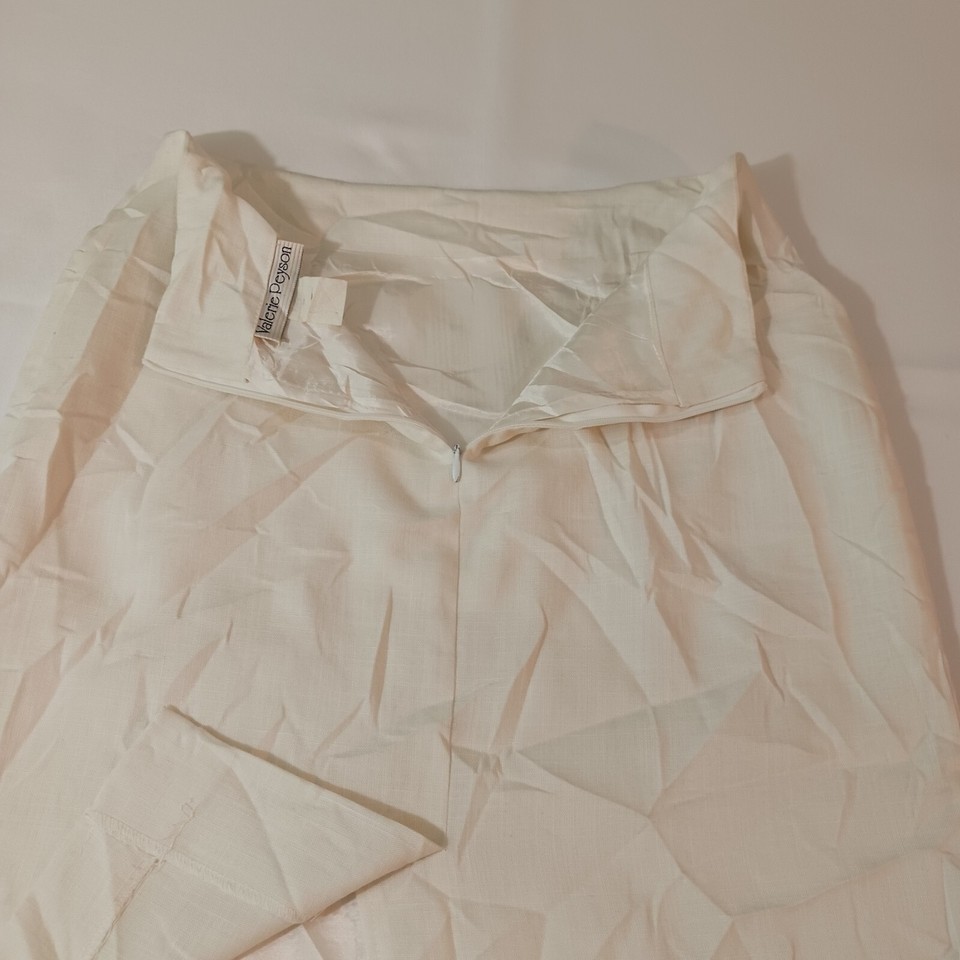 This vintage Valerie Peyson women's white skirt features a straight and pencil style with a 20-inch length. It has a zip closure and a slit for added flair. The skirt is designed for regular sizing, with a measured waist of 28 inches, making it a classic and versatile piece for any wardrobe.