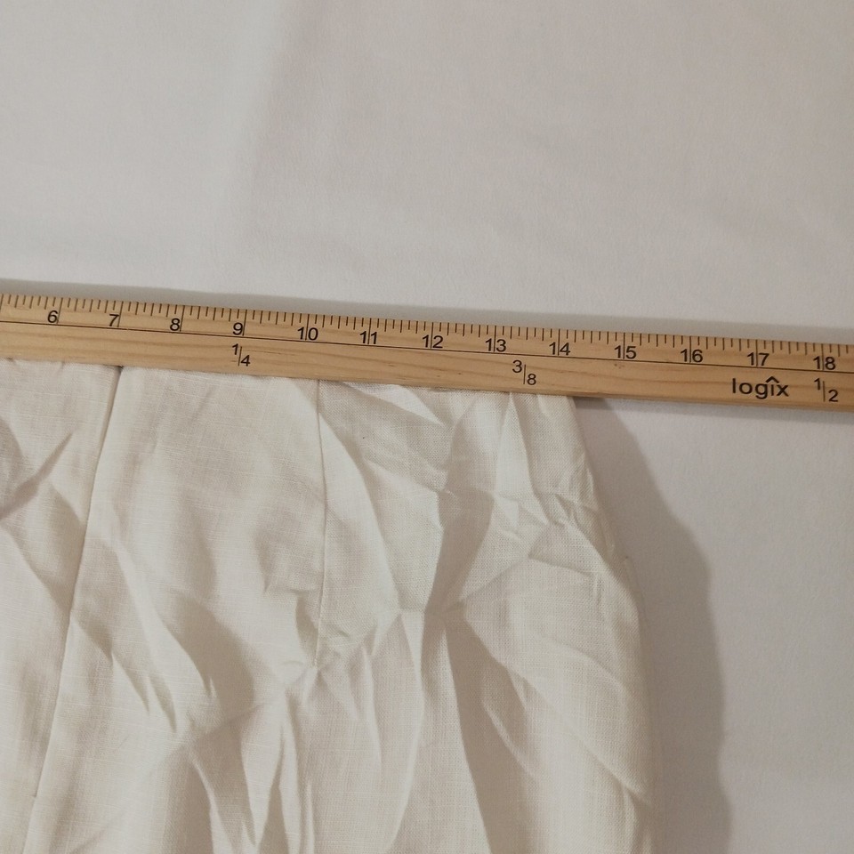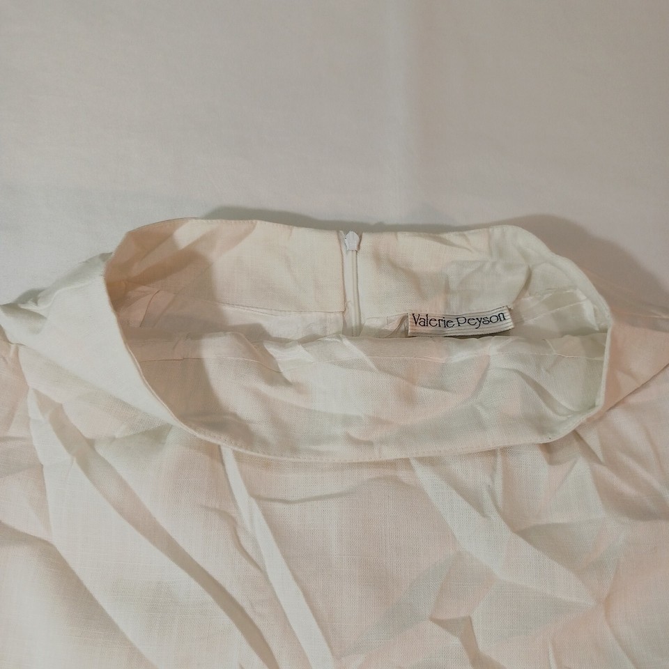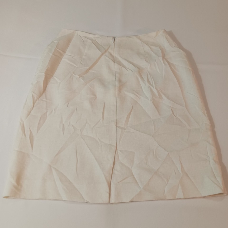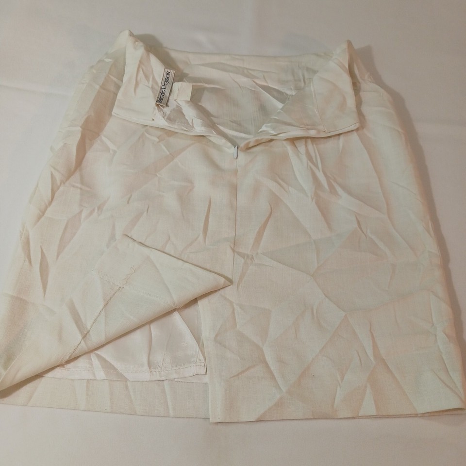 This vintage Valerie Peyson women's white skirt features a straight and pencil style with a 20-inch length. It has a zip closure and a slit for added flair. The skirt is designed for regular sizing, with a measured waist of 28 inches, making it a classic and versatile piece for any wardrobe.