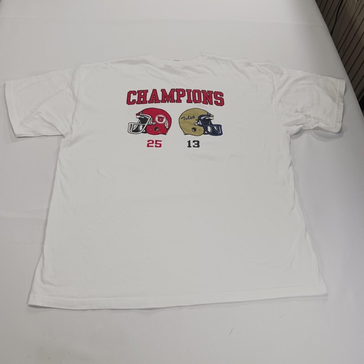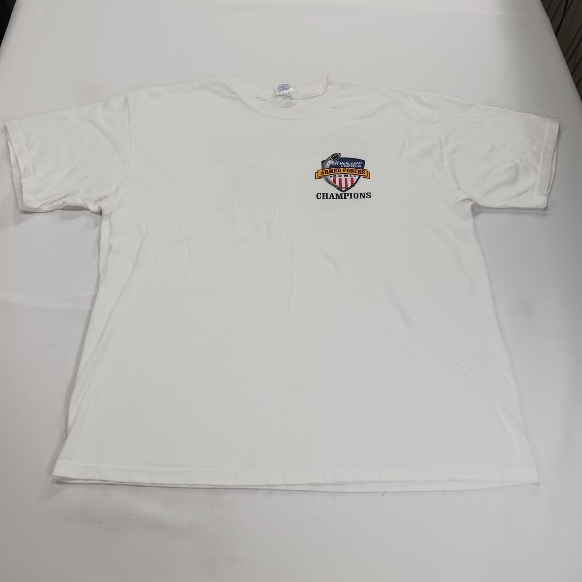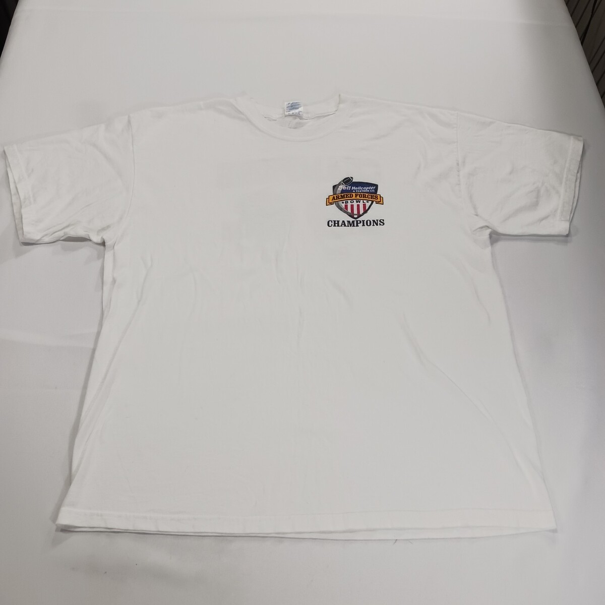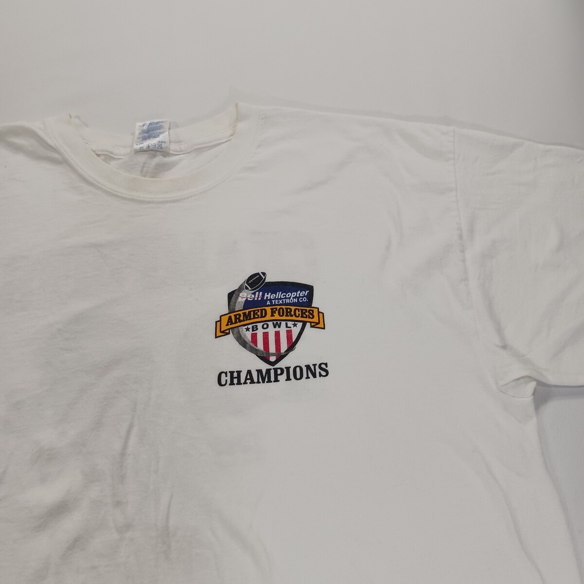 This vintage Gildan Ultra Cotton T-Shirt in men's XL features a white graphic print with a Crew Neck and short sleeves. Made of cotton, this shirt is part of the Gildan Ultra Cotton product line and celebrates the Armed Forces Bowl Champions with a unique Wolverine character design. Perfect for sports enthusiasts, this shirt is a patriotic and stylish addition to any collection of men's clothing. Made in Nicaragua, this T-Shirt is a quality item from a trusted brand.