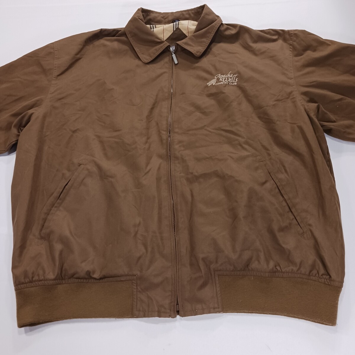 The Winner Mate Apache Wells Men's Brown Windbreaker Bomber Jacket in size 2XL is a stylish and functional outerwear piece for men. Made from a durable cotton blend outer shell and lined with a comfortable cotton blend lining, this jacket features a full zip closure for easy wear. With a solid brown color and a bomber jacket style, it is perfect for activities such as walking, golf, or hiking, providing both warmth and protection from the elements. The jacket is designed for regular fit and has a chest size of 56 inches, making it a versatile and reliable choice for everyday wear.
