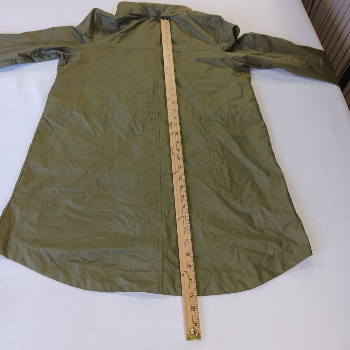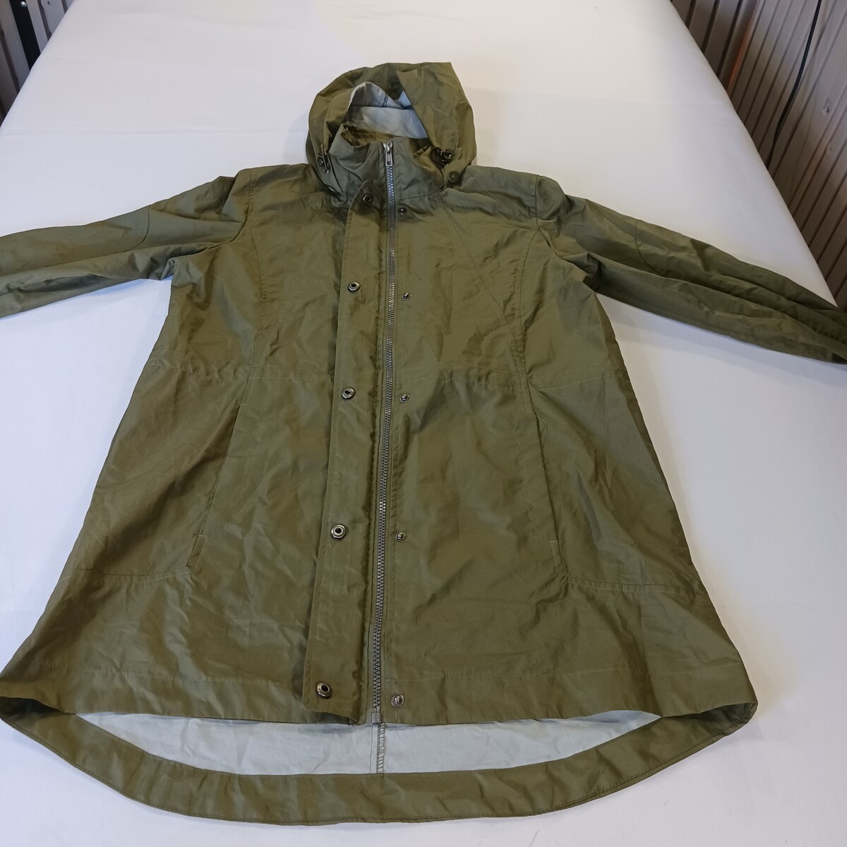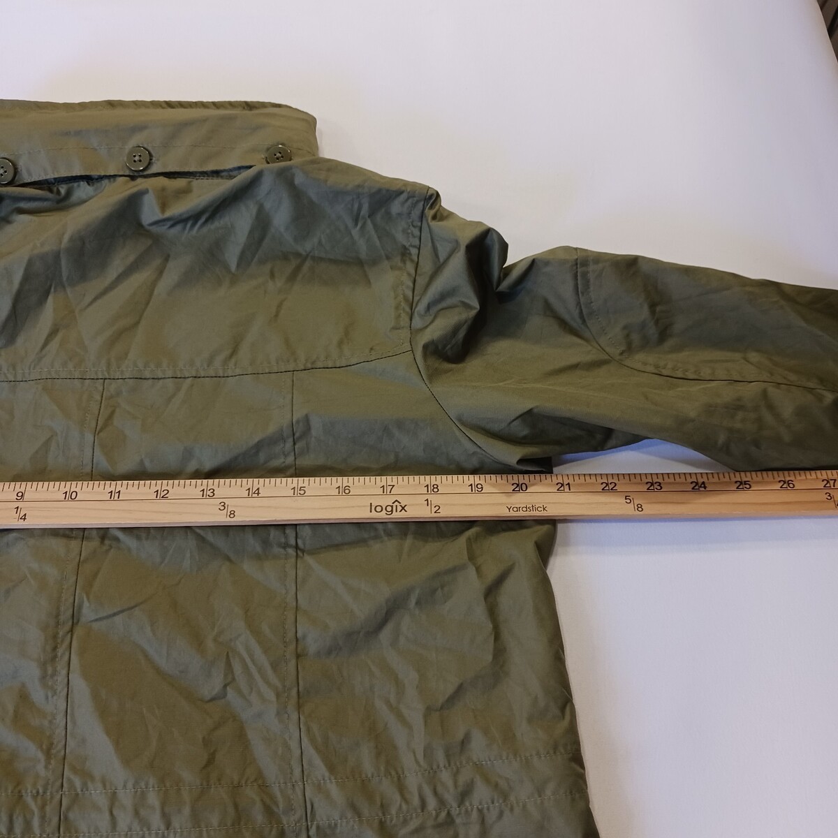The Woolrich HLJ0153S Women's Small Green Lightweight Hooded Rain Jacket is a versatile and practical outerwear option for women. Made of polyester with a softshell fabric type, this jacket features a solid green color with a hood and long sleeves, making it suitable for various occasions including travel, casual wear, work, and business meetings. With a zipper and snap closure, this 33-inch jacket is machine washable and designed for a regular fit. The Woolrich brand adds a touch of classic style to this functional and lightweight jacket, perfect for the fall and spring seasons.