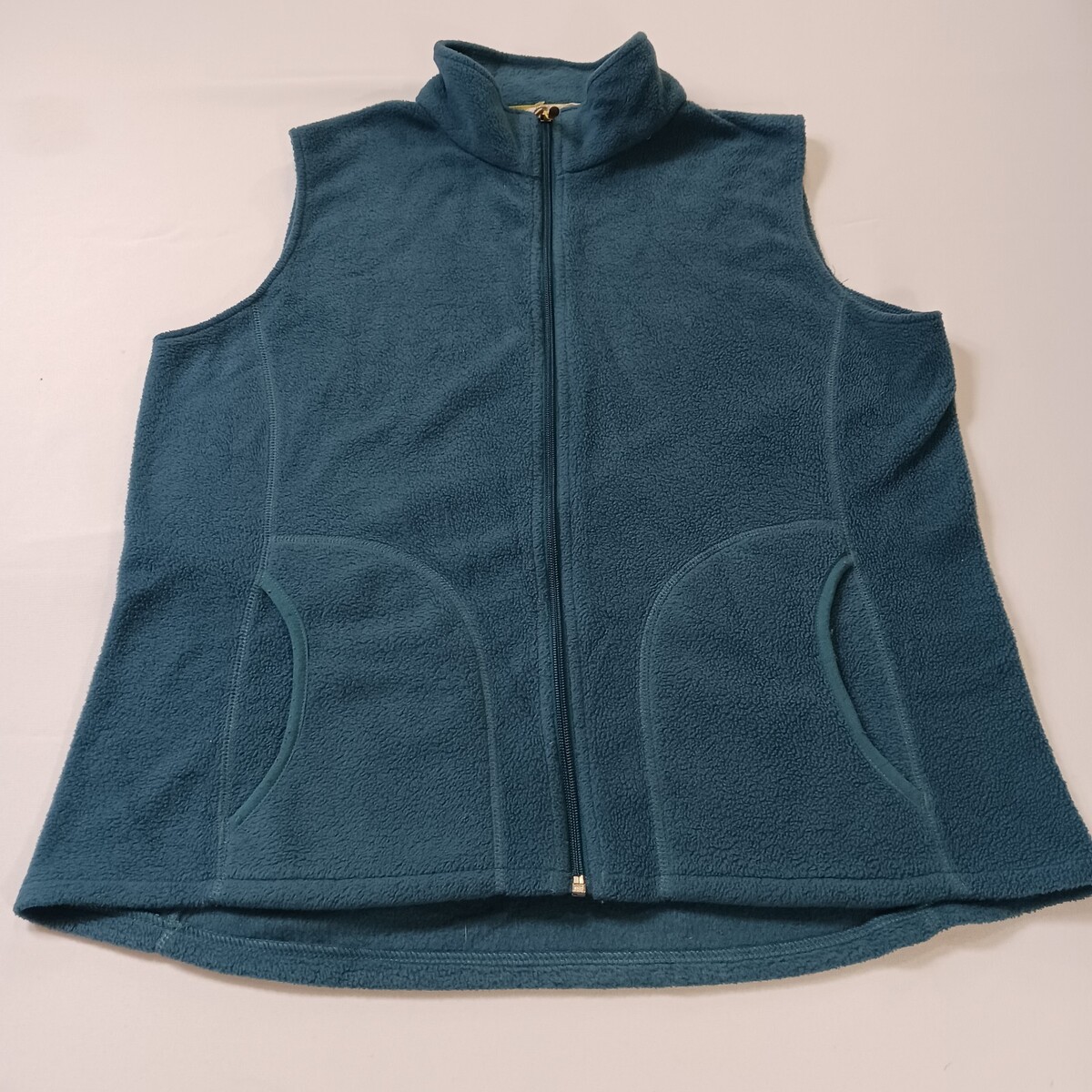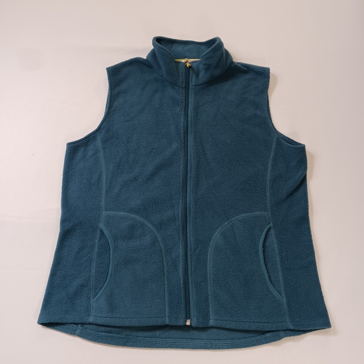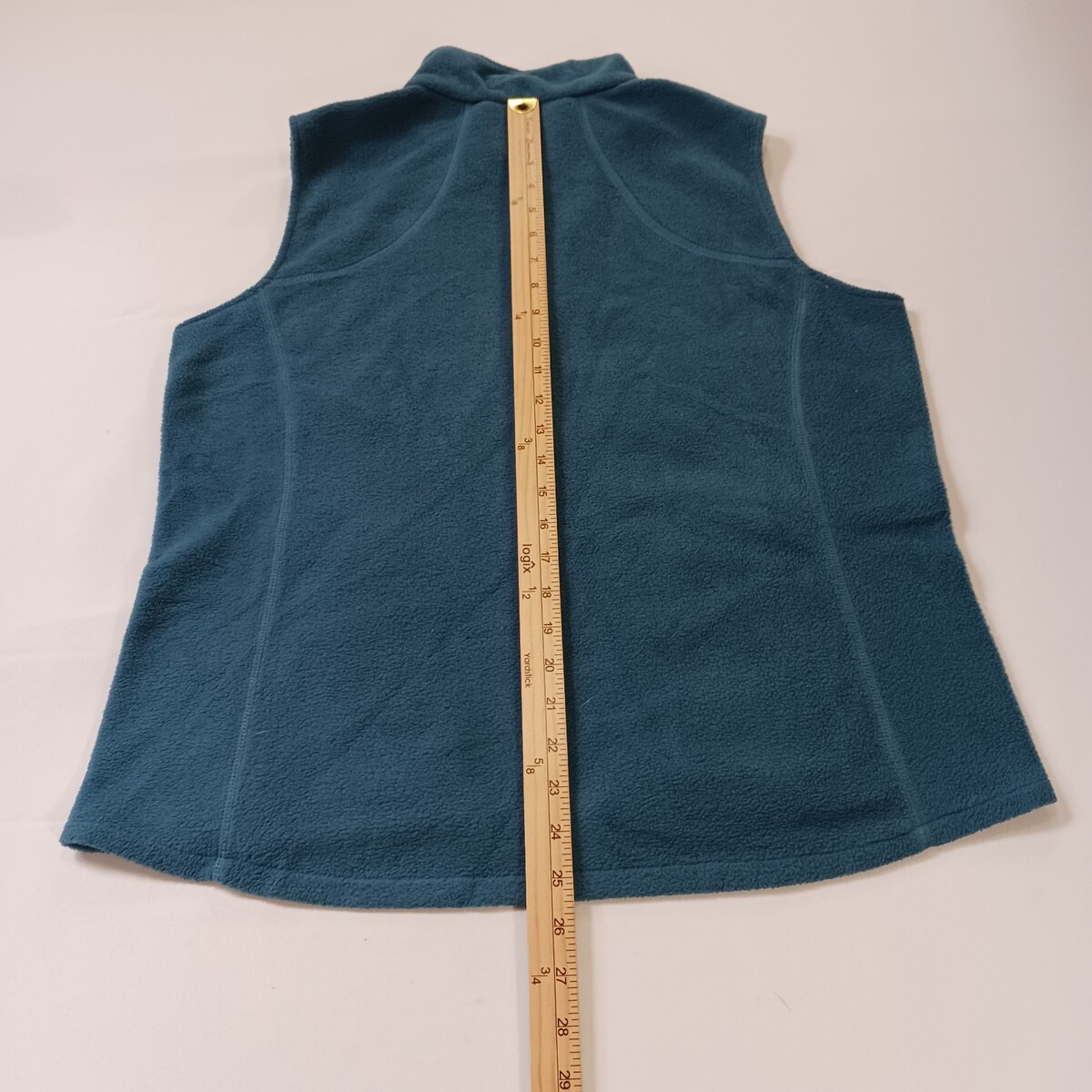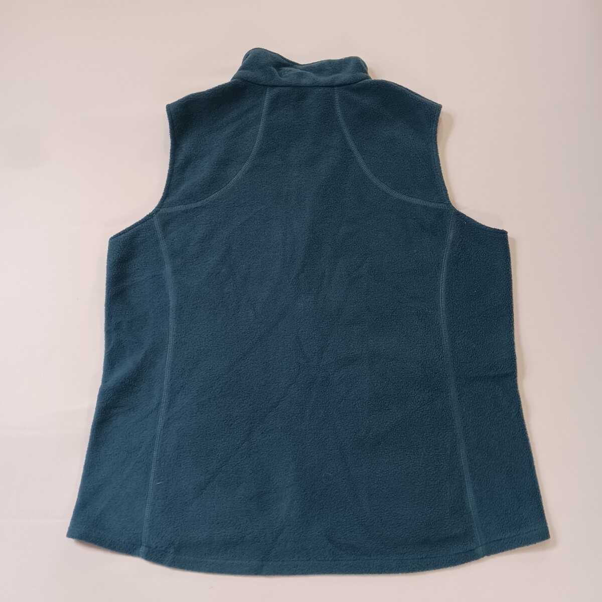 The Woolrich Women's Green Full Zip Sleeveless Fleece Vest in size Large is a versatile and stylish outerwear piece perfect for casual occasions. Made from polyester fleece, this vest offers warmth and comfort while remaining breathable. The mid-length design and full zip closure make it easy to layer over different outfits. The solid green color and logo accents add a touch of outdoor-inspired flair to the basic jacket style. Machine washable and suitable for all seasons, this Woolrich vest is a practical and fashionable choice for women looking to stay cozy and stylish.