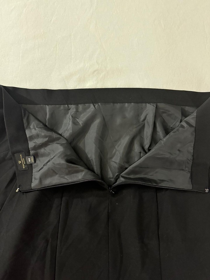 This Worthington pencil skirt is designed for plus-size women in a classic black color. The skirt features a modern bandage style with a rear slit and zipper closure, making it easy to pull on. It is made from a knit fabric and has an elastic waist for comfortable wear. Suitable for various occasions like workwear, parties, or formal events, this machine-washable skirt is a versatile piece for the summer, fall, and spring seasons. Ideal for travel or everyday wear, this stylish skirt offers a flattering silhouette for the modern woman.